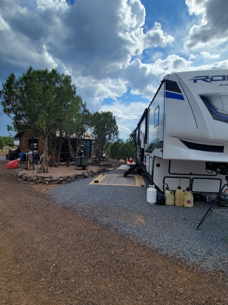 Site 4 full hook up water, septic, electric 20 amp 50 amp Guests must be able to back into the RV site upon arrival. Host can help back into rv site easy pull to spot and departure