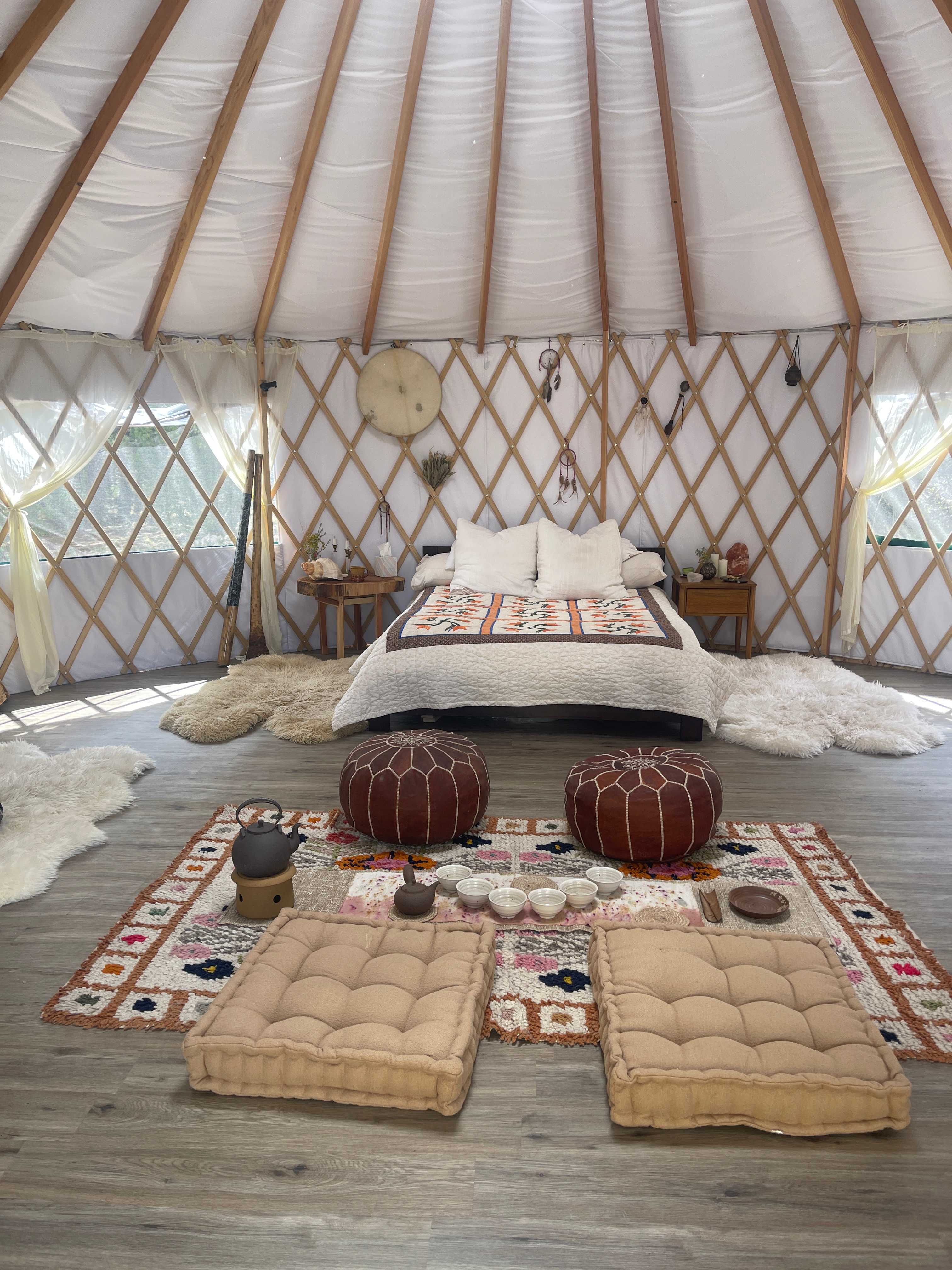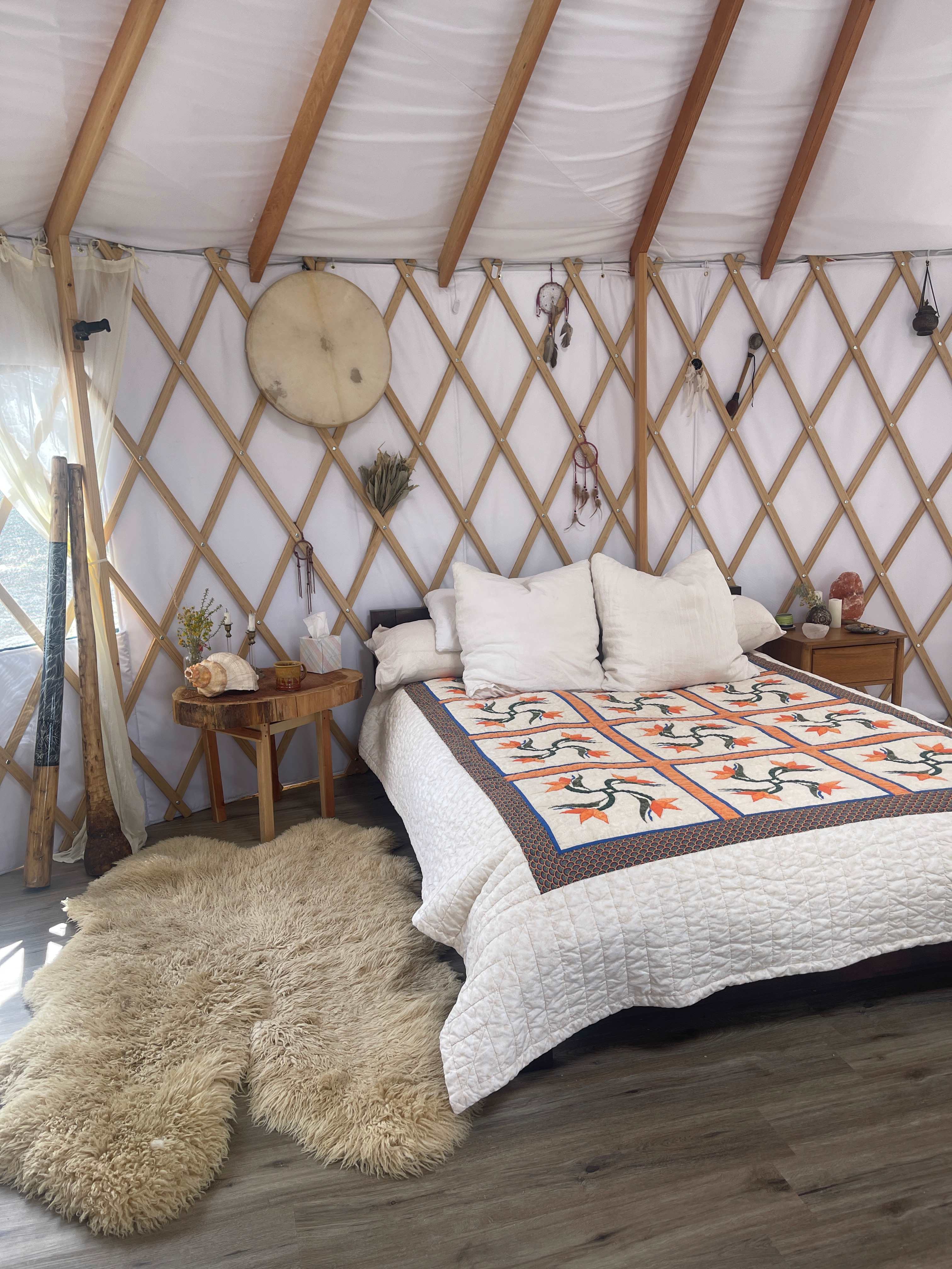 Welcome to our enchanting off-grid yurt nestled in the mystical forests of Heber, AZ. Experience a transformative stay in this eco-friendly sanctuary designed for relaxation and connection. Discover hidden trails, immerse yourself in nature's symphony, and find serenity in this top-rated retreat. With comfortable off-grid amenities and a soul-stirring ambiance, our yurt offers a unique escape. Book now to enjoy a magical getaway surrounded by nature's embrace. Find us on IG @starryhollow Tucked between two hillsides, our space feels like you're in the middle of the forest, even though we're only 5 minutes from the heart of Heber! The serene interior of our yurt offers an open floor plan, inviting a seamless flow of energy, providing a spacious and calming ambiance. Natural light pours through the skylight, illuminating the thoughtful touches and decor gathered from all corners of the globe to create a harmonious atmosphere. Inside, you'll find a comfortable sleeping area with a cozy queen bed adorned with soft organic linens, ensuring a restful night's sleep. The living space is designed for connection, where you can gather with loved ones or fellow adventurers to share meals and create lasting memories. Relax in the seating area, curled up with a good book or musical instrument or engaging in heartfelt conversations by the gentle glow of candlelight. While the yurt's interior offers a sanctuary of comfort, it's important to note that the composting toilet and shower are located outside. These facilities are designed with eco-consciousness in mind and use limited water resources. Embrace the opportunity to connect with nature even more deeply as you venture outdoors to utilize these facilities. The limited water encourages mindfulness and conservation, reminding us of the importance of sustainability and our connection to the Earth. The yurt is completely off-grid and draws power directly from the sun. Lights are battery and solar powered, there are no outlets available, however, solar USB ports are available for phone charging. Verizon and T-Mobile have a few bars, and we intentionally do not have WiFi available at the yurt. Our hosts, just down the hill from the yurt, can offer healthy, customized meal options, yoga, breathwork, reiki, and sound healings for an additional cost.