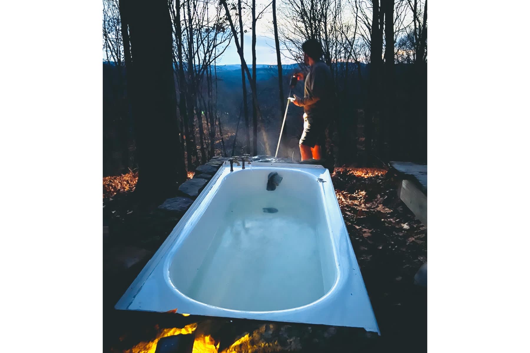 Private glamping experience. Beautiful, one-of-a-kind handbuilt mountaintop cabin with great views, spectacular sunsets, and that perfect unplugged feeling. A place surrounded by woods to enjoy a campfire, morning coffee, outdoor bath, time and mental space to finally read that book, and get inspired for life again. Each season offers its own kind of experience and beauty AWD highly recommended!! Cabin is up a 1-mile dirt road, part is smooth, part is a bit rough. Steep, unpaved hills. Off-grid. No electricity. A few battery lanterns provided Solar A/C will be available sometime in April/May 2026 (in process of installing). Hot water outdoor shower and bathtub. Running water inside cabin at kitchen sink, cold water only. Outhouse behind cabin The cabin is on untreated well water. 2 gal's of potable drinking water provided. Wood-burning stove for heat. Please use with CAUTION! Free wood for stove and campfire provided! STRICT burn ban policy. Bedding/towels provided Stocked kitchen, 2-burner gas cooktop The cabin is private, surrounded by woods. There are neighbors in the distance. You may occasionally hear faint sounds of them working in their yard. A neighbor 1/4-mile away occasionally does target practice, so gun shots may be heard in the distance, but it is rare and brief. Same for hunting season We live 10 minutes away Family lives on lower part of the property We sometimes might be present on the lower part of the property, but will respect your privacy. Grumpy neighbor lives at the bottom driveway. If you encounter him, just tell him Curtis and Morgan invited you. Please just don't pull/back onto his driveway! Please call us if he gives any trouble My husband and I built this tiny cabin with our bare hands. No equipment, no other help. We wanted something to share with family, friends and anyone else looking to get away from this overly modern and exhausting world. It seems places like this available to people are disappearing. We wanted to bring it back. Hopefully you'll love it and respect it! Fayetteville (main city hub): 35-40 minute drive Dollar General/gas station: 15 min Closest grocery: 20 min Devil's Den (hiking/mountain biking/mountain scenery): 30 min White Rock (mountain scenery/hiking/off-roading/National Forest): 1 hour