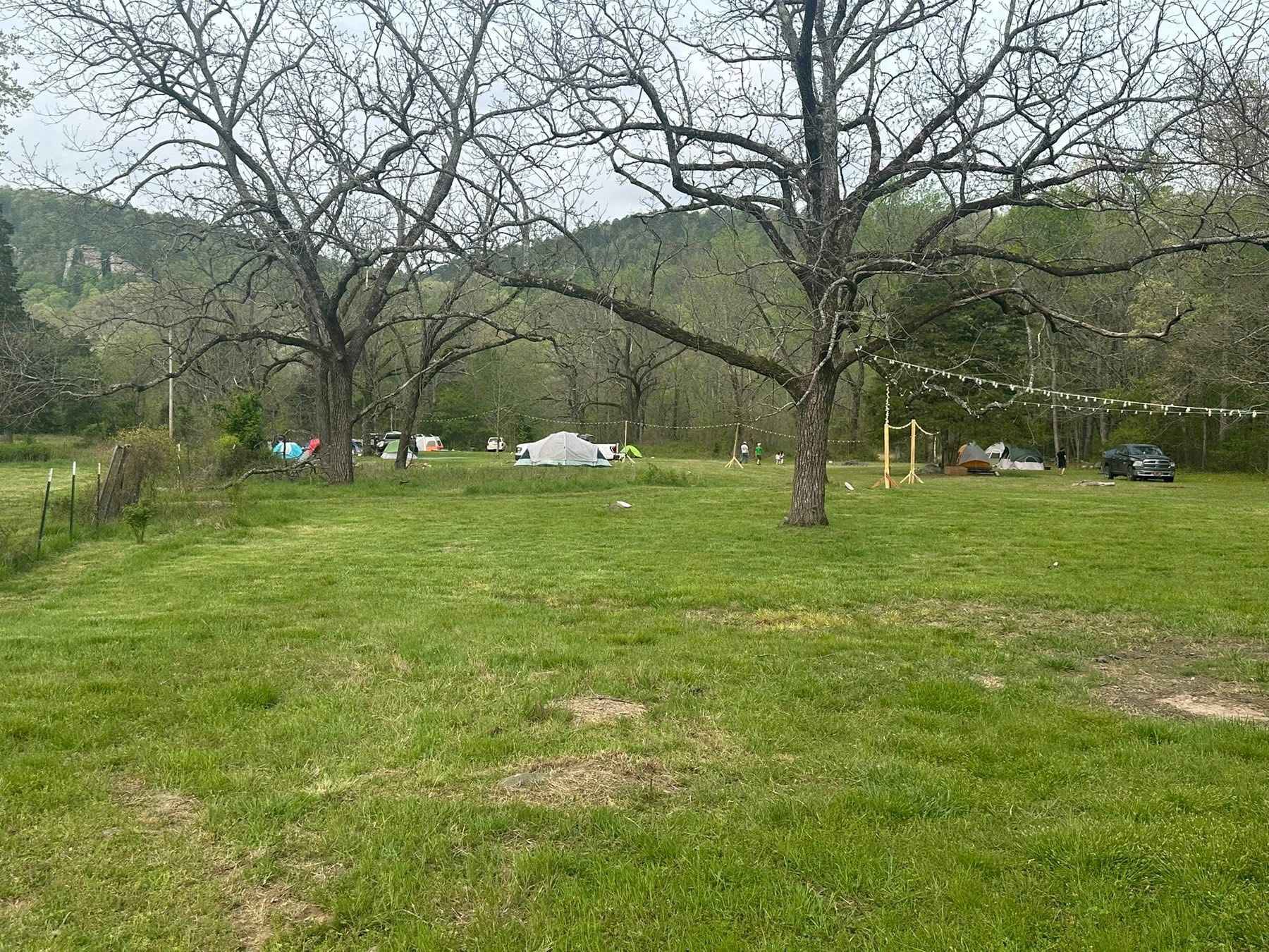 Creekside 40' X 40' Campsite is a flat grassy space on the semi-edges of where Bear Pen & Meadow Creek flows. This makes it perfect for swimming and fishing. Guests will enjoy 1600 acre to explore, but please note there may be another groups in the campground. Guests will have access to communal protopodites and cold water for washing onsite. There are no hookups at this site, but water is available at the mutual area. There are 5 firepits for first come service, & 2 large common firepits. In the Common Antique barn there is power & Wi-Fi, but is a cooperative property to share with your community camping site. There is more primitive camping available with more privacy, but power is limited to short distance into the campground.
