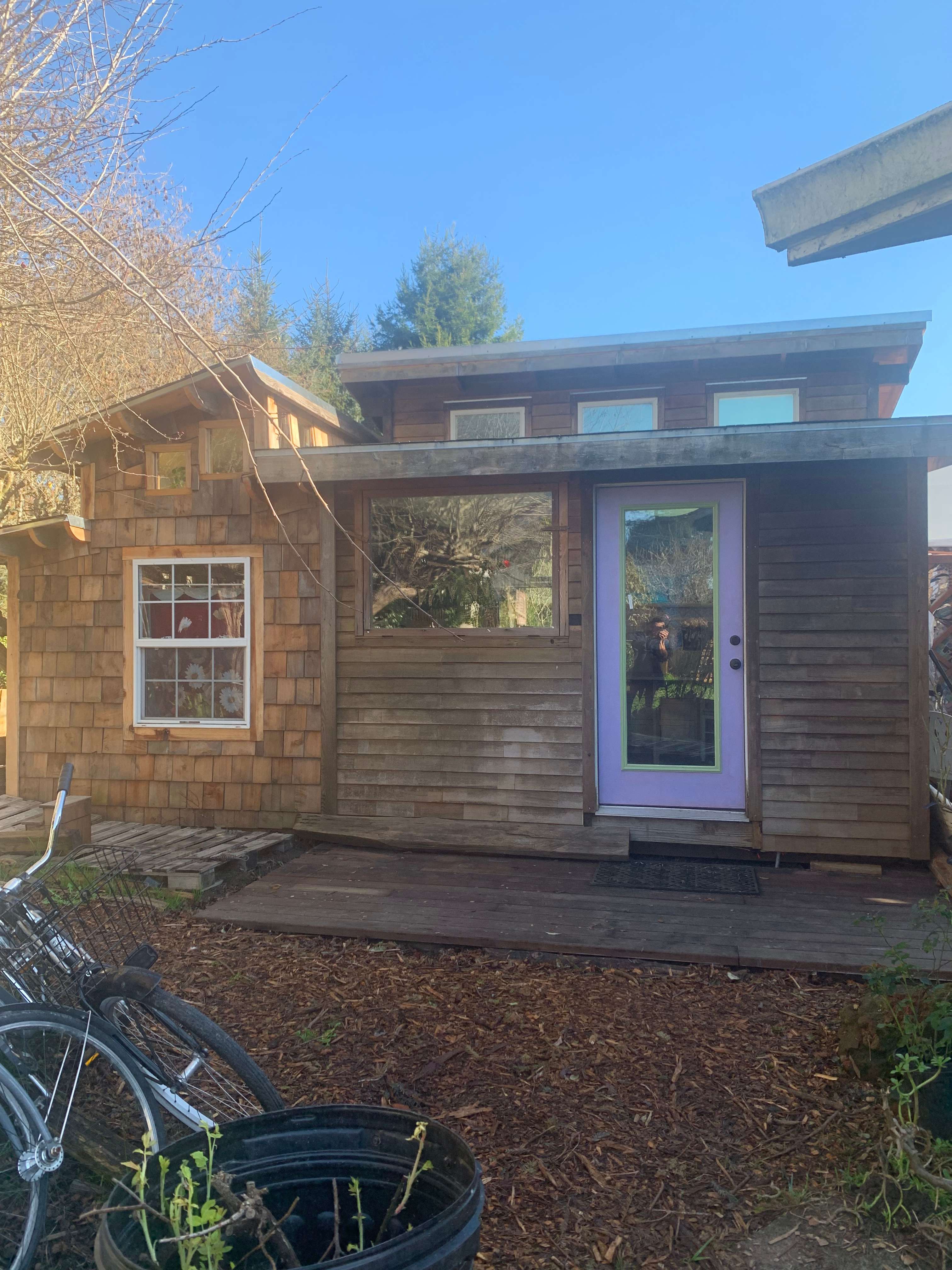 Cozy Tiny Cabin in Arcata, CA Perfectly situated at the end of a calm street. Just steps away, you’ll find a lovely walking path that invites you to explore the beauty of Janes Creek and the surrounding Alder trees. Just a walk away or a bike away from downtown, making it easy to enjoy local shops, restaurants, and Arcata’s unique charm. Perfect for one or two guests, the space features a small kitchen and an outdoor shower, providing a delightful balance of rustic simplicity and comfort. Whether you’re here to relax, explore, or enjoy Arcata’s vibrant community, this tiny cabin is the ideal home base. Book your stay and experience the magic of this special spot!