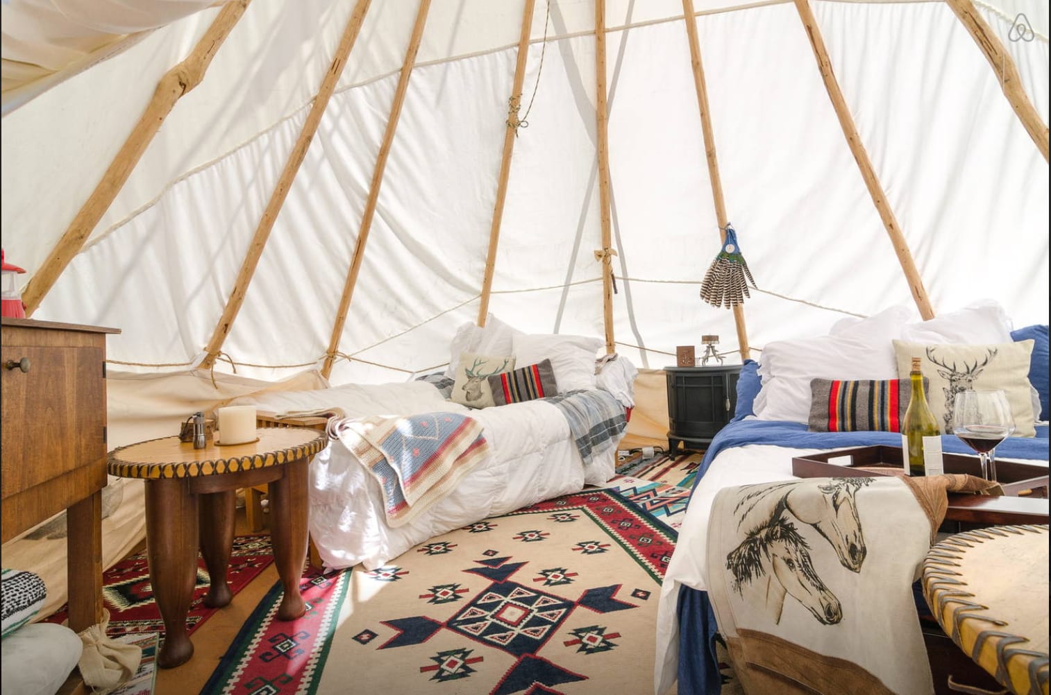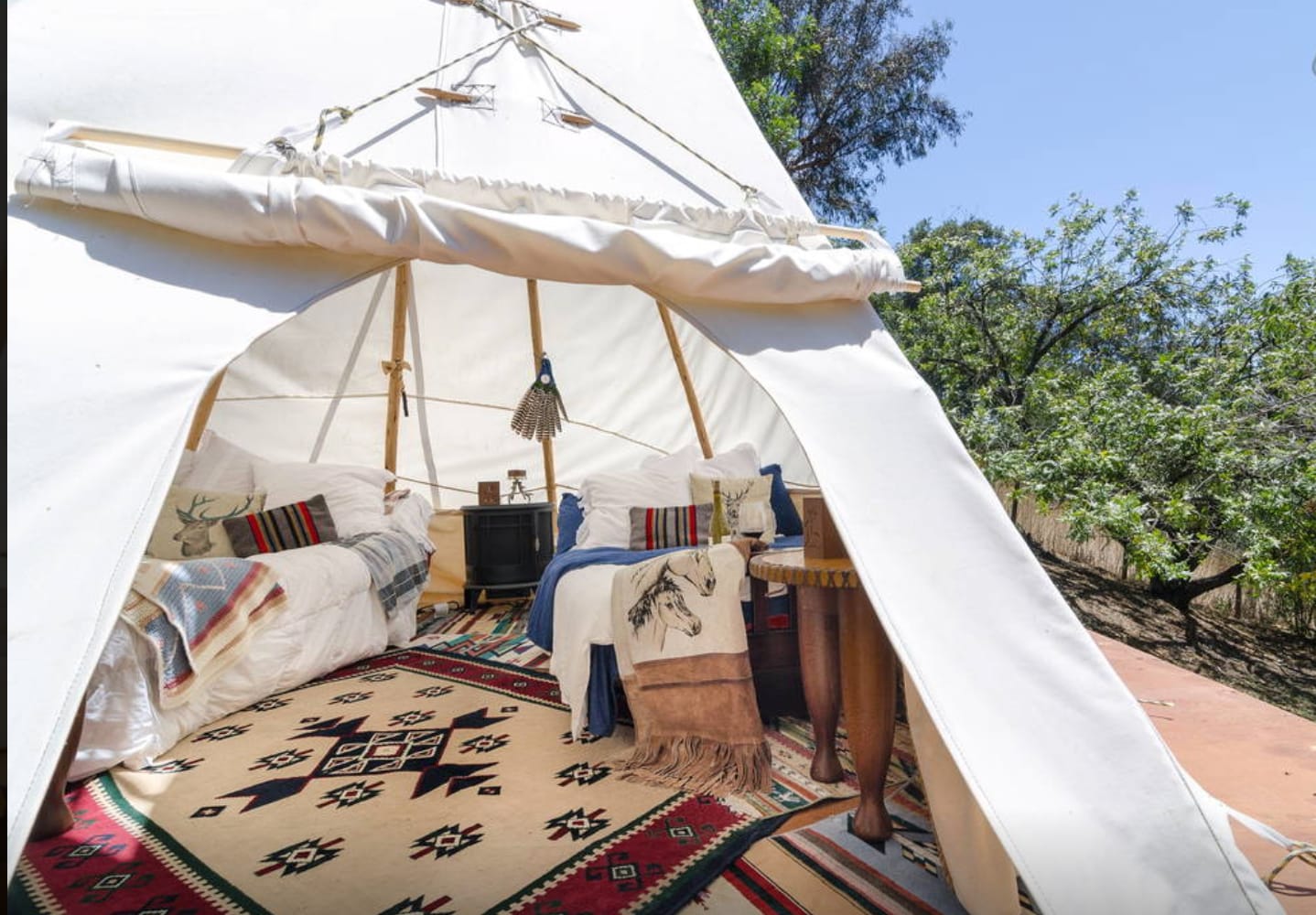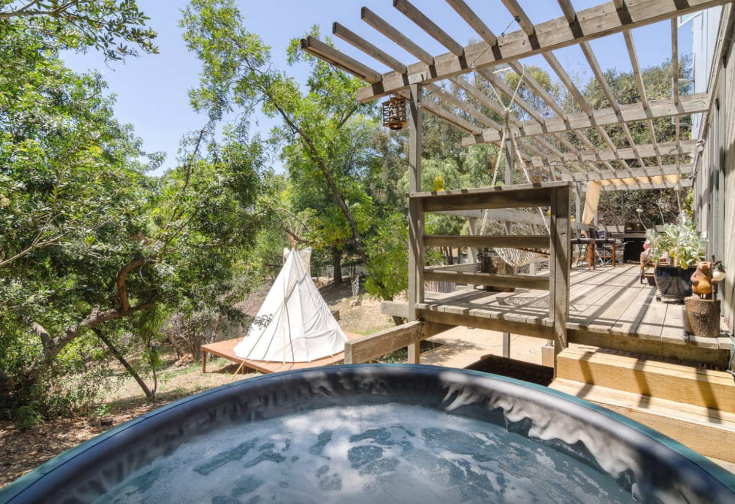 We are located in the state park of Topanga Canyon. We have varying climates, animals and terrain to enjoy! We are approx 5 miles from the beach and have amazing trails right behind the house that go on for miles and miles. Our tipi was erected by a native american from Northern California, he is a 3rd generation tipi maker. The interior of our tipi contains authentic native american items and we take pride in it's authenticity. We also collect native american artifacts such at headdresses, totem poles, moccasins, drums and art...we're happy to show it to guests with a bottle of wine which is by no mean native or authentic, but pretty delicious regardless....