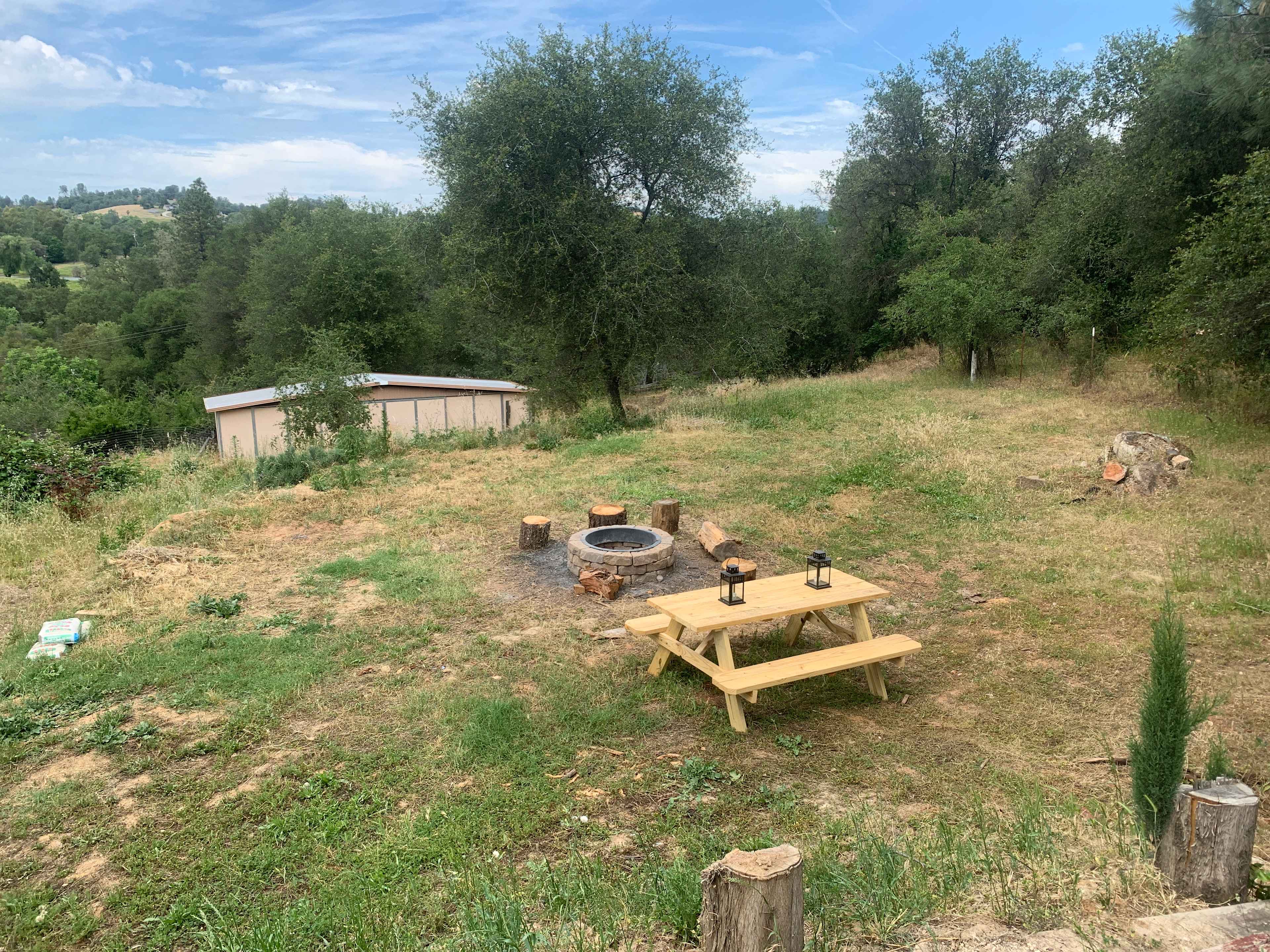We stayed at campsite 3, which is at the front of the property and away from the house. There is a outcropping of rocks blocking the view of the house and trees all around giving a great amount of privacy. Just on the other side of a fence are some very friendly goats that would love for some head pats.