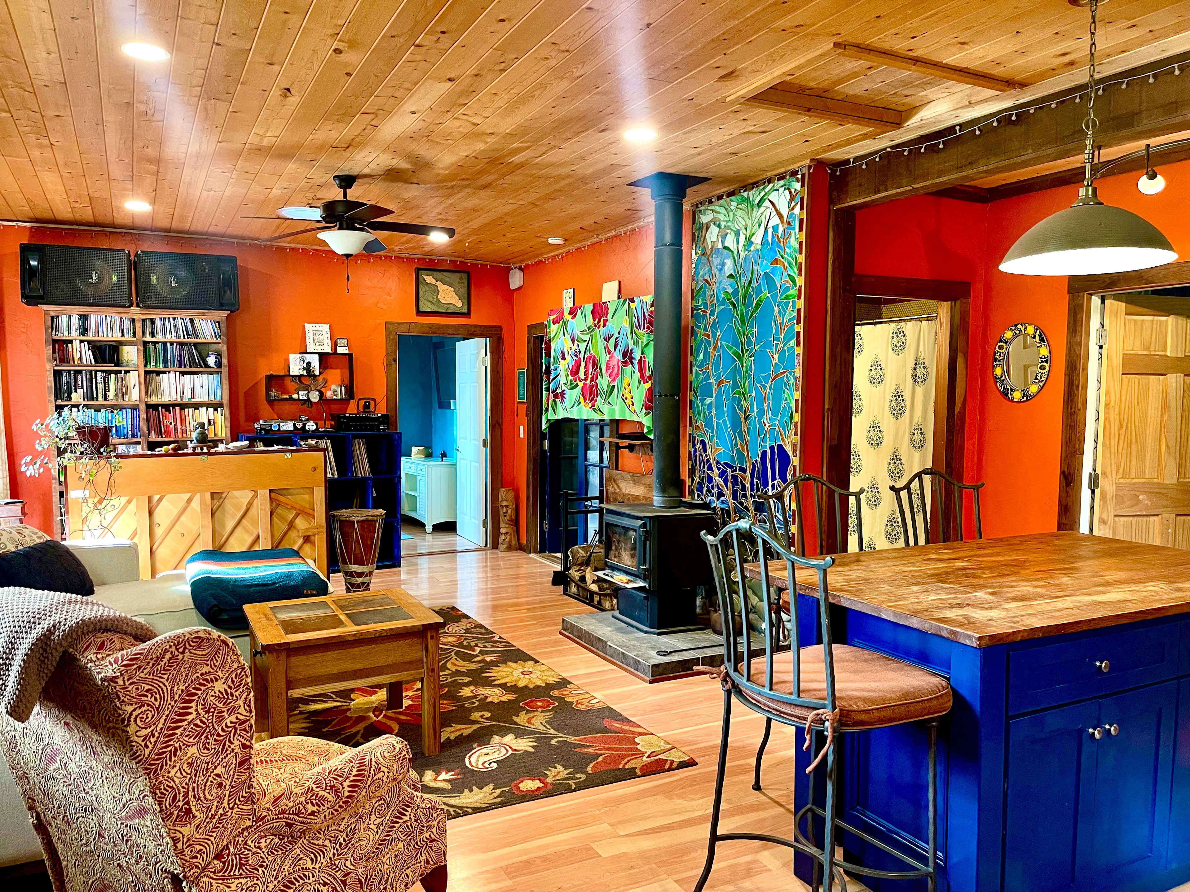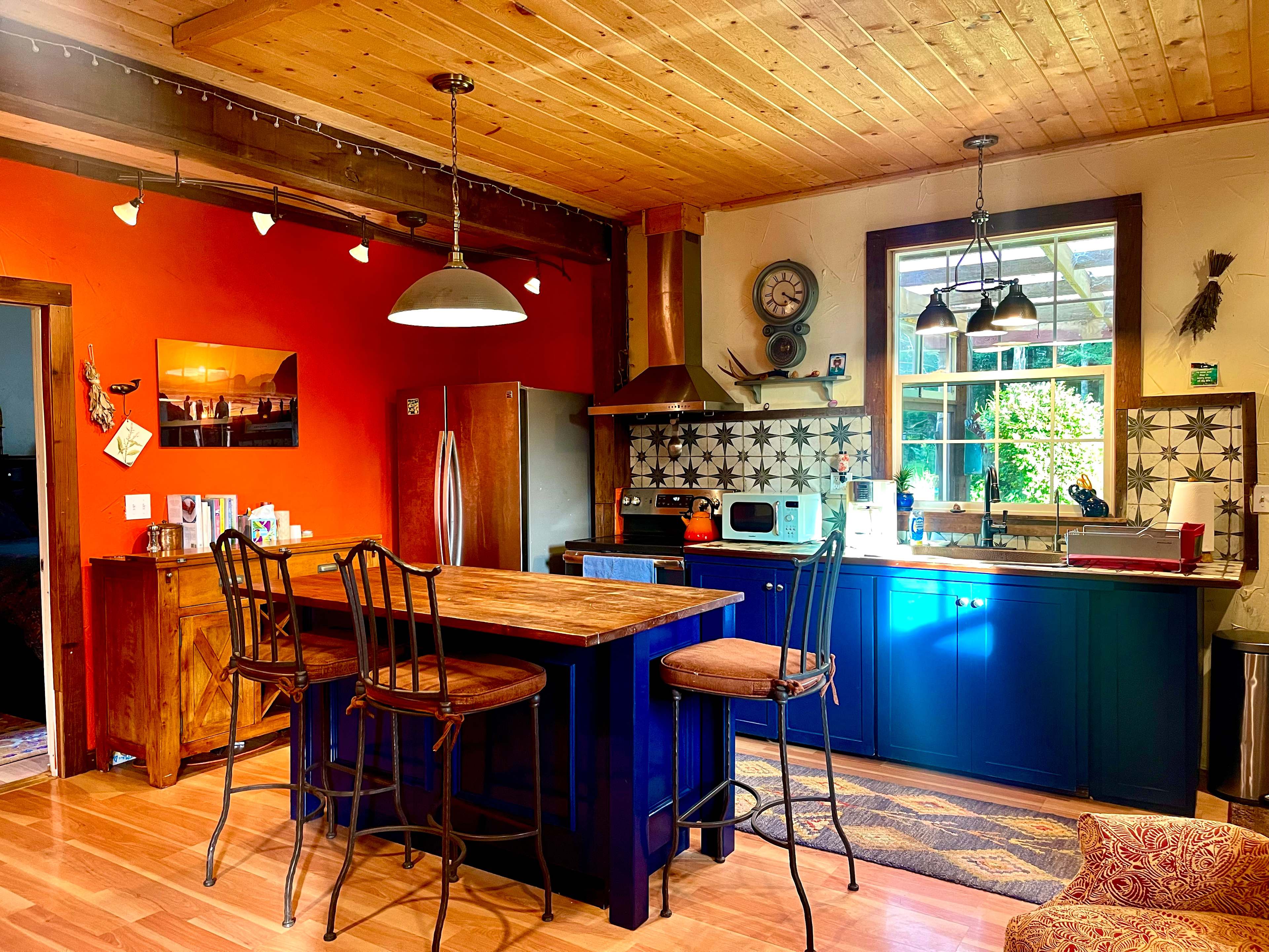Fully renovated and cozy barn, original to the property from 1949. Two separate bedrooms outfitted with queen beds and ample storage space. Open living room and kitchen/meal space with a full kitchen - large fridge, electric range, coffee maker, and microwave. Full bathroom with tub and shower. TV and wi-fi available if you need a little touchstone to the outside world. Large selection of records and books to peruse at your leisure (complete with turntable and state-of-the-art speakers), and an upright piano to enjoy a little creative play time. Enjoy your evening beverage or morning coffee on the cozy, outdoor sunroom, or pad on over to the shared hot tub to soak after a long day hiking in the redwoods. Grab a disc and enjoy the onsite 18-hole frisbee golf course, or take a leisurely stroll through the miles of trails on and around the property.