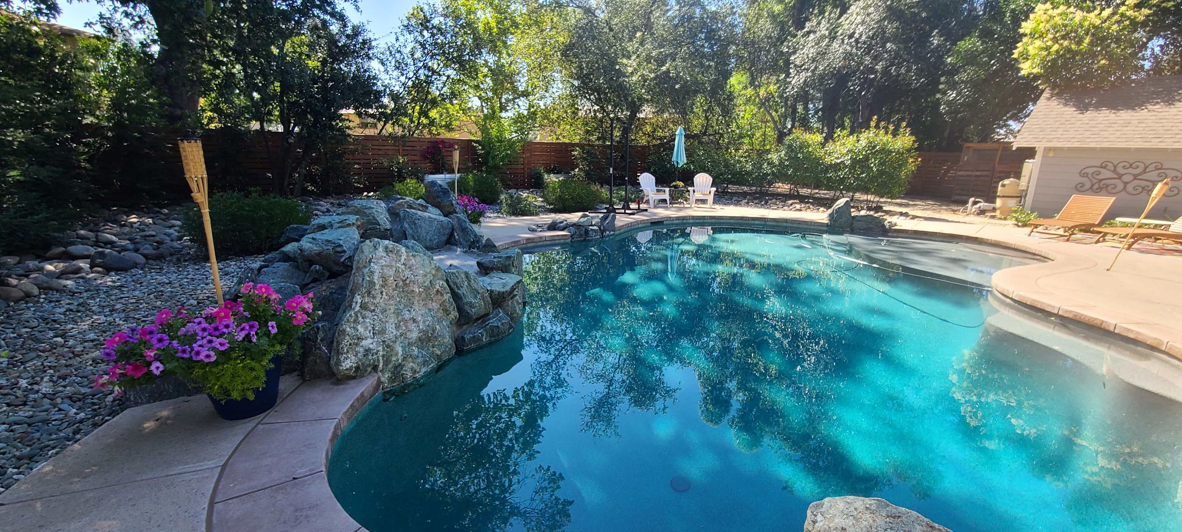 We live on .5 acres that is fenced in for a retreat feel. Waterfall pool open all year round. Cool off in summer and brave the temp in the winter. Gas fireplace along with gas grill to use. The Sac River is just over a mile from property. Lakes and trails are 15 to hour away. Peaceful and quiet.