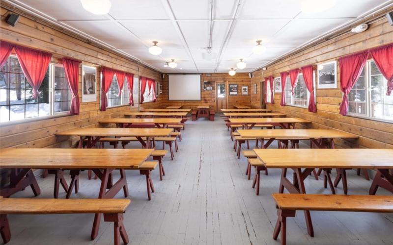 12 twin beds, bunk bed style. This room is booked by the bed and is shared space with balcony access. Communal bathroom down the hall from bedroom. Breakfast, lunch and dinner not included in rate, but can be added based on the number of people in your reservation on the booking page. Guests also have access to the Lewis Clark room, library, game room, lounge and dining hall. Complimentary laundry facilities on-site with detergent available for purchase. Snow/Ski equipment available in the rental shop.