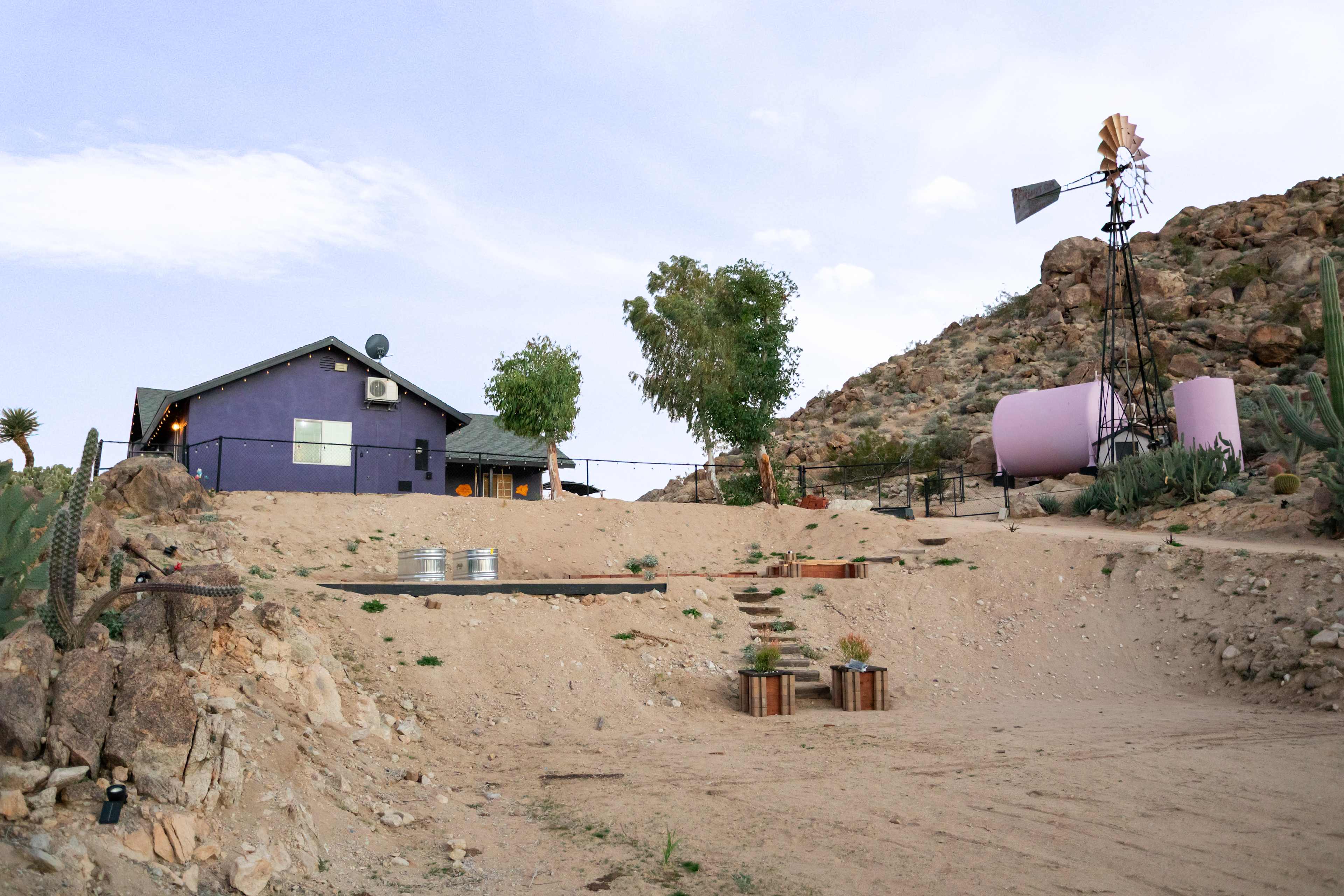 Desert Rose Ranch Hipcamp: A Rugged Yet Refined High-Desert Experience Nestled on twenty acres of untamed high-desert terrain at the edge of Joshua Tree National Park, Desert Rose Ranch invites campers, RV adventurers, van lifers, and tent dwellers to experience the wild without sacrificing comfort. This secluded sanctuary sits behind a secure gate, surrounded by native yucca, boulders, and big skies, yet it is mere minutes from the grocery store, restaurants, and other conveniences of Twentynine Palms. From here, you can walk directly into the national park via a private trail that links to the 49 Palms Oasis trailhead. You can also access off-road trails, hook up your RV, rent a quad, or simply relax under a canopy of stars.Secured RV parking with water and electrical hook ups.