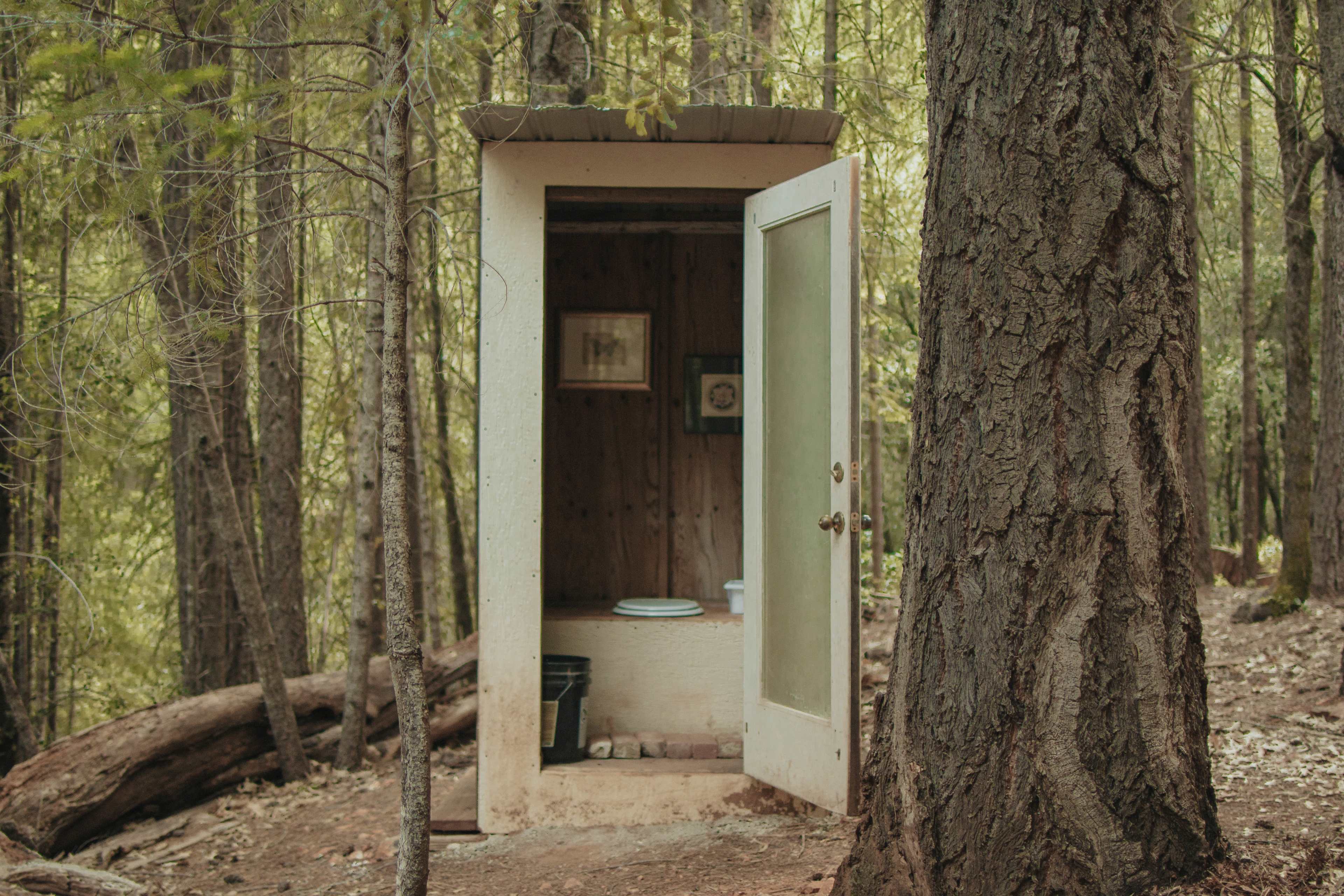 The cabin sits among giant redwood trees, and you can hear the rush of a creek just a few feet down. The space is simple and small, but clean and cute on the inside, which is exactly what we were looking for: still feels like camping, but with a little extra comfort. However, the cabin is entirely off-grid (no electricity) but they’ve wired some battery powered lights so you will at least have light and running water. Speaking of water, there is an awesome shower house a two minute walk from the cabin, and there is also an outdoor kitchen space with a sink (overlooking the most beautiful view!!). In addition, the kitchen offers a propane grill and burner along with a few spices, pots and pans, and dish ware. There’s also a charcoal grill available, which we used to grill several of our veggies down by the campfire. While we were there it was ok to have a small fire, but it depends on weather/season I believe. When fires are allowed, they’ve provided some stumps to sit on and a pretty sizable fire pit. The toilet situation is the best I can imagine for an outdoor toilet. It’s clean, not confusing, doesn’t smell weird, and even has some decor, which somehow helped trick me into not thinking about the fact that I was using an outhouse.