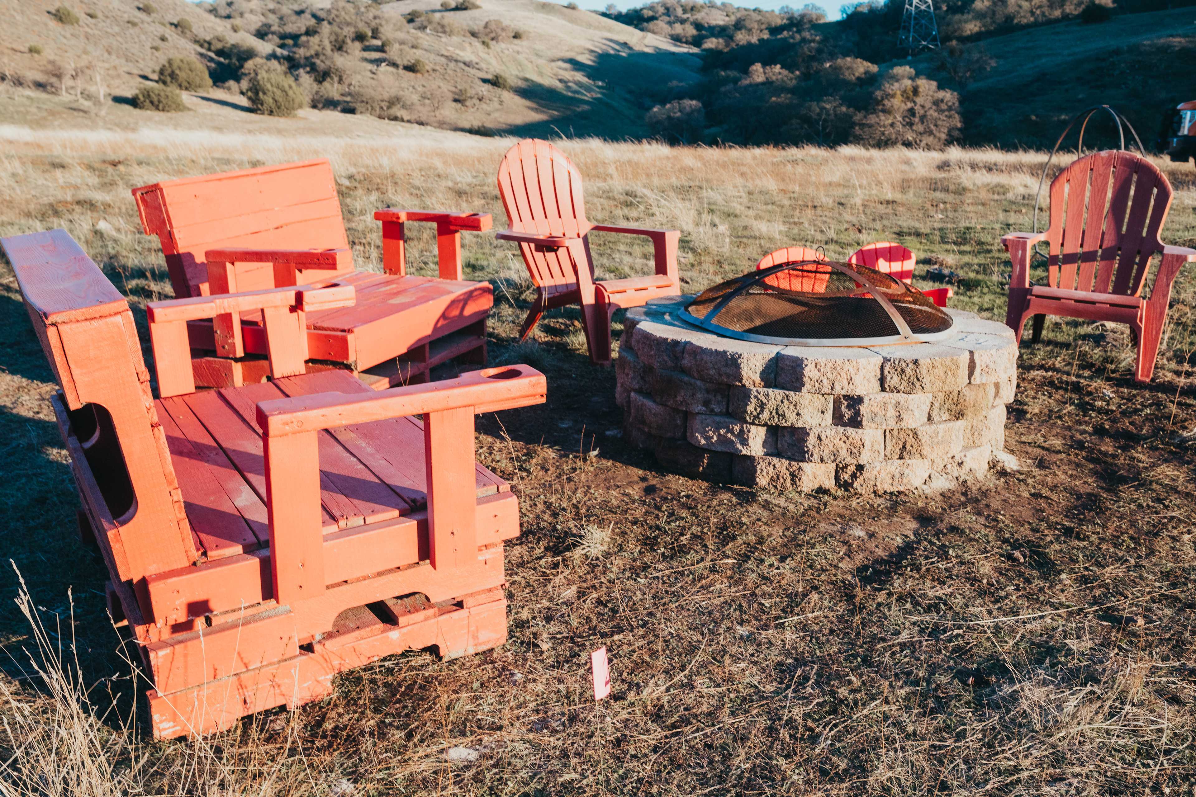 This private hilltop campsite is designed for guests who value peace, nature, and beautiful views. Vista Hilltop Campsite sits above the valley on open land with rolling golden hills, soft breezes, and some of the clearest night skies in the region. It’s perfect for quiet campers, couples, solo travelers, and anyone looking to reset in a calm, natural setting. The terrain offers wide views in every direction, with plenty of space to explore, relax, photograph, or simply enjoy the stillness. Sunsets here are incredible, and the star-filled sky at night makes this a favorite for stargazers and photographers. Guests looking to explore Pinnacles National Park will find this a peaceful home base. From the property gate, it takes about 25 minutes to reach Highway 25, and from there the drive to the park’s east entrance is straightforward and scenic. This campsite is ideal for those who enjoy: • Quiet, private camping • Stargazing with zero light pollution • Sunrise viewpoints • Nature walks and light exploring • Photography • Romantic getaways • Peace and solitude If you’re seeking a respectful, quiet outdoor experience with big views and open skies, Vista Hilltop Campsite at Golden Sky Retreat is the perfect fit. Shared Community Space: Guests staying at this site are welcome to enjoy a shared community hangout area beneath mature oak trees. This is a common space for relaxing, connecting, and enjoying the natural surroundings. Please be respectful of other campers when using this area.