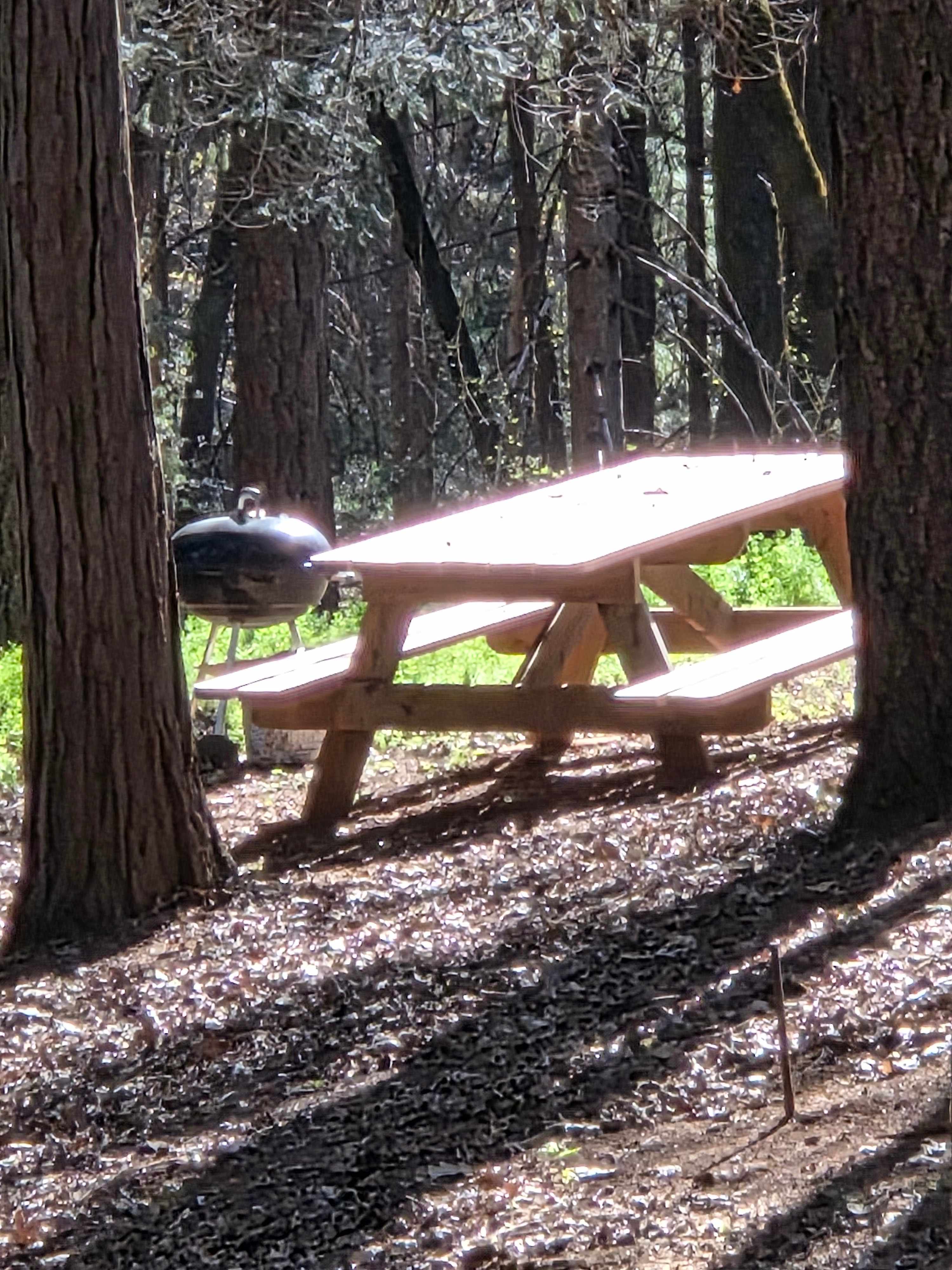 SITE A is totally PRIVATE...1/2 acre for you to pull your fully self contained RV or Travel Trailer onto a street level pad. The rest is beautiful gorgeous trees and nature. A seasonal creek runs thru...trails to explore. Picnic table BBQ with charcoal supplied along with horseshoes for some old fashioned fun. 5 minute walk to Sacramento river where the fish are plenty! Delicious restaurants to dine and yummy bakery down the street!!