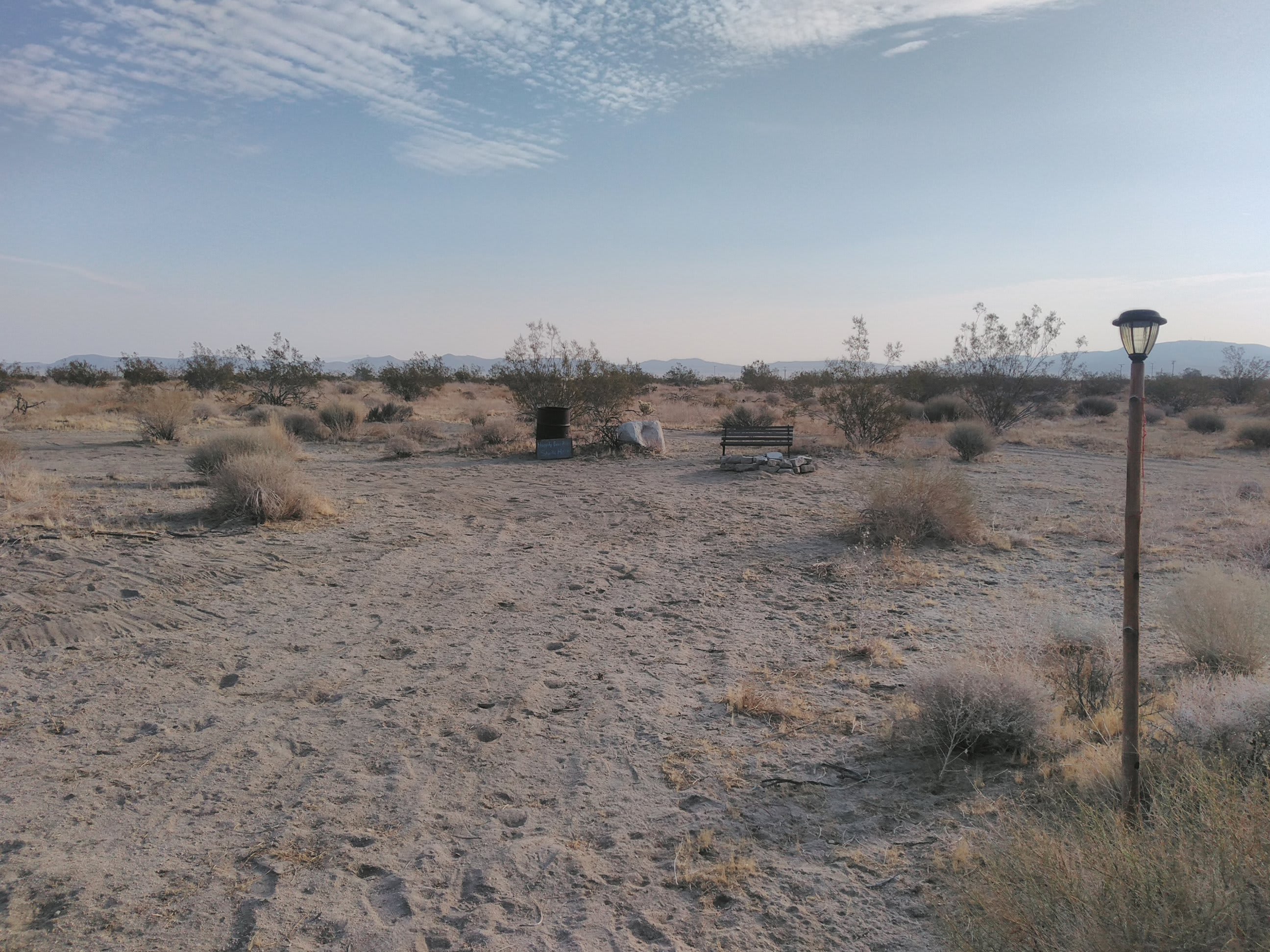 The camp site is far enough from the main road to feel like open desert camping - we could hear the coyotes at night and even saw a few, beautiful sun rise/set, stars, and moon. The entrance to Joshua Tree National Park was a quick 10 minute drive and very close to town for firewood, food, water, gas, etc.