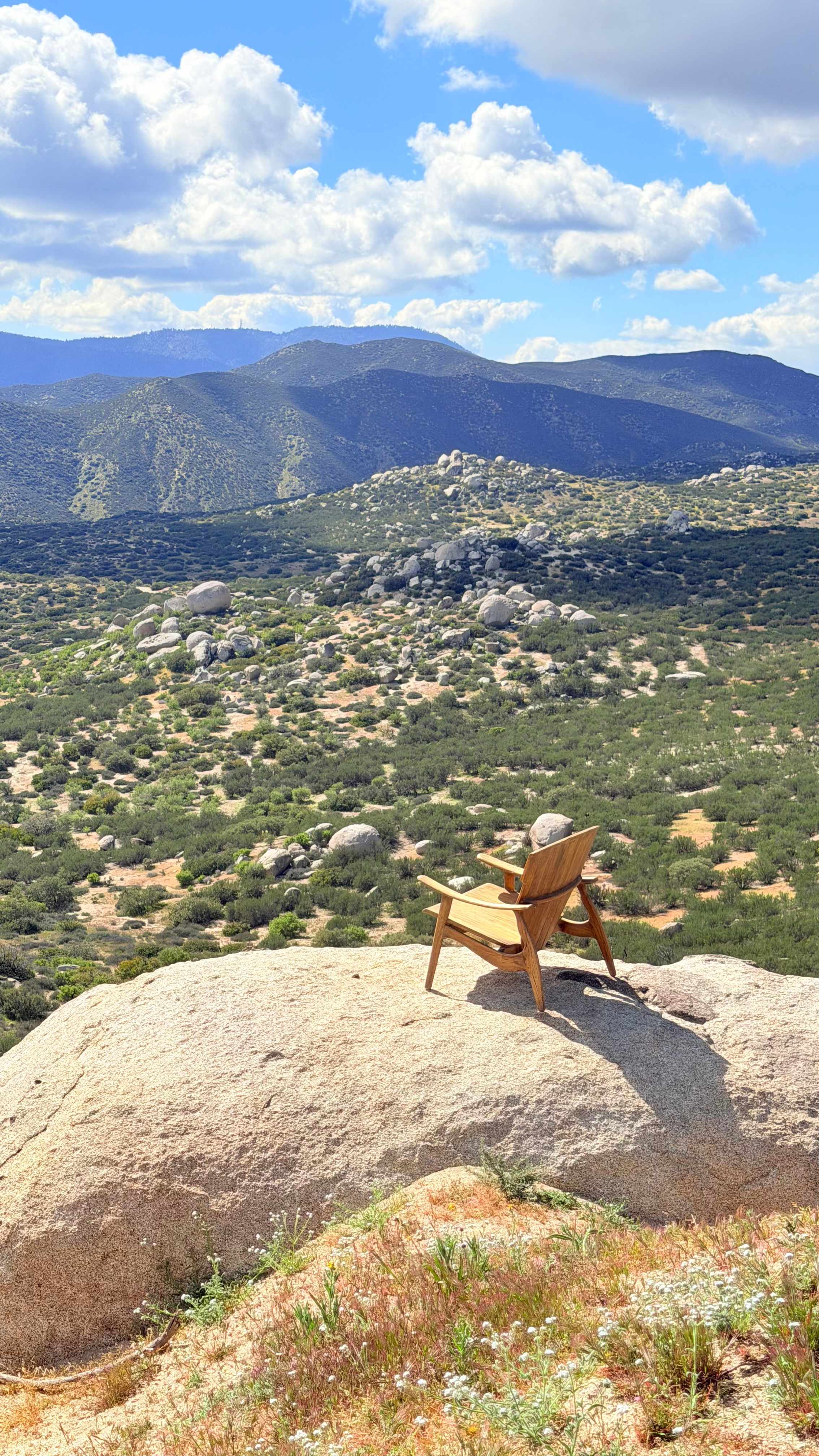 Set on 30 private acres in the high desert of Ranchita, this off-grid campsite overlooks the vast expanse of Anza-Borrego Desert State Park, with sweeping views stretching all the way to the mountains along the Mexico border. The land is defined by rolling hills, massive granite boulders, and native desert vegetation—creating a landscape that feels both rugged and quietly expansive. With no nearby city lights, the property offers exceptional stargazing and a true sense of stillness. Guests can explore the terrain, relax in thoughtfully placed seating areas perched on boulders, or gather around the fire under string lights as the sun drops behind layered mountain ridgelines. A circular plunge pool provides a unique place to cool off while taking in panoramic desert views. This is a dry camping experience designed for those seeking solitude, open space, and a deeper connection to the desert—whether you’re here to reset, create, or simply take in the silence.