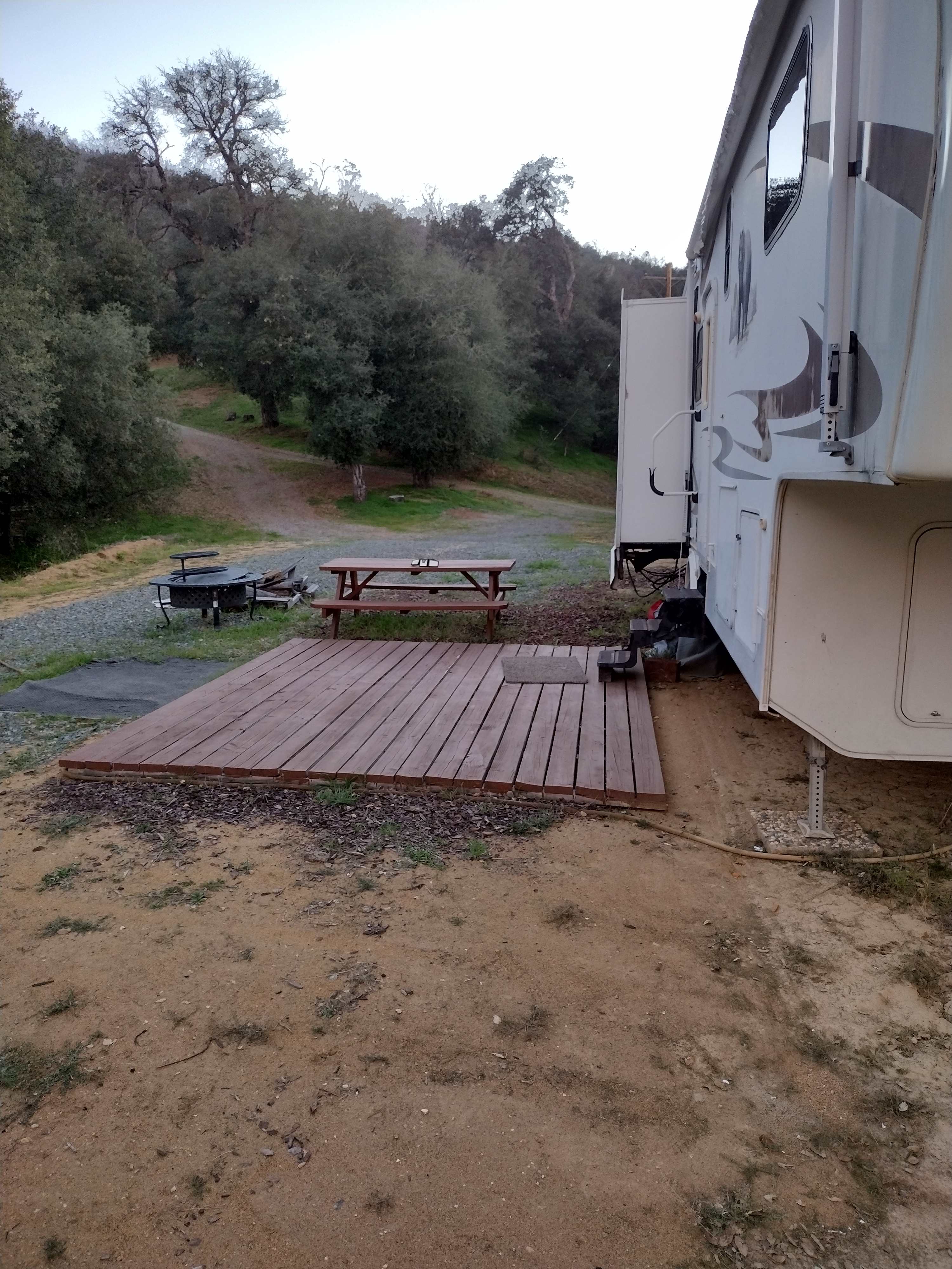 The site is part of the Mesa Grande / Palomar mountain range with a picnic table ,fire pit and chairs ,good Verizon phone signal but I recommend disconnecting and R&R at this get away. You can tent camp and or use the 5 th wheel trailer for amenities.