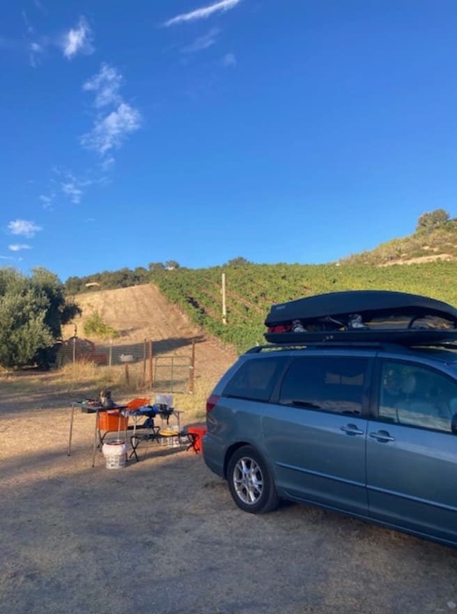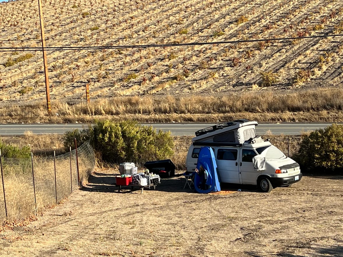 Come stay just outside the vineyard! Less than two miles from town, escape the hustle and bustle while staying close enough to all the action. Located just off the main road with front yard access, this is the perfect spot to unwind and stargaze at our private front yard site. There’s plenty of space for parking! Please note, there is no running water or hookups. Camper trailers and off-road vans are welcome. We currently don’t have any toilets, so self-contained units are ideal. If you are a light sleeper, please bring earplugs. The Space Located just off Lake Nacimiento Road, you will have access to a premier private front yard. There’s plenty of parking for your camper and vehicle. Guest Access This property has two campsite spots: one inside and one outside the fenced working vineyard. You’ll have access to the front yard picnic table. There are no toilets, hookups, or water at this camp spot, but a porta-john is available inside the vineyard. Other Things to Note We are conveniently located less than two miles from historic downtown Paso Robles. As this is a working vineyard, you may hear typical vineyard or farming noises. Additionally, because our location is just off the popular Lake Nacimiento Road, earplugs are recommended for light sleepers. Campfires and parties are strictly prohibited.