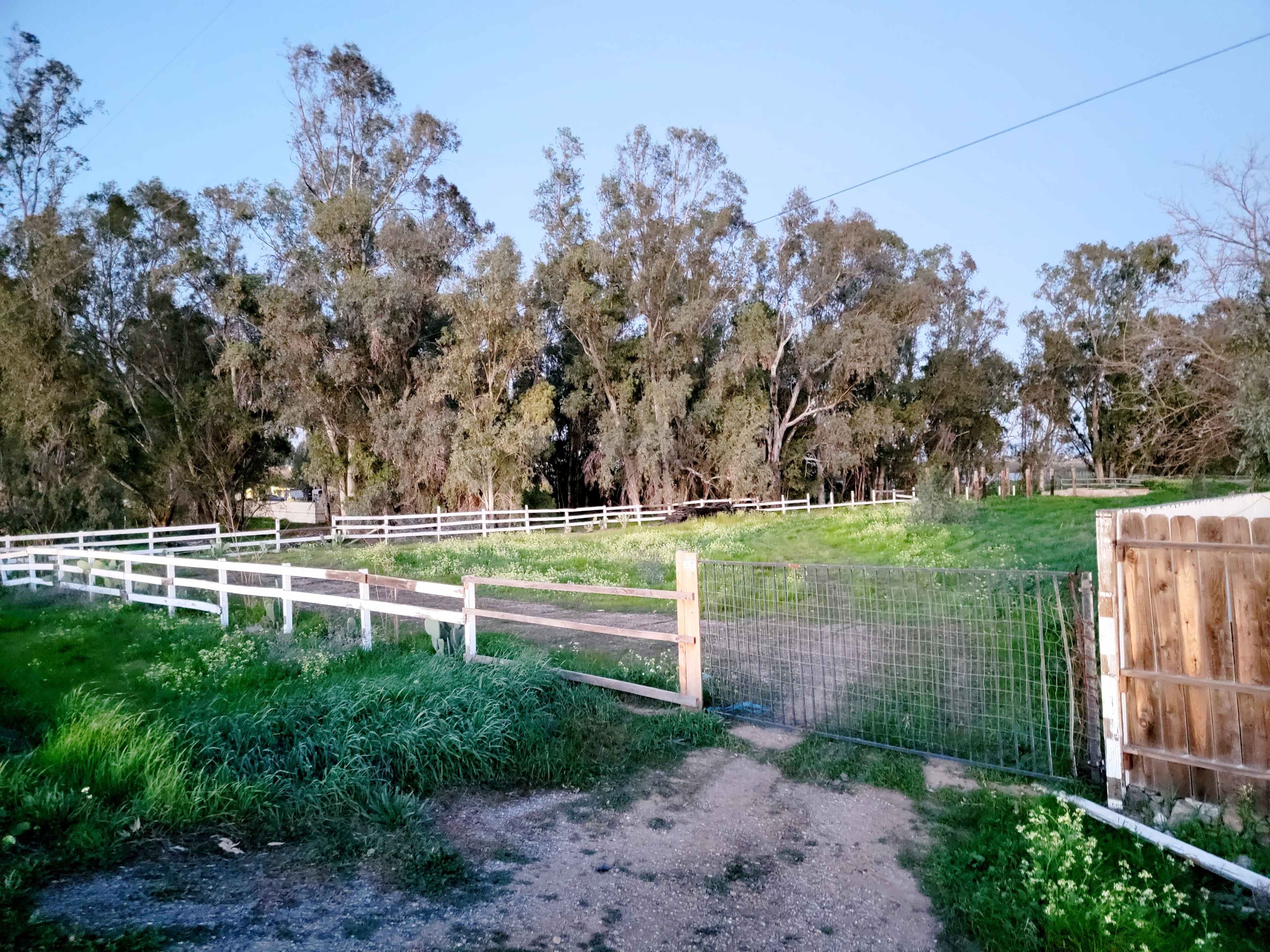 Site located close to main house divided by wooden fence. Has own private entrance. 10 acres mostly of open terrain to walk in the company of your partner or with your dog . Seasonal creek within feet of site. Many Eucaliptus trees with many bird sightings. quiet and relaxing. Can use ATV, or other quad vehicle to explore property.