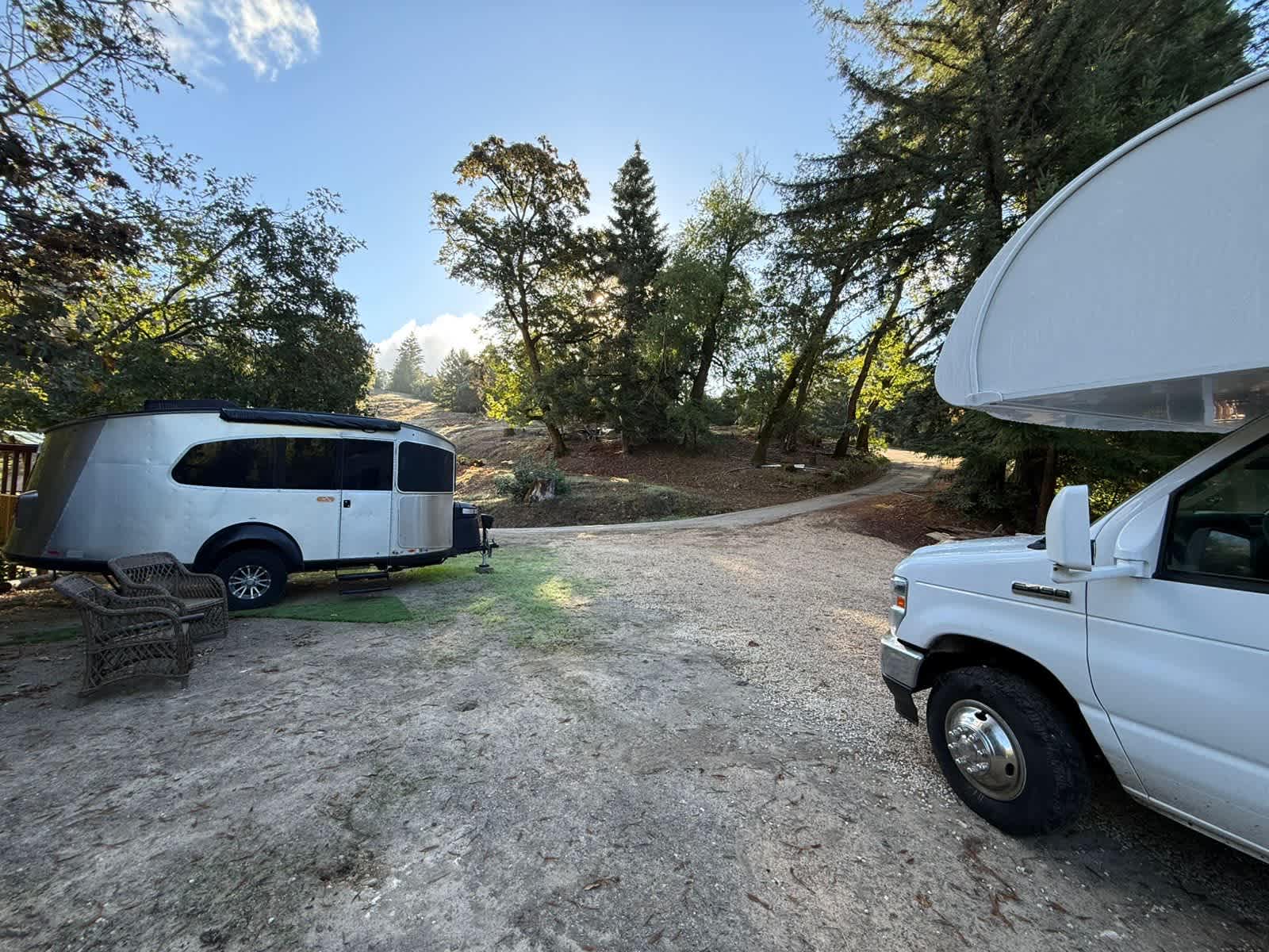 Camping & RV Parking on a Working Farm Near Santa Cruz Come camp on our peaceful working farm with easy access to incredible bike trails, beaches, and hikes in the Santa Cruz Mountains. We offer 3 spacious campsites where you can park your RV or camper van, or set up a tent. The sites are spread out with plenty of room for groups and families. For a more comfortable stay, you can also rent our solar-powered Airstream Base Camp. The property is a working farm with animals and a Christmas tree farm, and we’re currently planting olive trees and lavender fields. Guests are welcome to enjoy hikes directly on the property, including redwood forest trails and scenic views. Interested in hosting a gathering? Ask us about renting the entire property for private events like birthday parties or group lunches, with the option to camp overnight. Camp Details: 3 sites for RVs (various sizes) or tents No hookups Potable drinking water available for fill-ups No electricity at campsites Quiet, natural setting—perfect for unplugging A great spot for campers looking for nature, space, and a relaxed farm atmosphere close to Santa Cruz.