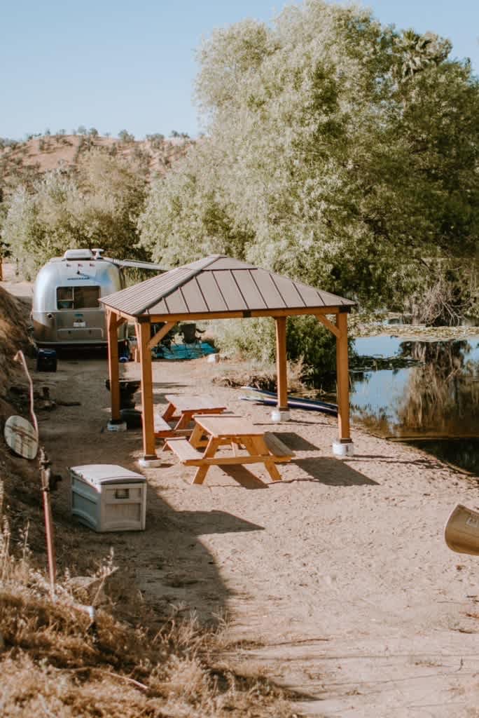 Please reading all before booking!! Park your camper by the pond with hookups for power and water. Bring utility extension cable because hookups are about 100 feet from the optimal site. You will see the beach nearby with picnic benches and a shade structure. Paddle boards are available to use. No lifeguard on duty, swim at your own risk. No black water disposal on site, self contained only. Hiking available on hillside on site, as well.