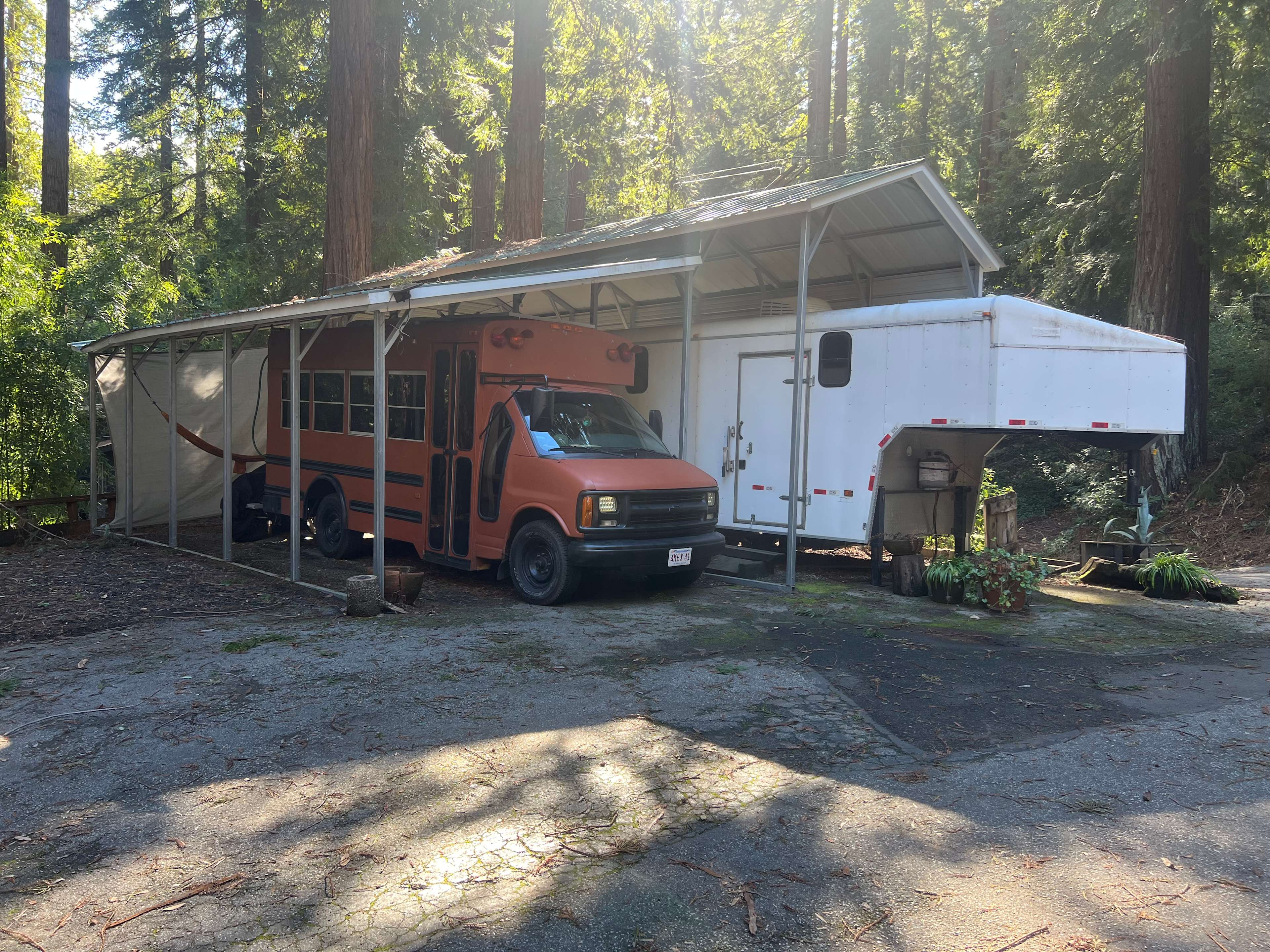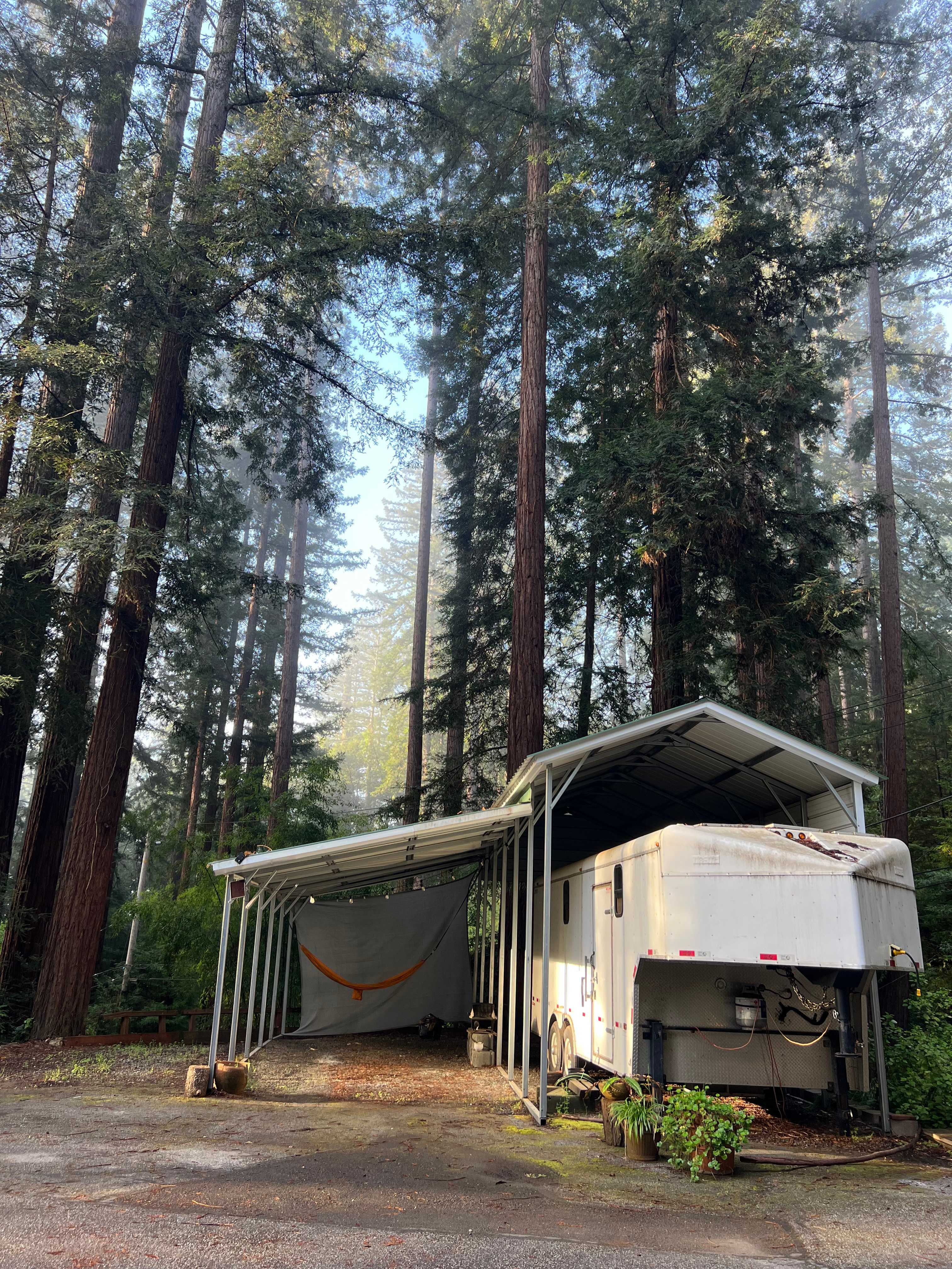 Tucked away in the Santa Cruz mountains you will find yourself among towering old redwood trees. There is a seasonal creek that runs down the property in the winter in which you can hear the tranquil sounds of water flowing as you sleep. Paved access to our property can accommodate up to 25 foot rv's and trailers. Wildlife such as turkey's, birds, deer, fox's, and bobcats can be seen on the property at times. Hiking trails are within hiking distance. Also the SLV river is a great spot to cool off in the Summer.Site 1 is a covered spot for your RV, trailer or van. Next to your RV there is an additional spot for car parking. There is an outdoor hammock and bbq for guests. Optional: Electrical hook up fee is $5.00 a day. Water connection is $8.00 day.