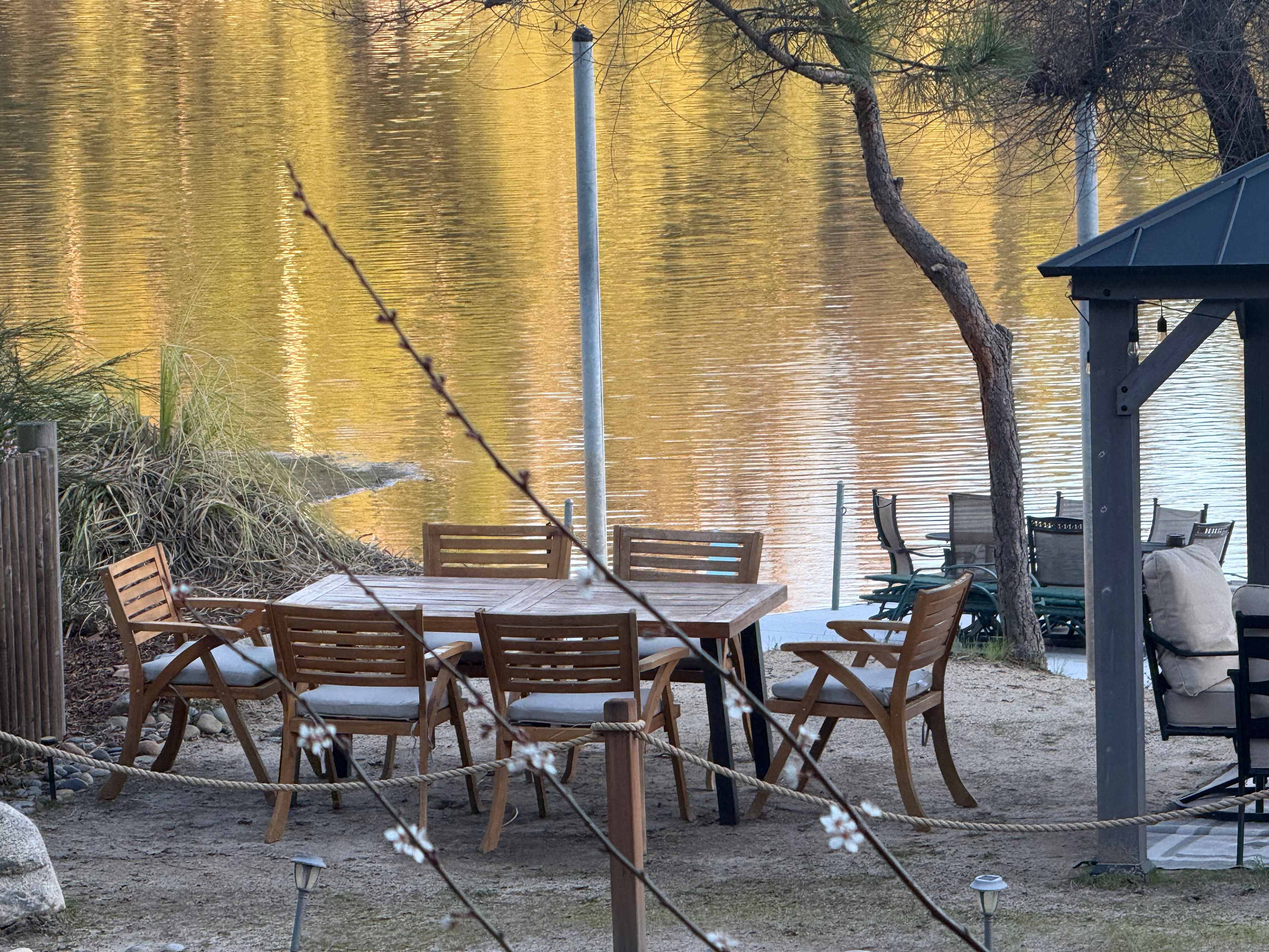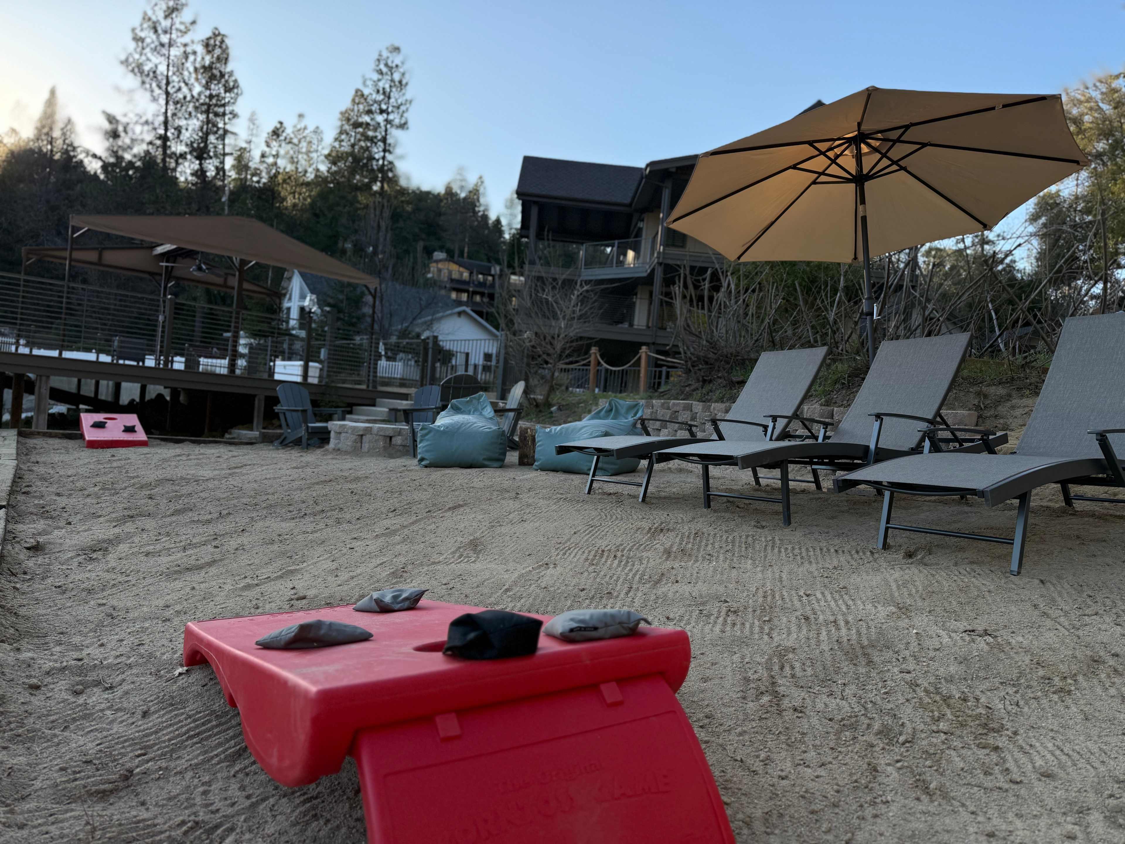 "The best spot on the lake" as regarded by many locals. A rare 2 acre Lakefront property with large Private Beach Area-in the heart of coveted Willow Cove. Beach area includes a redwood dock(2 slips), new pergola, sun beds, paddle board, grills, and beach campfire area. Back part of property features a new Forest Cottage & Nature Dome that meets the national forest. Additionally, there is a large redwood deck lounge area, a manzanita picnic area with hammock, and a spa+cold plunge area. Beautiful renovated wood cabin with a modern style touch. Multiple deck areas and places to dine and relax on the property. 30 minutes away from Yosemite and10 minutes away from hwy 41! Forest view cottage with cedar wood interior and the new nature hype dome offer a unique and special experience for guests. Enjoy playing corn hole or just relaxing in the spa. Canoe or Paddle board to the island, cove beaches, and forest trails Starlink internet and subscriptions to streaming entertainment available inside the cabin. Main Cabin: Smart TV in Living room and Master Bedroom Spiral staicase to loft area Books and Board Games Indoor dining Washer and Dryer Starlink internet Main Deck: Dining and lounge areas with ample shade Forest cottage: * 2 queen bunkbeds * A/C and Heating * Nice deck seating area * Mini Fridge * Microwave * Coffee and tea * Starlink internet Dome: * Has balance of panels for privacy while having open panels for nature viewing * A/C and Heating * Starlink internet * Connects to small and secluded Sierra National Forest trail that has large granite rock outcroppings and a view of the lake. Pine-wood Bathroom: * Large shower area * Redwood floor * Stone sink * Blowdryer * Composting toilet Manzanita Picnic area: * Picnic Table * BBQ grill * Umbrella * Hammock Redwood deck: * Large lounge area * Umbrella * String lights for evening ambiance Spa area: * Spa( fits 6) + cold plunge Beach area: * Redwood dock(2 boat slips) * Sun loungers * Ample outdoor seating * Lakefront pergola * Wood dining table * BBQ grill * Weber propane grill * Corn hole and Bocce ball * Smokeless brick campfire pit * Canoe, Paddle Board, and Kayaks * Solar lights for evening ambiance