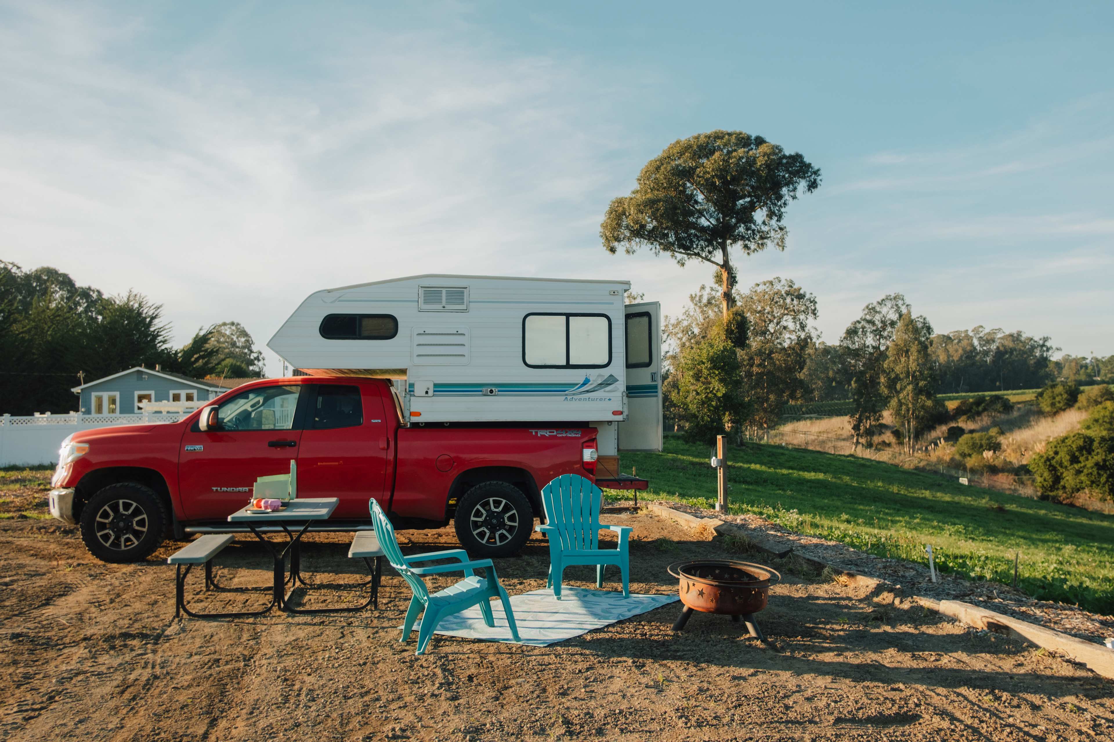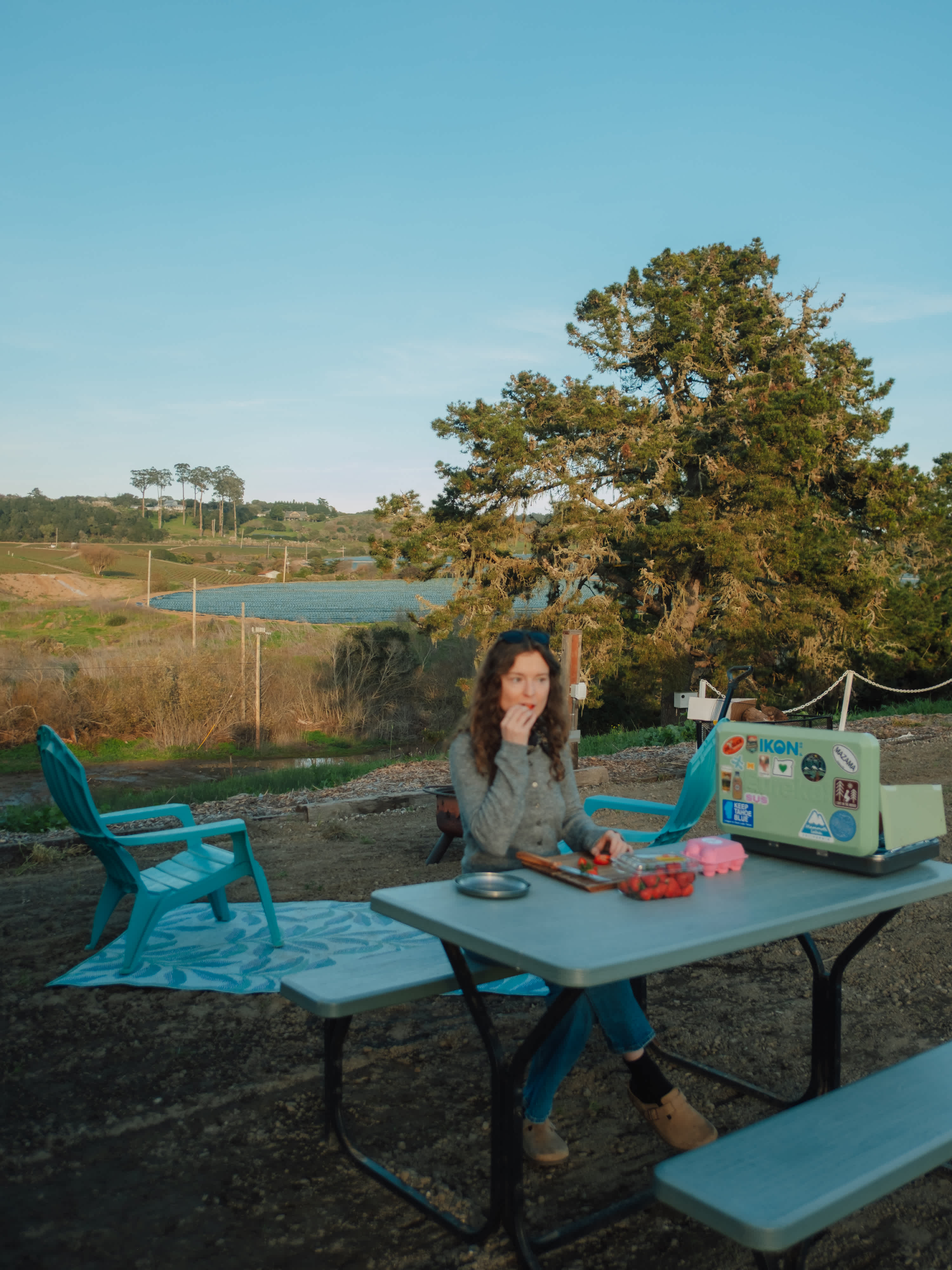 The sites are very comfortable - graded flat, with water and power for RV's, overlooking a valley and strawberry fields in the distance.