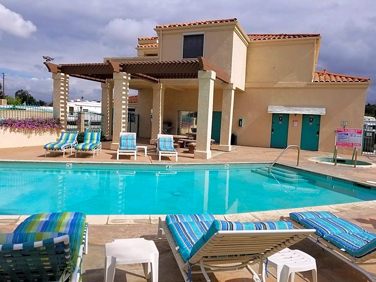Nestled on a scenic plateau between the stunning Blue Mountain and La Loma Hills, Terrace Village RV Park stands out as a unique destination in the heart of Grand Terrace, just 8 miles south of San Bernardino. This charming park embodies a spirit of tradition and community, making it an ideal retreat for families seeking quality time together in a friendly atmosphere. As the premier full-service RV park in California's Inland Empire, Terrace Village offers top-notch facilities, spacious sites, and a variety of amenities designed for your comfort and convenience. The park is gated, ensuring your safety and peace of mind during your stay. We welcome small to medium-sized pets (one per site) as long as they are leashed and well-behaved outdoors. Please remember to clean up after your furry companions to help us maintain the park's pristine environment. When it comes to comfort and hospitality, no other RV parks or campgrounds in San Bernardino or Riverside can compare to the experience offered at Terrace Village. With nearby attractions that include beautiful natural landscapes, swimming holes, and a variety of outdoor activities, as well as local restaurants and shops, your stay promises to be both enjoyable and memorable.