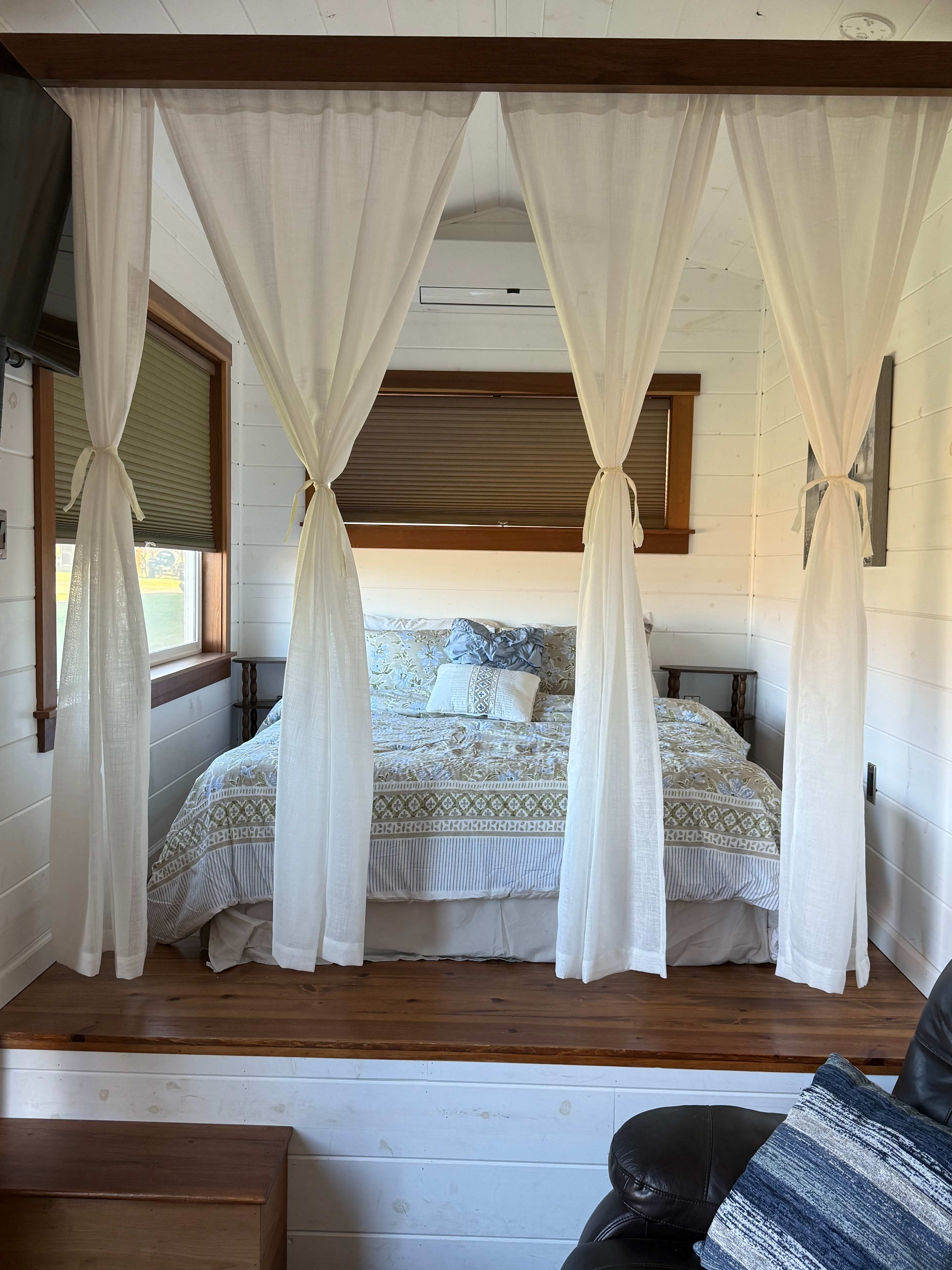 Enjoy your stay in our charming tiny home. Queen size bed with reclining sofa that could fit one extra adult or two small children. Full kitchen and bathroom, Keurig, and bbq on porch.