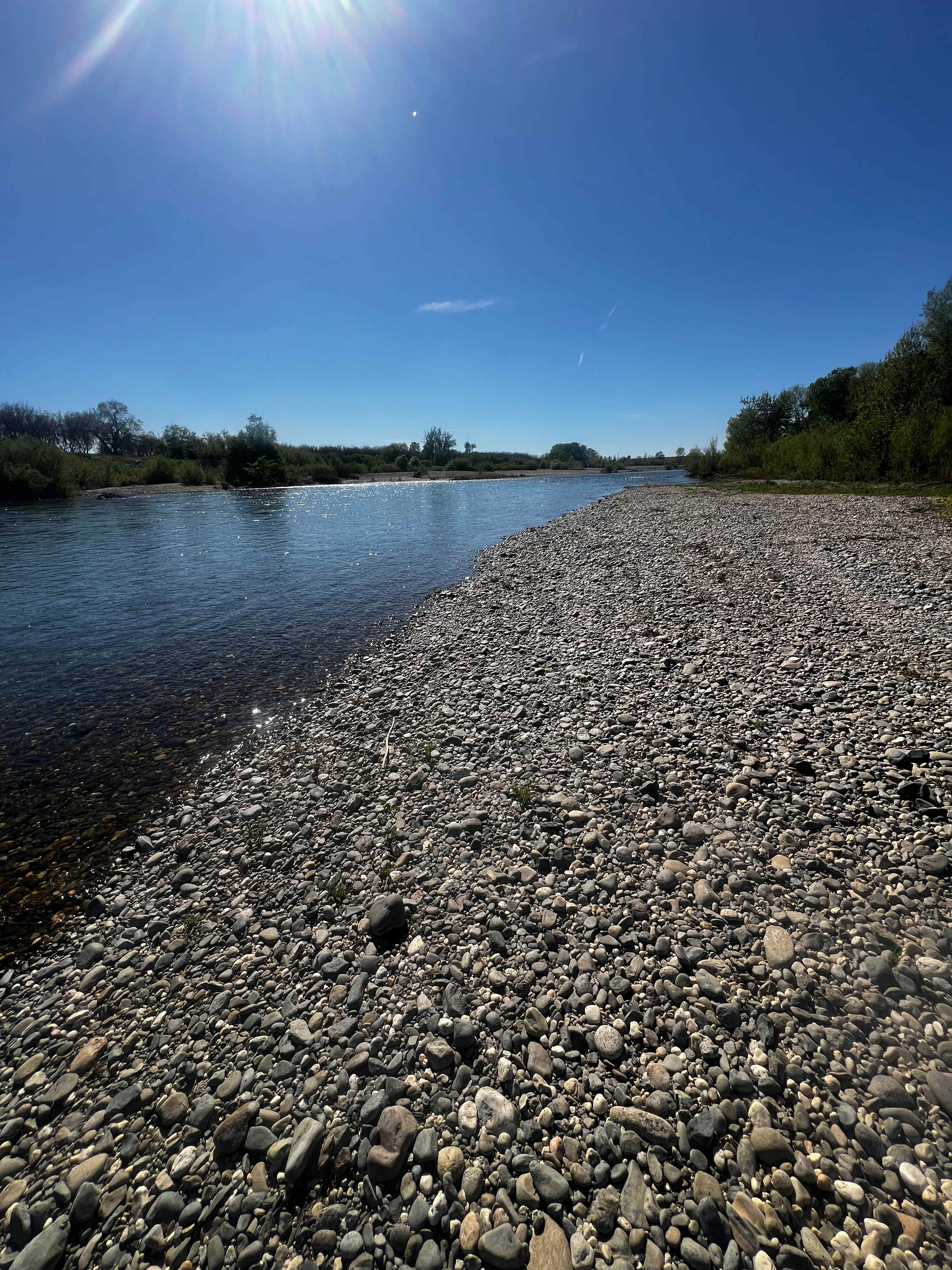 Listen to the river all night next to your camp fire. In the morning walk your dog on the river rock beach.