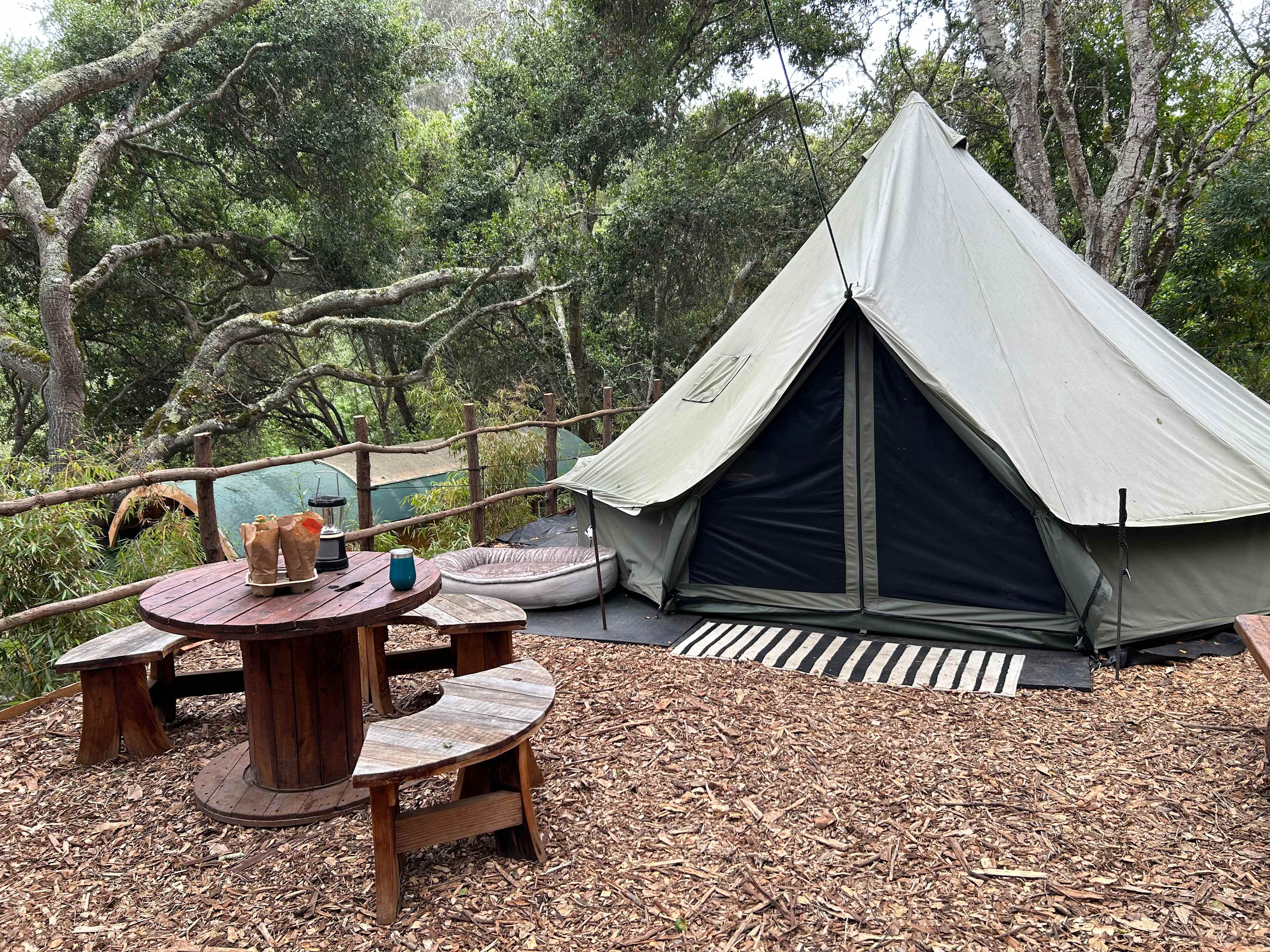 I’ve stayed at plenty of campgrounds, but I’ve never seen one so beautifully kept. It’s immediately obvious how much love and care goes into this place. This is glamping at its finest — the communal area alone is worth the trip. There’s a massive, fully equipped kitchen, multiple firepits perfect for evening hangs, and even a big screen projector for cozy movie nights under the stars.