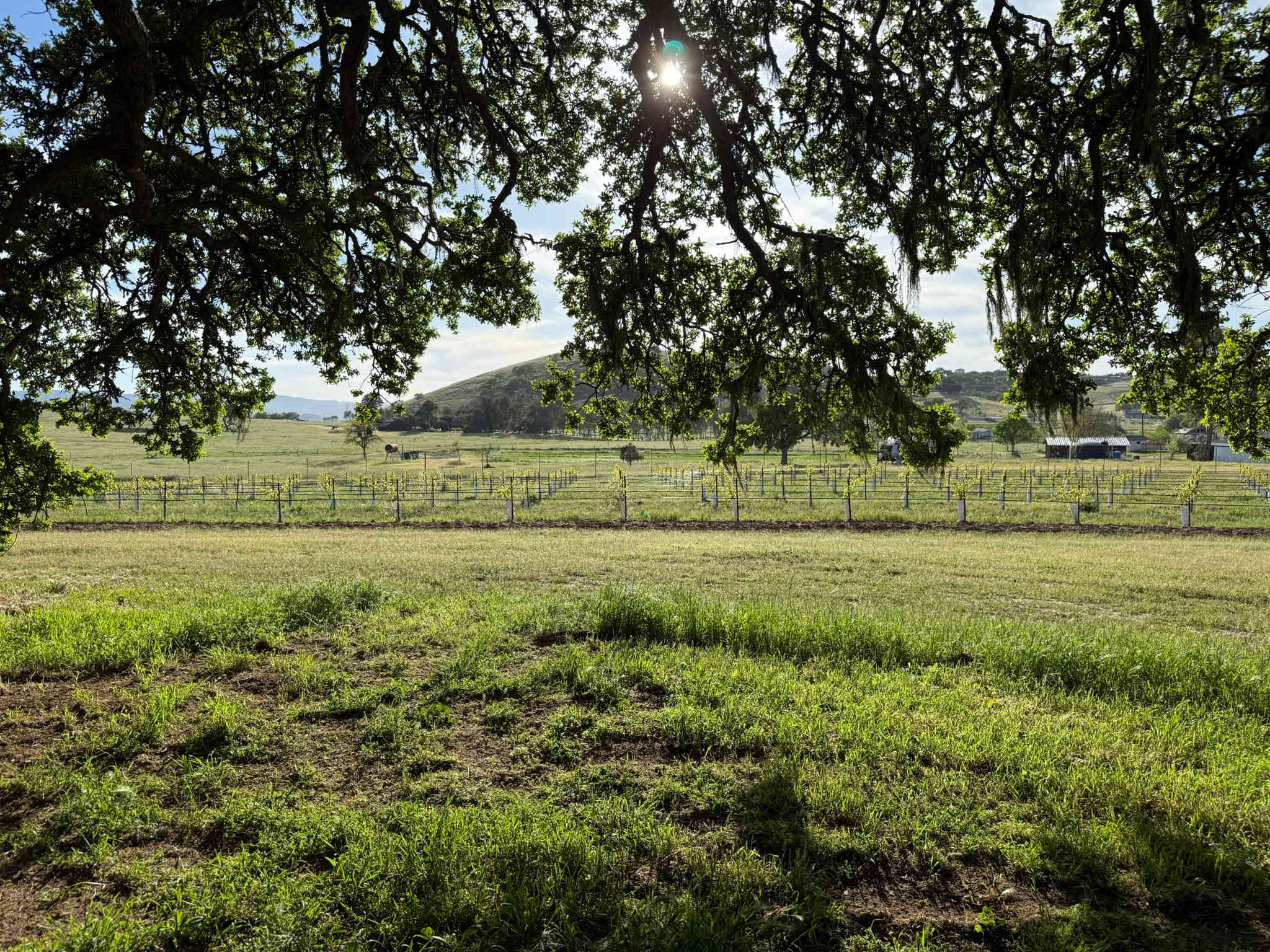 The Silver Bell Ranch is 44 acres in the center of Templeton Gap wine region and within a few miles of Paso Roble wine country. Two sites: one full hookup and one self-contained (under a magnificient blue oak). The ranch is pasture and rolling hills with a two-acre vineyard and beaiutiful views of surrounding hills and ranches. The sites are private, quiet and peaceful. The Silver Bell is minutes from Templeton and Paso Robles AVA wineries and a half hour from the ocean, the hotsprings of Paso and drivable to all of the amenities of the region: Paso Robles and the cities of Atascadero and San Luis Obispo, and San Miguel. Atascadero is a fifteen minutes drive away; San Luis Obispo is a half hour drive. The ranch is gates for privacy; guests are restricted to the RV sites.The (Big) Blue Oak site is under a magnificent, shaded blue oak inside a fenced vineyard with views of surrounding countryside. Under the oak in the shaded area is a picnic table if needed. There is water near the site. The ranch is @ 4 miles to both Paso Robles and Templeton, in the heart of the Templeton Gap winery area. Victor Hugo Winery is on the other side of our hill. One class B or one vehicle towing a trailer. Easy backing. Minimal leveling may be needed. Quiet generators ok. Leash needed if dog is a runner.