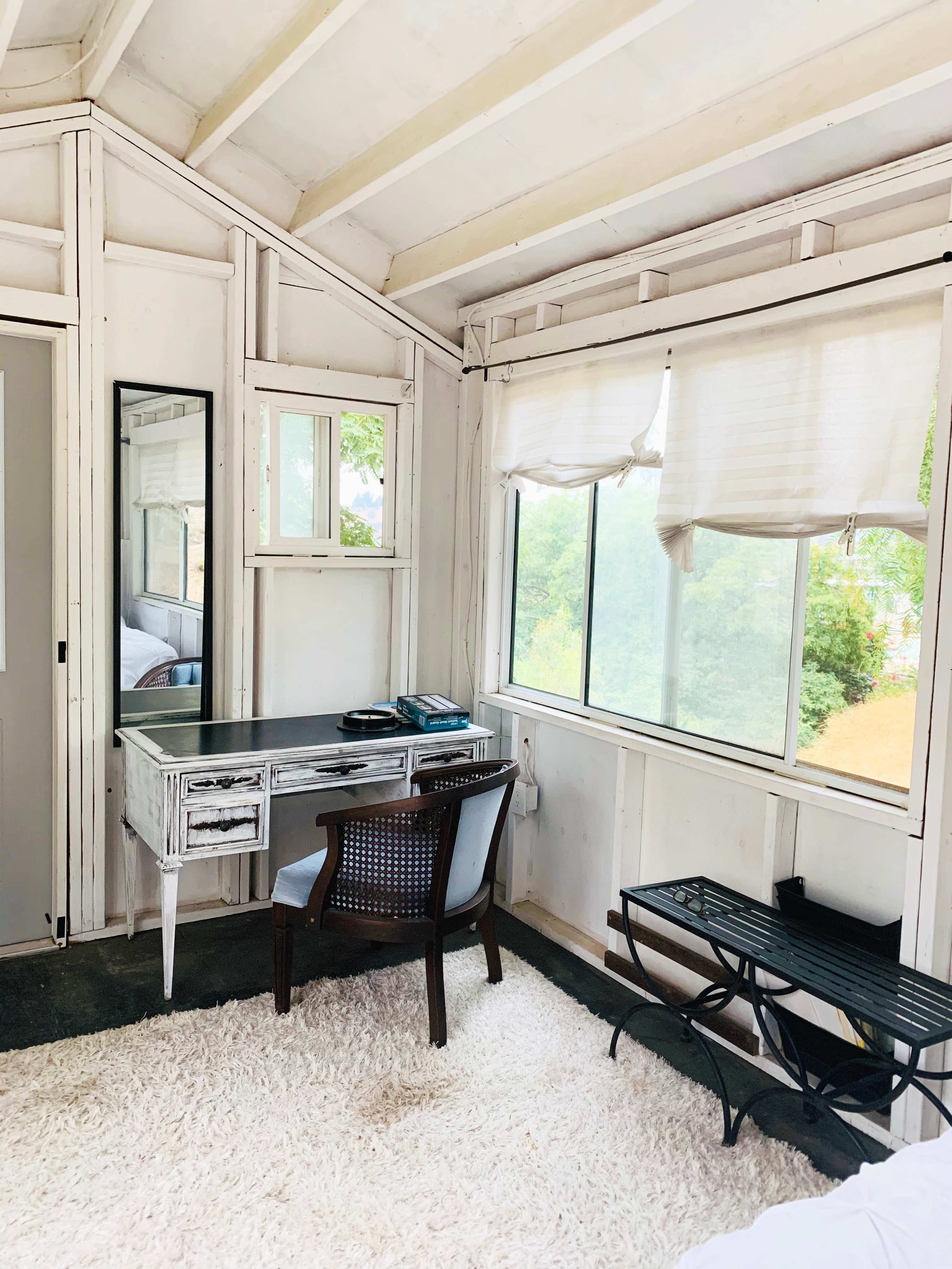 On the hillside of rural Shadow Hills in Los Angeles known as "Horse Country", most residents work in the film and TV industry in an area described as "close but a world away from the studios". With views of the hillside and neighboring horse arenas and barns, you'll forget that you're still in Los Angeles and Disney studios is a mere 15 minutes away!A sanctuary in the Valley, a well kept secret for many in the film industry, minutes from Disney Studios, but tucked away in the rural vistas of Horse Country. Chill on the private deck and enjoy cocktails in the serenity of the hillside. With breathtaking views of the sunset and sounds of wildlife. This is heaven for nature lovers with state-of-the-art dry composting toilet, heated outdoor shower, fully equipped outdoor kitchenette. I live in the main house 200' feet away. And two very sweet rescues who will come down to visit you and romp through the horse arena! ******We will need an Estimated Time of Arrival the day before your check in. To schedule to let you into the property and show you the way.