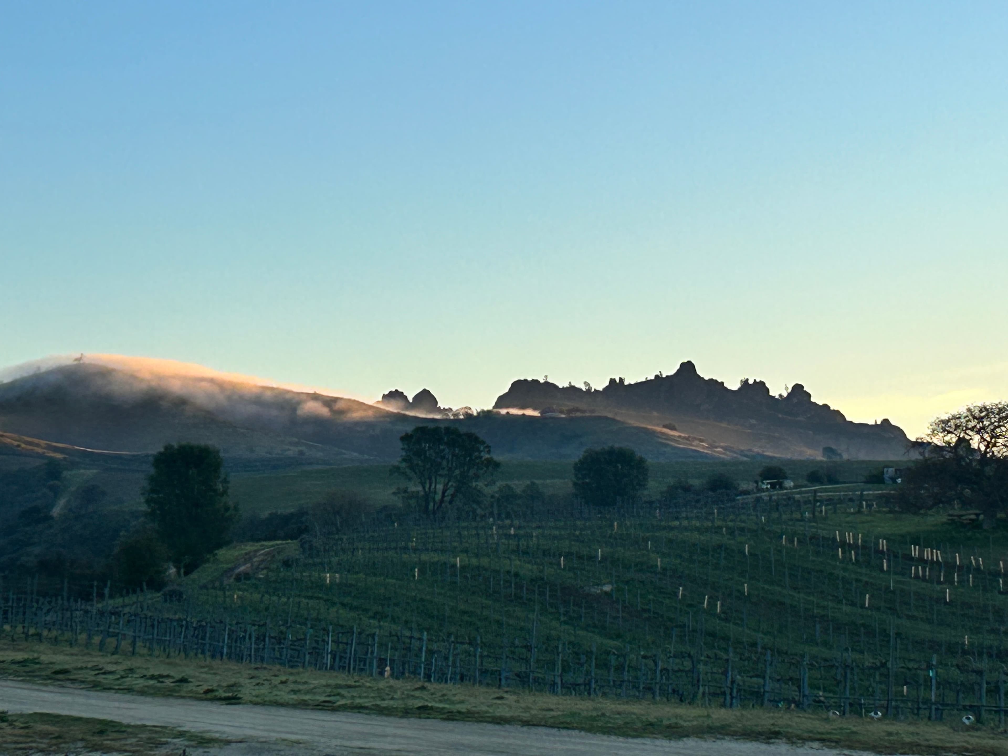 Looking for your next great stop in your Sprinter van or rooftop tent? You’ve found it in Monterey County! Park your fully self-contained camping vehicle beside our organic vineyard, just 2.5 miles from the Westside entrance of Pinnacles National Park. Due to the "no pets" policy at the Pinnacles National Park, and because we have working barn cats on site, we also have a "no pets" policy on our property. You can be at the gate right when it opens and snag the best parking spot without the morning scramble. After a full day on the trails, return to the vineyard to catch the sunset from one of our comfortable patios. Stay out a little longer, and you’ll see the sky deepen into a canopy of stars — this is a designated dark-sky zone, and it shows.