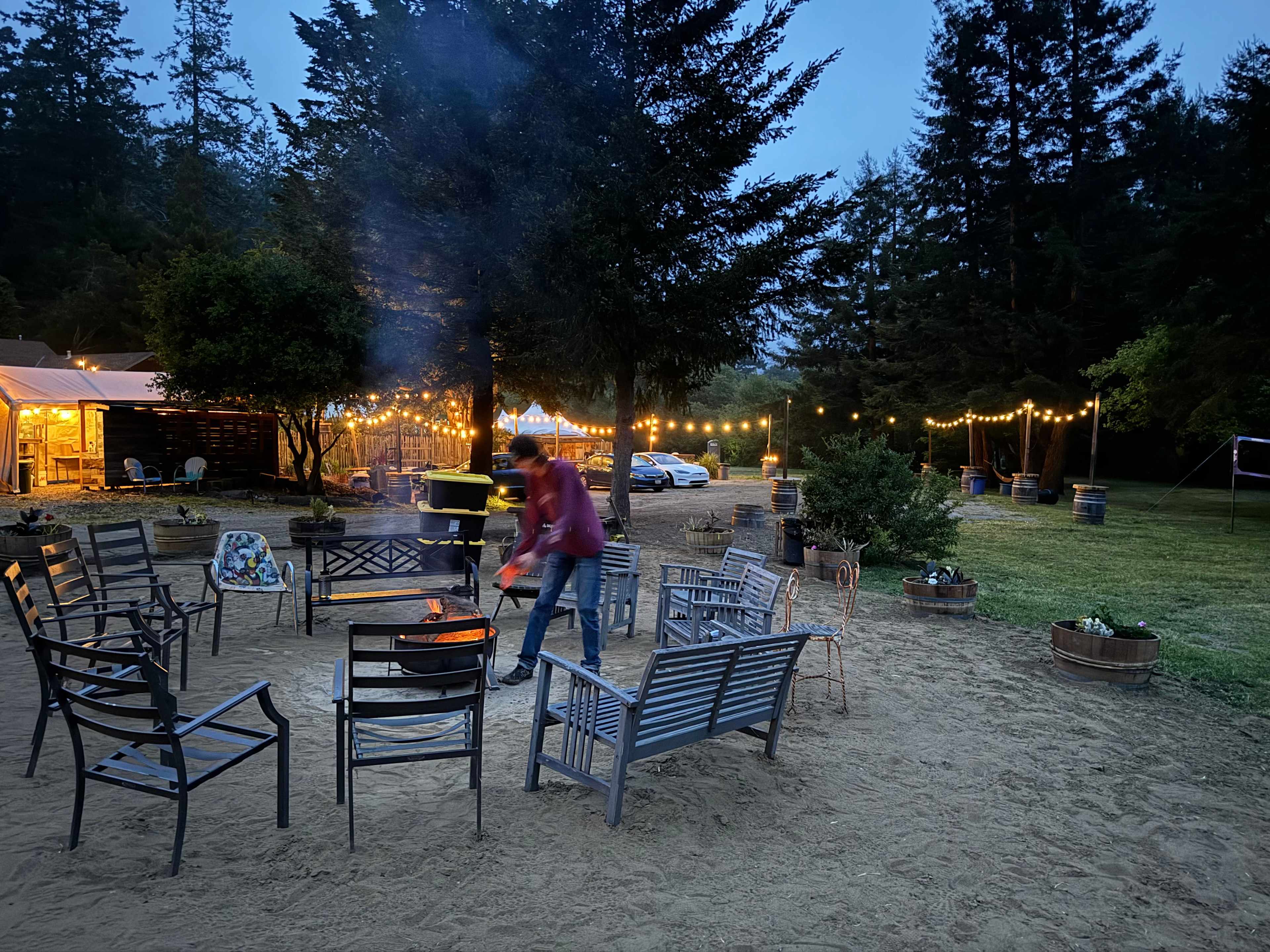 Nestled among ancient redwoods at the end of our winding dirt road, and along the edge of Butano Creek, our Retreat Center is a hidden gem. Tucked away on a private acreage in the charming town of Pescadero, we're about an hours drive from our neighboring Bay Area cities, San Francisco, Palo Alto, and Santa Cruz. Venture is rooted in the 1960s counterculture movement, and we've long served as a haven for spiritual exploration, self-discovery, and personal growth. Our special spot is a serene escape when you're seeking time to connect with your spiritual path, serenity and relaxation, or reconnection with nature. Venture is owned and operated by a nonprofit organization. Our center is designed to welcome transformational personal growth and wellness groups, as well as other nonprofit groups, Companies and schools looking for a place to teach workshops and retreats. Being that we are surrounded by nature, along with beautiful nooks and structures that invite people to unplug, put their phones down and tune into nature. The birdsongs, natural landscape, wildlife, creekside meadow, redwoods, willows and more, all lend towards diving deeper to connect on a deeper level. The campus offers a mix of dispersed charming cabins, a serene yurt, camping sites, and glamping tents. You can immerse yourself in the lush forest that surrounds us, soak up the sun, and explore creek-side beauty. Gather around the warmth of an evening fire or drum circle and enjoy the dusk and starshine coming on. Just down the street is Pescadero proper. A sweet little spot (nine hundred strong) and California coast perfection. You'll find gorgeous scenery, local food and drink, neat landmarks, beautiful places to hike and explore, fun galleries, and really, really good people. Ask us for our favorite spots, we’re more than happy to share!