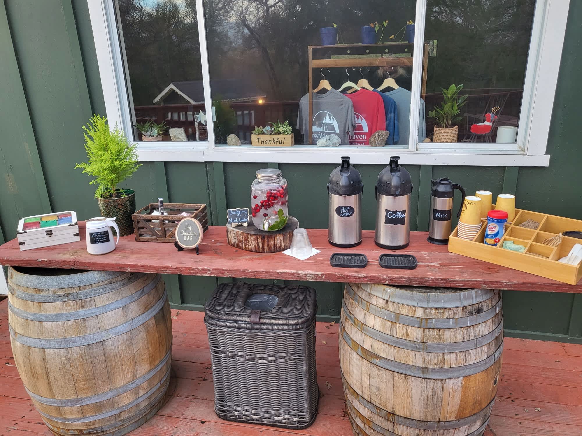 The STANDARD TENT WITH 2 QUEEN BEDS is located in our back row, closer to the road, but still a 1-minute walk to the river. The additional queen bed is perfect for: • Families: 1-2 children can share the second bed, versus adding 1-2 cots with the 1-Queen tents and bringing your own linens. Fire code prohibits personal cots/mattresses, floor sleeping, or extra guests. Cribs or Pack & Plays are permitted. • 3-4 Adults: Up to 4 adults can book this tent, as long all guests sleep in beds. Floor sleeping is not permitted, and quiet hours must be followed strictly with the extra adult occupancy. There are no fees to add children in this tent. Other than these differences, it is the same tent as the Standard - 1 Queen tents, which have these features: • TENT: Stay protected from the elements in a safari-style, all-canvas tent with large waterproof rain fly. Spread out in 180 square feet of living space (12 x 15) with 9-foot ceilings, 3 windows, and a large screened-in front door to bring in light and fresh air • SLEEPING: Comfort is our goal, so we provide a queen-sized bed with a memory foam mattress, heated mattress pad, quality linens, comforter, and an extra blanket. • FURNISHINGS: Your home includes nightstands, bedside lamps, shelves and a hanging rack for clothes, small table and chairs, towels, mirror, trash can, and a large rug • ELECTRICITY: Charge phones with bedside USB outlets or power up other devices with standard household plugs. Sorry, no high-voltage devices such as hair dryers. • HEATING & COOLING: Your home comes with a powerful space heater to supplement the extra blankets in cooler months, and a fan to help move air through the tent in warmer months • FRONT DECK: Our custom-built tents feature a Wildhaven specialty: a 6-foot-long covered front deck perfect for sipping local wine or just relaxing after a day of exploring • FRONT YARD: Your tent also includes a private area in front of the deck where we place a large firepit with cooking grill and an 8-foot-long picnic table. • PARKING: Each tent has one reserved parking space. Up to one extra car can park nearby in our visitor area