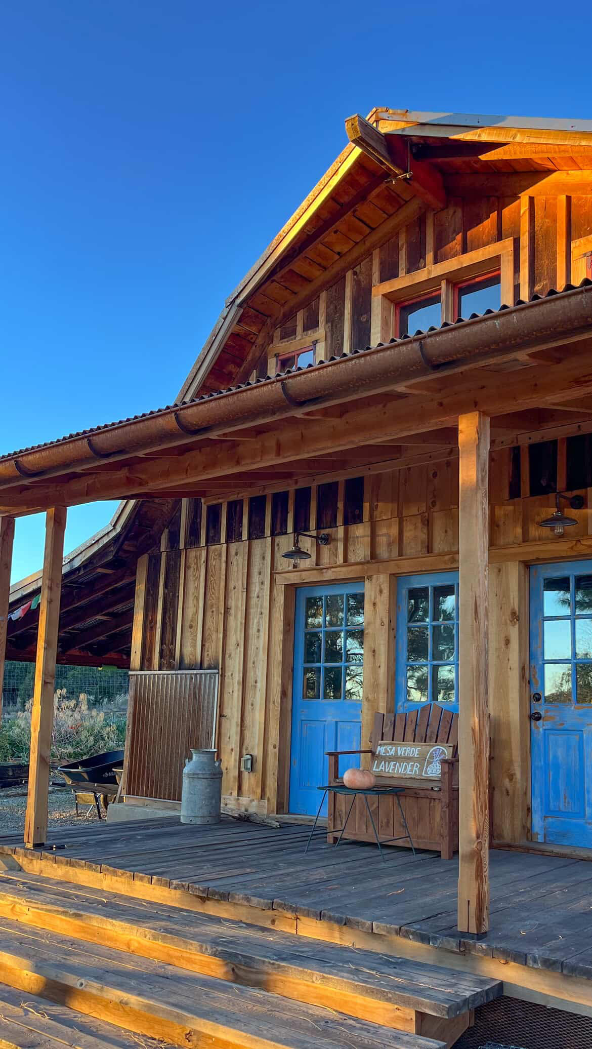Welcome to Mesa Verde Lavender! We are a working lavender farm with 2500+ lavender plants, a flower garden, calendula, yarrow, and a small orchard. Hike in the canyon that runs through the property, roam with the birds in our pastures, pick some fruit if in-season, or sit and enjoy wildlife, sounds of the creek, and views of the La Plata Mountains, Sleeping Ute Mountain, and Mesa Verde. Our 50 acres is situated in Southwest Colorado between Cortez, Mancos, and Dolores. 5 minutes to Phil’s World for mountain biking, 1 hour to Durango, and 2 hours to Telluride. Pay for the experience - farm tour and all the fixings. The breakfast, stay and hospitality is included with the farm tour! Note: this is NOT a commercial campground; rather an agricultural business with a focus on all things lavender. Come adventure, smell the flowers (literally!), and enjoy feeling of these ancient healing lands!Wake up on a working lavender farm at the end of a dirt road on the canyon edge with views of Mesa Verde National Park. Bring your belongings and stay in our fully furnished lavender wagon, a handcrafted wagon set in the lavender fields. The space is compact but thoughtfully laid out, with a comfortable queen bed with everything you need for quiet, easy stay - two burner propane stove, microwave, small sink, toilet, refrigerated cooler, ventilation fan, and reading nook. Plates, utensils, pots, pans, teas, and coffee all stocked for your stay. A mostly organic homemade breakfast for up to 2 people, is included each morning. The space is designed for one or two people. It is best suited for guests looking for quiet, private and a slower pace. While most come for a visit to Mesa Verde National Park, those who stay longer tend to enjoy it more. There is more here to experience than most expect, from the quiet desert canyons to the nearby mountain towns. Parking is provided within steps of the wagon. A small table with chairs rounds out the space outside. Within sight of the wagon is the shower house, with full privacy and hot water, for your use. Towels and soap provided. Upon arrival, you will be greeted with a farm tour so you are oriented, then settle in at your own pace. This is a place designed for slowing down, sleeping well, and finding time to reset. With golden hour at the canyon edge, an optional wood fired sauna experience is also offered as an "extra"; please book prior to your stay. This wagon was constructed by our family for you and we expect you to treat it as your own while you are here :). There is no cleaning fee associated with the lavender wagon, so to help keep it this way please keep things tidy and organized. To protect the lavender fields and maintain the setting, we are not able to accommodate pets. Quiet hours are from 8 PM - 7 AM. This is a working farm with some construction and on-going farm activities, so please expect noise during the day. No arrivals after 10 PM, please. We live in a rural setting and are respectful of our neighbors peace and quiet, in addition to our own. When booking, please let us know how many people will be staying in the wagon and the reason for your visit in the area! Thanks!