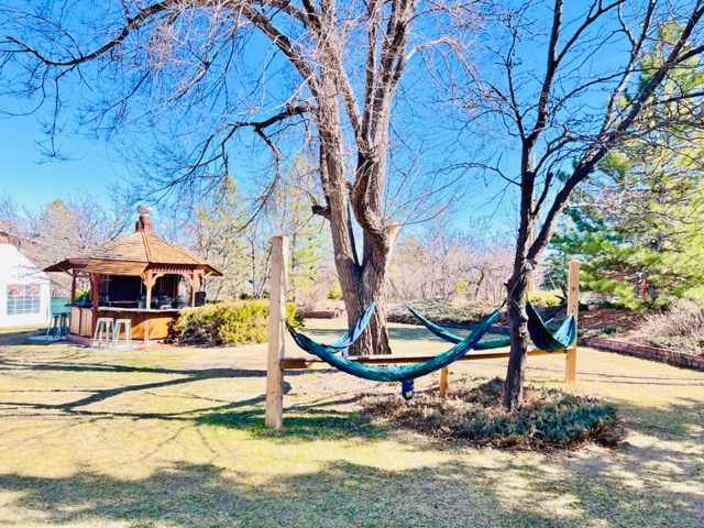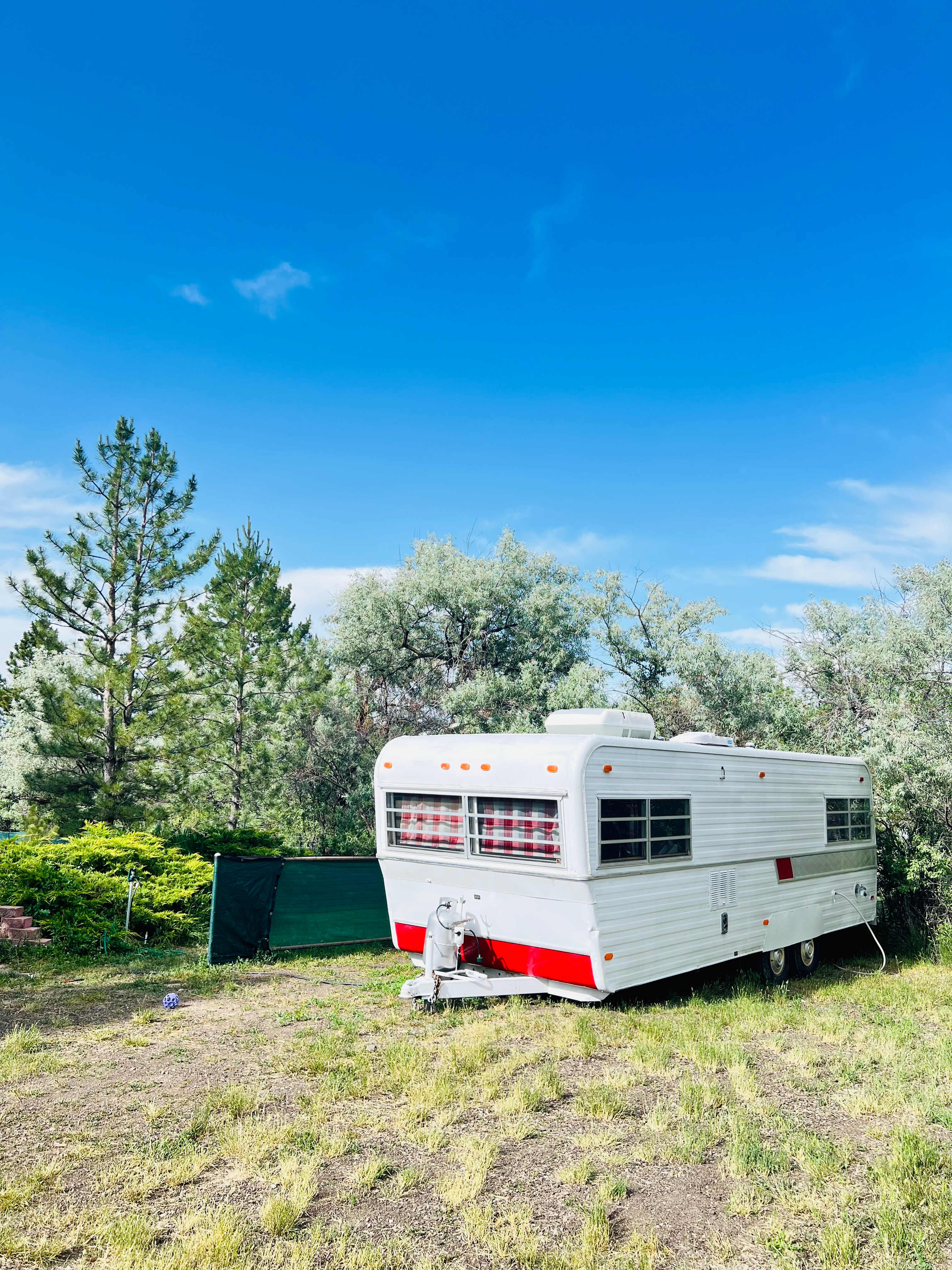 22 ft travel trailer · With pets · They have everything! A peaceful setting in a space shared with two other trailers (vintage, that they rent to glampers) nice outdoor green spaces to enjoy with picnic tables, hammocks and outdoor cooking area. Then they also have indoor space: two flush toilets, shower, dinning table and chairs, microwave and large screen TV. Two nice silly dogs in residence and two very nice, thoughtful, kind and welcoming hosts in Greg and Olivia. We stayed twice this summer and will surely be back when we return to the area. Only negatives: no sewer hookup for our camper (not a huge deal with flush toilet and sinks mere steps away in the flex room described above) Also the space was a challenge for me to pull out of due to tight turns around some fencing. Since I was nervous about taking out these lovely host’s fence with our 21 ft. Travel trailer, Greg very kindly backed out for us to save me the stress. While the location is excellent and the property lovely and well cared for, it is sometimes a little loud as it is across the street from Niwot high school football and sports fields. Some mornings and Friday nights the practices and games were quite easily heard from their tranquil backyard space. But that was a small trade off for a place that was very peaceful most of the rest of the time.
