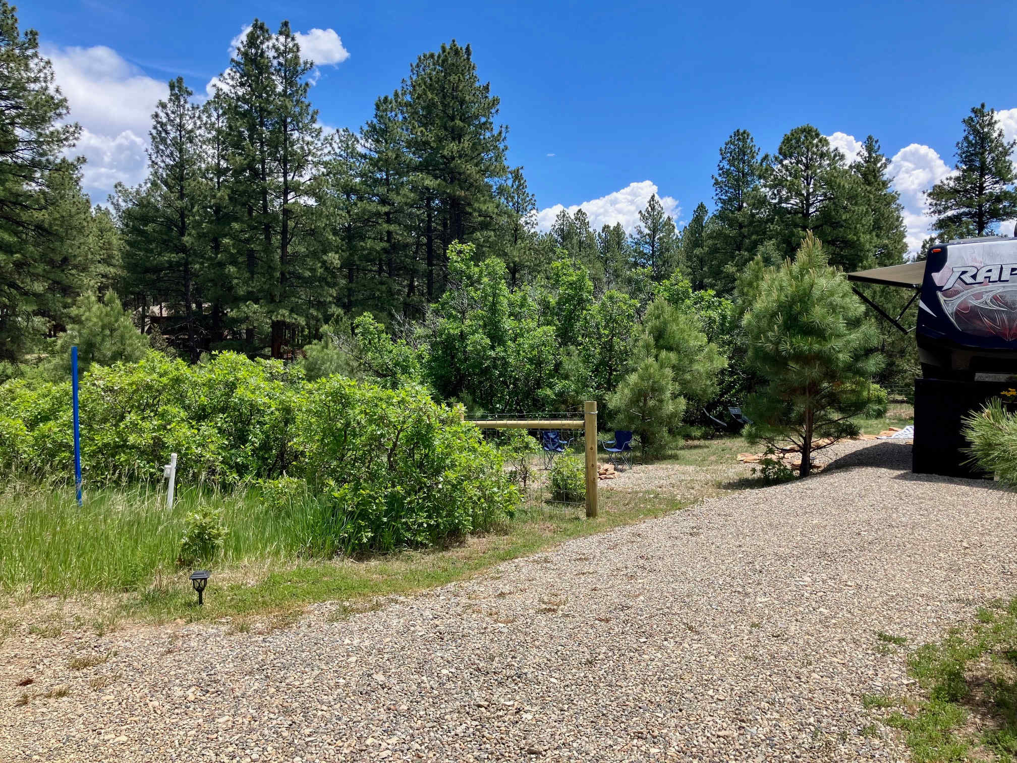 Hi! What makes us special? Welcome to the forest! Our property is on 3 wooded acres of tall Ponderosa Pines, we offer a full hookup fenced camp site, with private driveway off the main road. We are a small homestead and raise free range chickens and have a large garden and greenhouse. You will enjoy your own fire pit, and private fenced acre or so of space. PLEASE NOTE: Some reviews reflect a time when we rented our personal RV out in this space-It is now just an RV space. We are a short drive into the San Juan Mountains, 20 mins from Mesa Verde bring your JEEP or ATV and explore the many historical mines. If you would like a guided tour, just ask us! We are almost always up for a ride! (Added bonus, Doug is geologist and can give you the ROCK history.) Mountain bikers, this is your dream! We are a short drive to Phil's world and Boggy draw riding areas. Your bikes will be safe locked or unlocked to the RV. We have excellent Verizon phone service and do provide onsite Starlink WIFI. Summit lake is 1/4 mile away, a short and easy walk. Great fishing and a nice beach. We have many surrounding trails for some great hikes! Ideal home base for visits to Mesa Verde National Park, Phil's World and Boggy Draw (mountain biking), Hovenweep National Monument, Canyon of the Ancients and so much more! We are 40 mins to Durango, 90 mins to Telluride (take the FREE gondola for a super fun beautiful ride), 20 mins to Cortez. Delicious food can be found in our local restaurants in Mancos and Dolores. In the winter Purgatory Ski Resort is just over an hour. Come play in the Rocky Mountains!Welcome to the forest! FULL HOOKUP RV sites minutes from Mesa Verde National Park and all the Four Corners has to offer. Located across the road from Summit lake for some awesome fishing or paddle boarding. This beautiful three acre property provides plenty to explore, partake of some outdoor grilling, or just kick back by the campfire after a day of exploring. Your private drive and back in site is beautiful and surrounded by trees. Like to ski? We are right between Telluride (90mins) and Purgatory (60mins). Our small local ski hill is only 20 mins away. Your camp spot is blocked from view from the owners. We are conveniently located off hwy 184 so there is some rural highway traffic, which allows easy access year around.