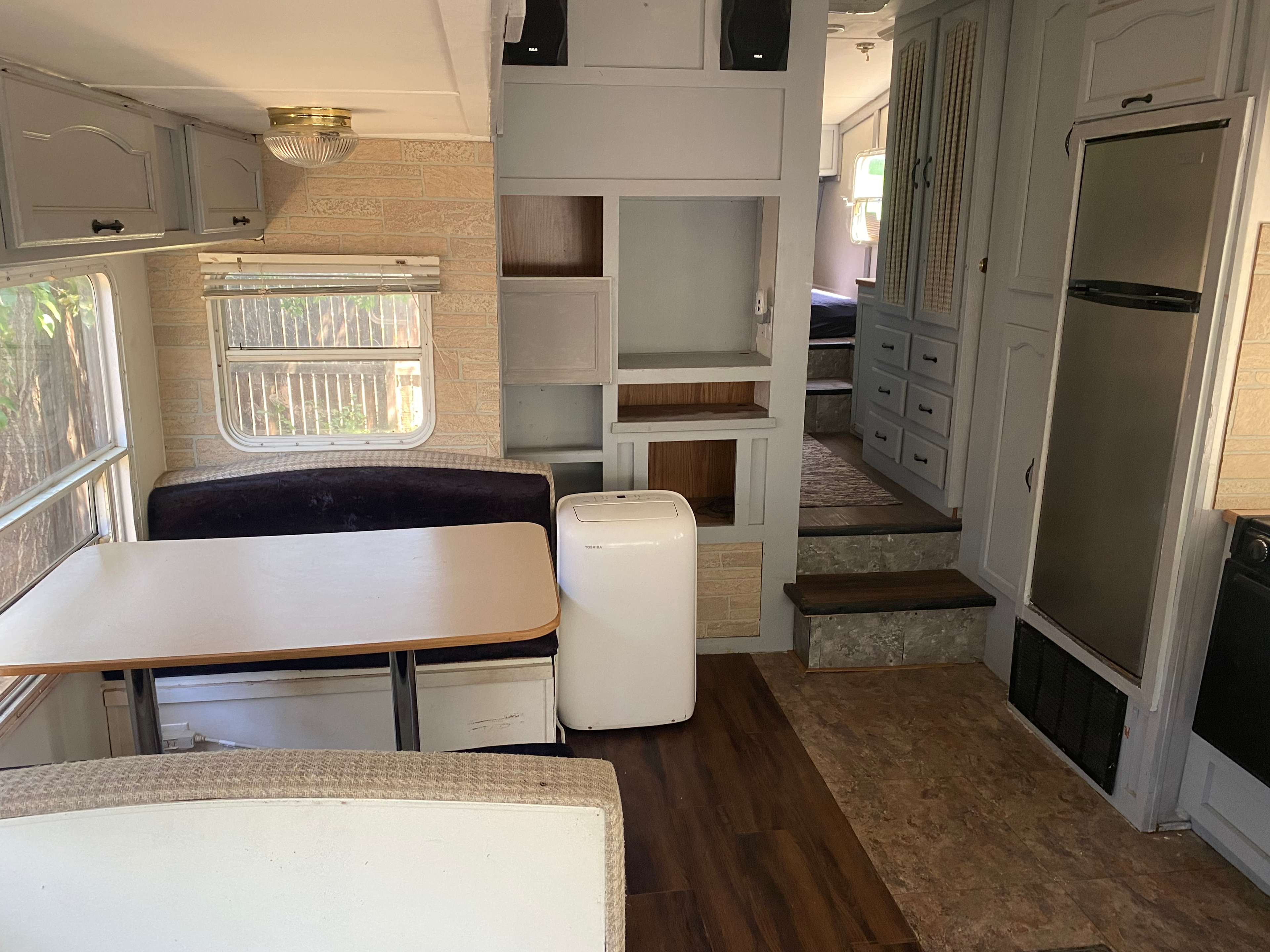 Cozy 5th wheel camper tiny home under a tree canopy, with a private alley entrance and free parking. Furnished with a queen size bed, couch, table/sitting area, mounted smart tv, plus central air conditioning and heating. There is a private, spacious yard (about 3600 sq ft) with fruit trees and a fire pit. Soon to be a shared greenhouse. Located 15 minutes from downtown, 20 minutes to Red Rocks, and 5 minutes from Levitt Pavilion. Pet-friendly and 420 friendly (no cigarettes).Cozy 5th wheel camper tiny home under a tree canopy, with a private alley entrance and free parking. Furnished with a queen size bed, couch, table/sitting area, mounted smart tv, plus central air conditioning and heating. There is a private, spacious yard (about 3600 sq ft) with fruit trees and a fire pit. Soon to be a shared greenhouse. Located 15 minutes from downtown, 20 minutes to Red Rocks, and 5 minutes from Levitt Pavilion. Pet-friendly and 420 friendly (no cigarettes).