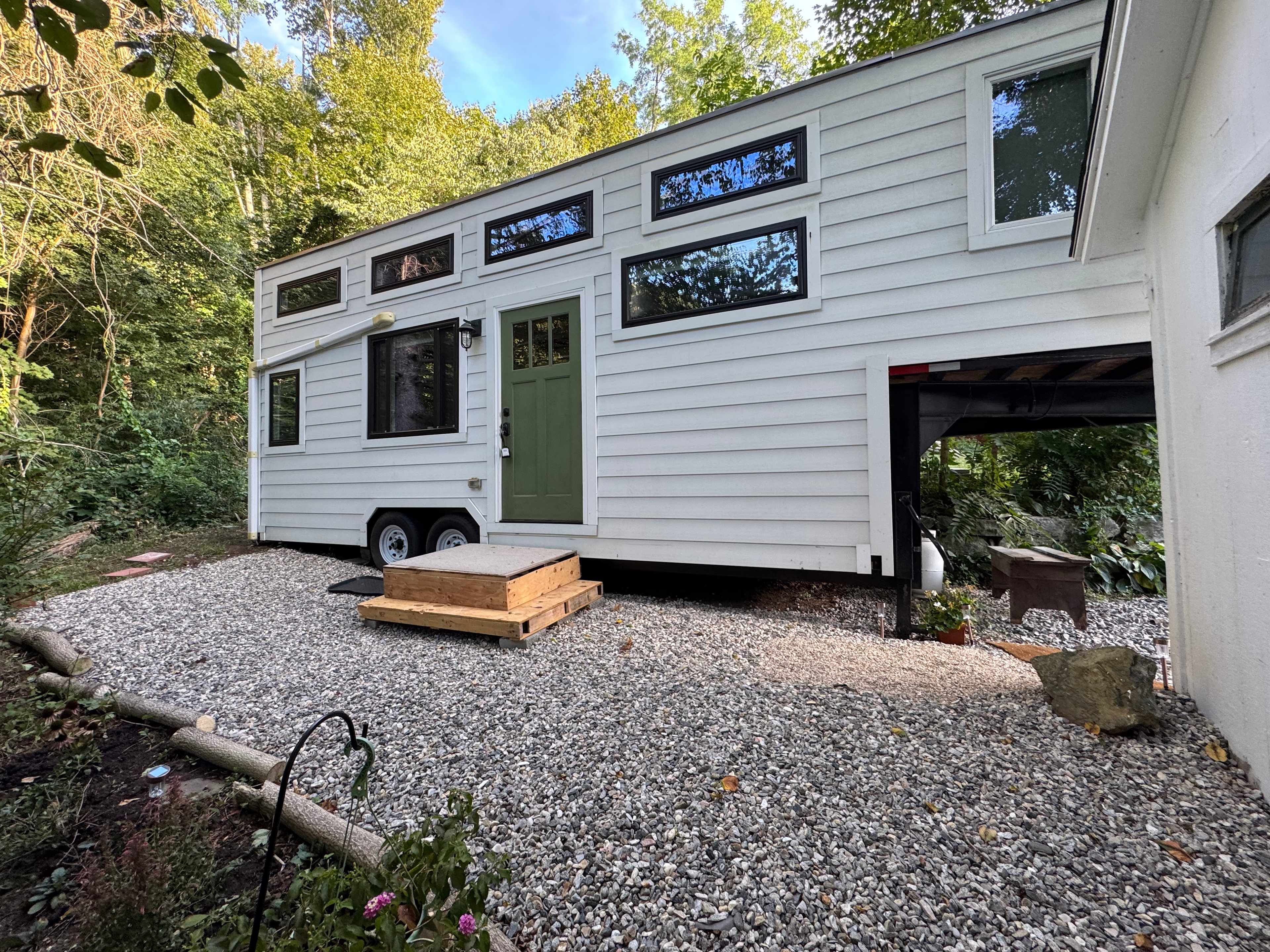 Located in Collinsville, CT named one of the best small towns in the USA, you can find Farmer’s Market, live music, kayaking, biking and a walking trail from our home our historic town is home of the Collins Company Axe factory! ! Easily walk down town or just enjoy nature. This tiny home is off grid but luxury style. Full kitchen, half bathroom, composting toilet you maintain or pay a fee for us to. You may see bear, bunnies, deer and more all in a day! Two full beds- one room and a loft. Perfect for a digital detox! Bonus add on sound healing, yoga, massage or more.Off-Grid Tiny Home by the River, situated on one acre in Historic District. Cozy solar-powered tiny home just a short walk to the river and downtown Collinsville. Features a full bed, loft bed, and eco-friendly composting toilet, which you will need to maintain as listed in the welcome letter. Guests use only earth-safe products to keep the land pure. Perfect for a peaceful getaway, local adventures, or unplugging in nature.