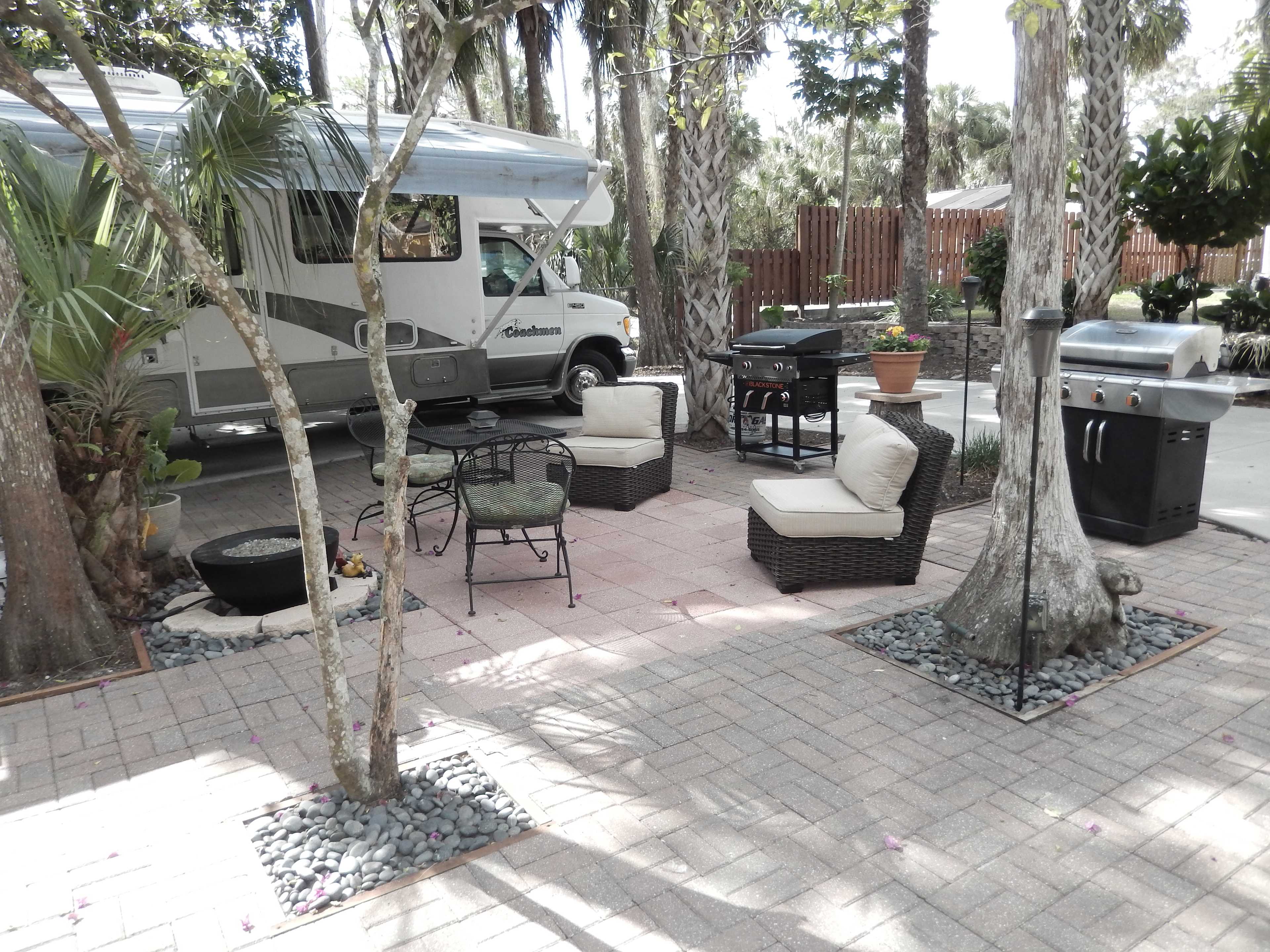 A private, gated RV site. Drive thru access for most units. Most bump outs fit easily from both sides. 15amp service. Domestic soft water. Note: All "black water" MUST be held in your sewage waste tanks. Note: We are located well within the Collier Mosquito Control District, which is a huge plus+ in the summer months.