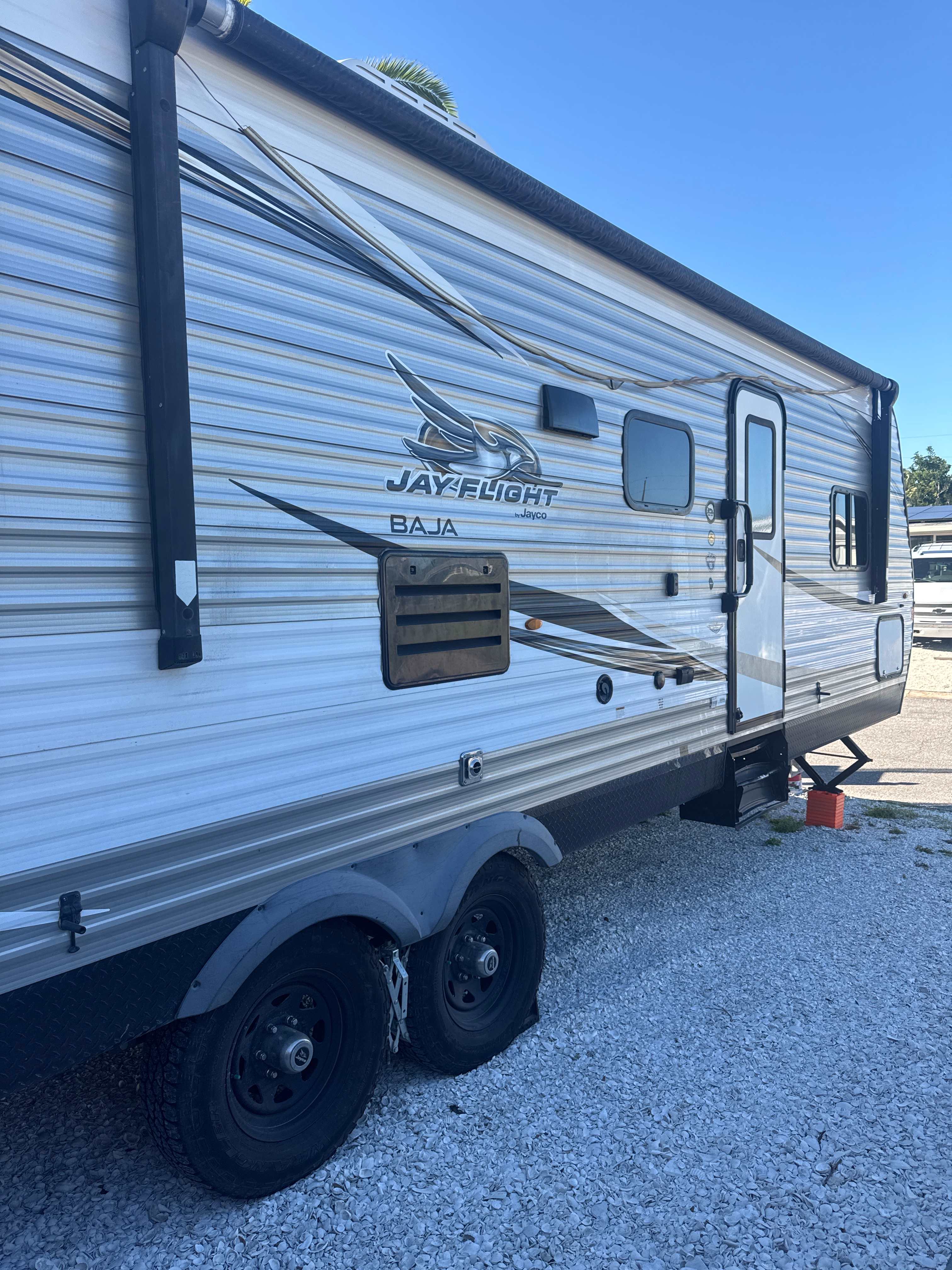 Hi there, we have a RV on the side of our home with full electric, water, and sewer available to stay at! It has a bedroom with a queen size bed and two bunkbeds. Bedding, all kitchen utensils, including pots and pans, silverware dish towels, dish soap, hand soap basically everything is in there ready for you. The shower is nice and big and fully stocked! We are located 3 minutes from Sarasota Bay and 15 minutes from Ana Maria Island! Come and go as you please! Safe and welcoming neighborhood.Fully stocked RV, a queen bedroom and 2 bunk beds, fridge, tv with blue ray player and lots of movies! We are three minutes from Sarasota Bay, and 15 minutes from Ana Maria Island. Safe and welcoming neighborhood.