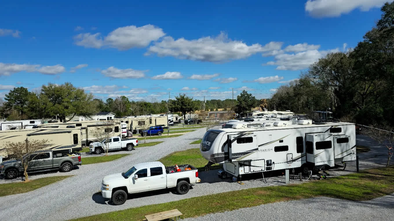 Eagle's Landing RV Park stands out as a premier destination for travelers seeking spacious and convenient accommodations. With all 60 sites being flat, level, and 100 feet long, our park is designed for easy access and comfort. Each site is equipped with city water, 30 & 50 amp electric service, and sewer hookups, ensuring a hassle-free stay. Our gravel sites and roads are complemented by lush grass between each site, making it a big rig-friendly environment. Located conveniently off I-10 at Exit 45 and from Hwy 90, guests can enjoy quick access to nearby attractions and outdoor activities. Stay connected with our premium high-speed fiber optic WiFi available throughout the campground. We take pride in maintaining clean restrooms and showers, along with a laundry facility and basic clubhouse for your convenience. Pets are welcome at Eagle's Landing RV Park, but we enforce specific rules to ensure a pleasant experience for all guests. Pets must be leashed at all times, and outside pens, crates, or kennels are not permitted. We kindly ask that you clean up after your pet, and we do not allow aggressive dogs or excessive barking. Experience the unique charm of Eagle's Landing RV Park, where comfort meets convenience in a beautiful setting.