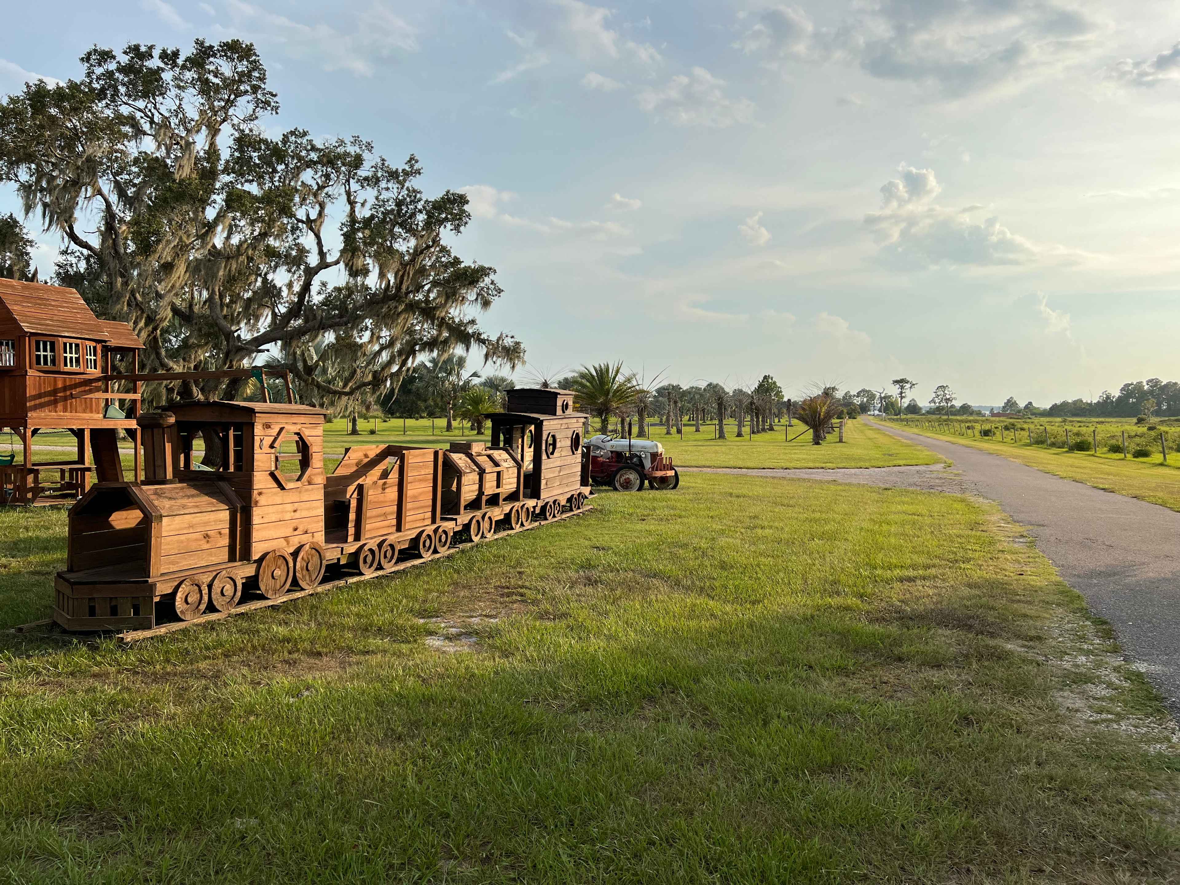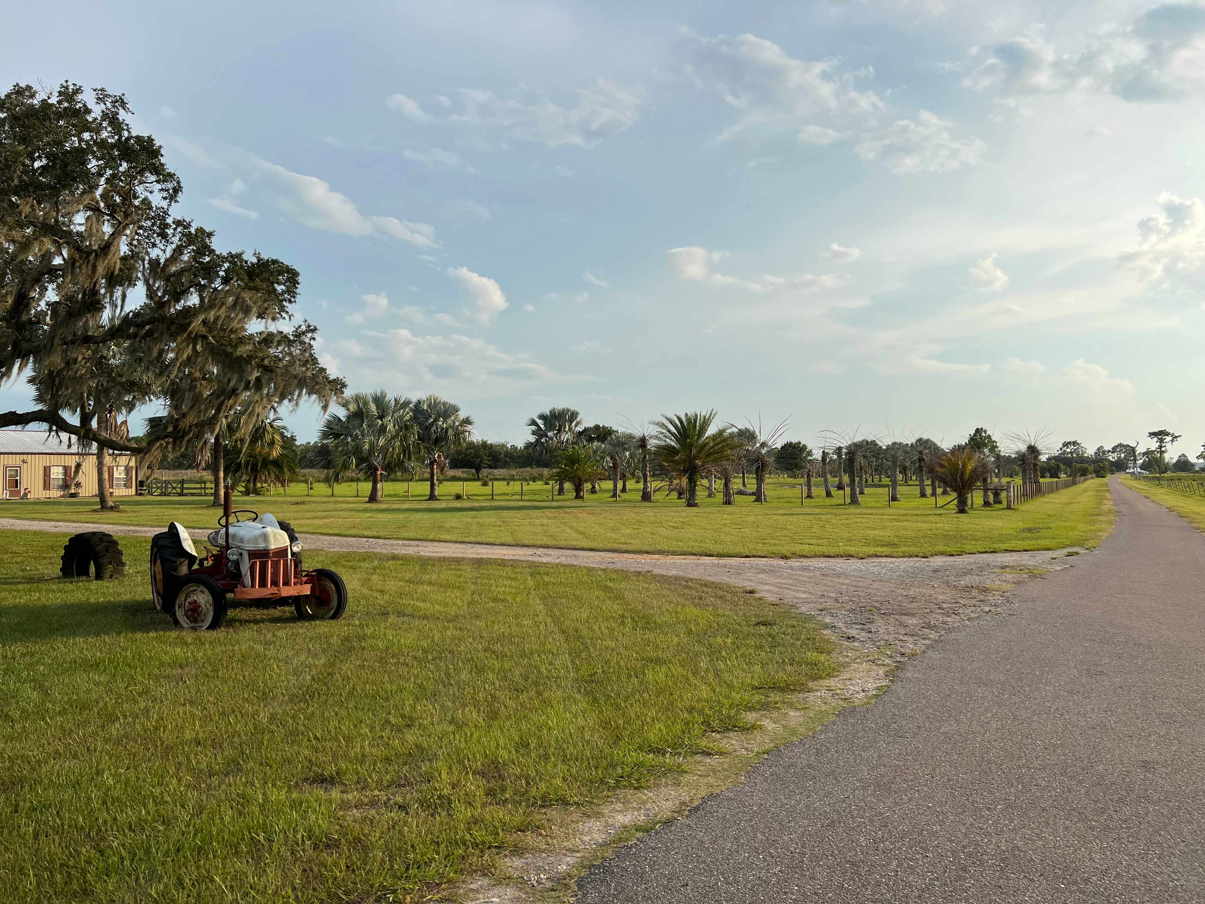 Park your rig on our beautiful grass lot. You will have access to a safe paved driveway for walking and biking. This lot is open field with a few large palm trees. Here you will have a great view of chickens, cattle, horses, and donkeys. We also have a play area for children (supervision required). We are located approximately 1 hour from Disney World, Universal Studios, Orlando, Tampa, and Vero Beach. There are several great State Parks and Reserves in our area as well.