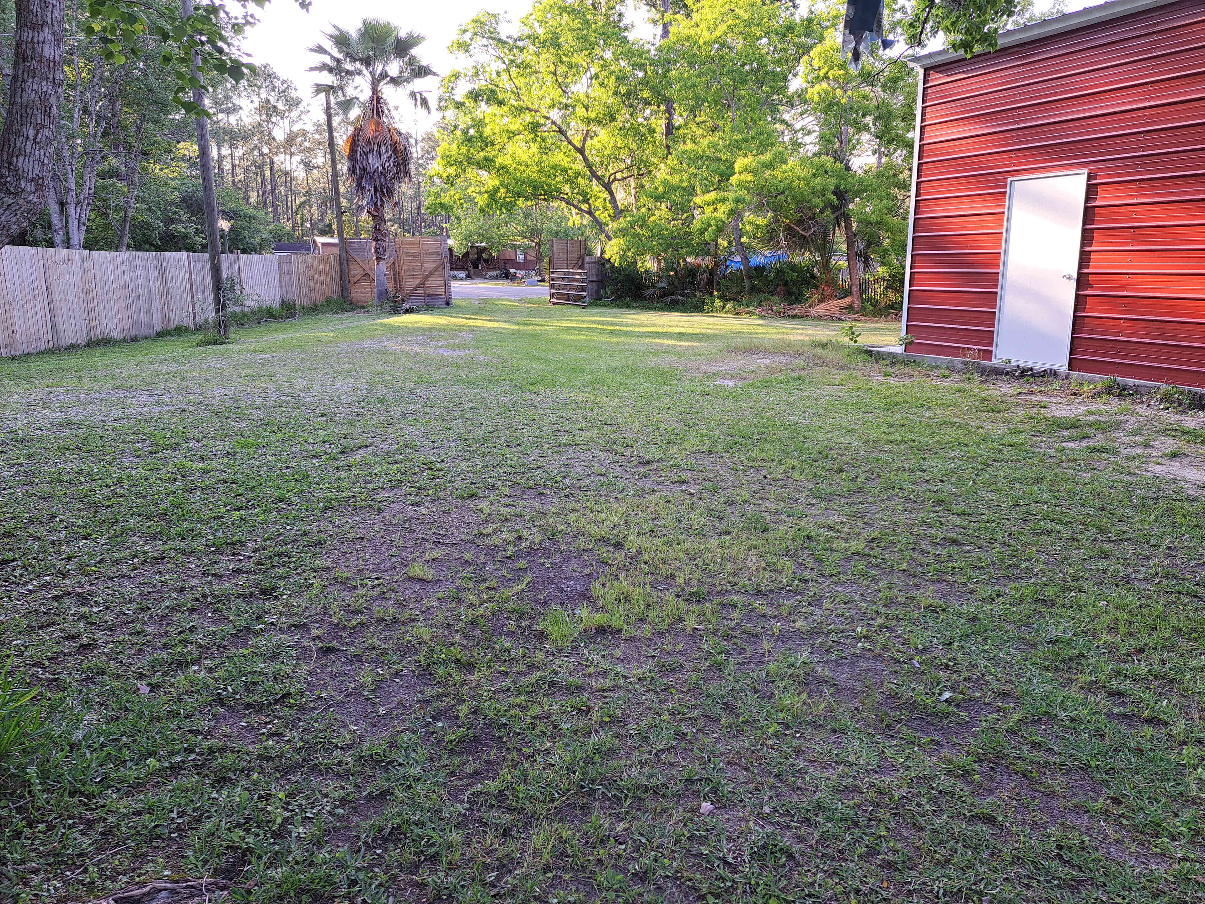 Secluded End-of-Road Camp Lot, nestled just off I 95 and 207 exit. Mostly fenced and gated property. With lighting and surveillance. This tranquil spot boasts ocean breezes shady greenery, offering a peaceful retreat. Just 15-20 minutes to downtown. Power, and water hookup.Great options for camping on this secluded and mostly fenced property. There is an airbnb house on the property just as a heads up but it is a very peaceful acre of land you can share. Fire pits and grassy areas for dogs to run and explore. Large trees provide plenty of shade.