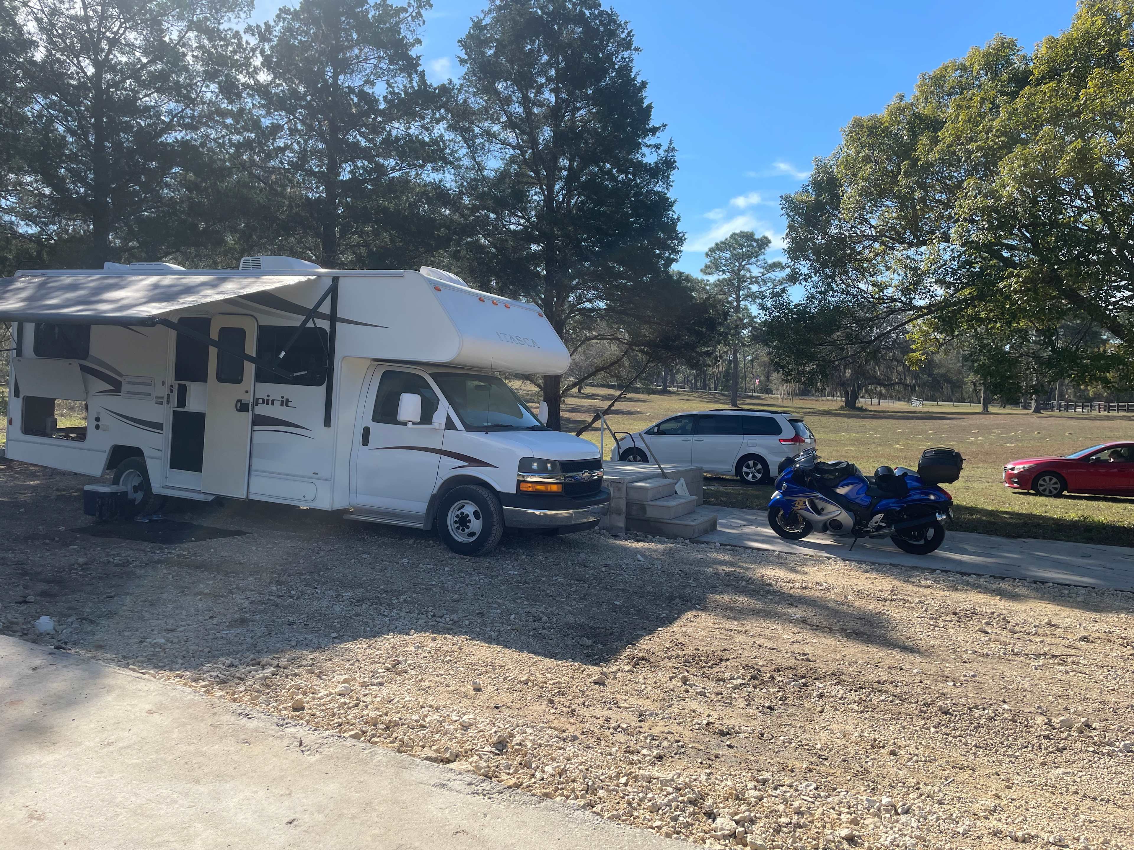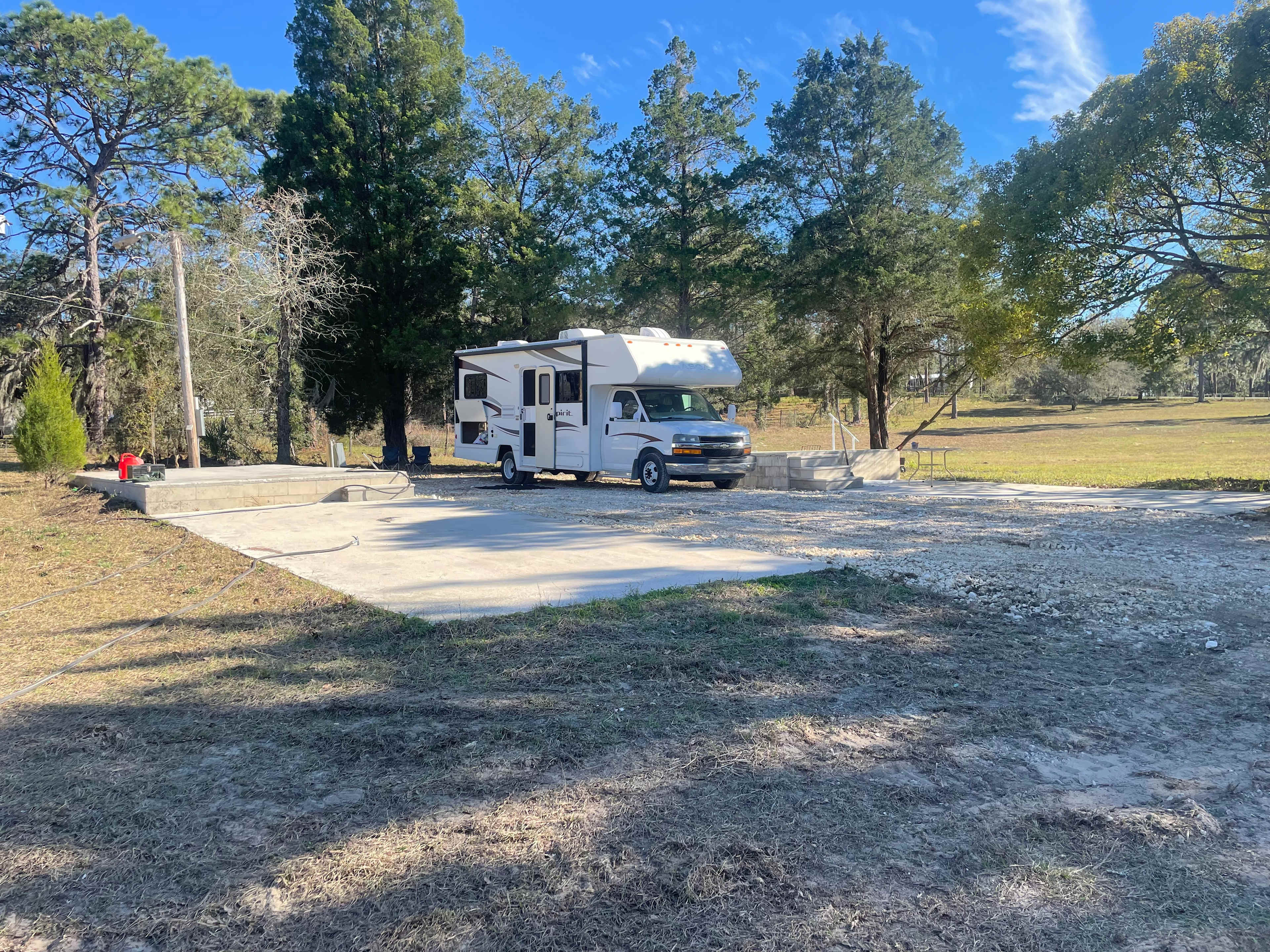 Nature wise these 4 acres were gorgeous with fun rolling hills (in Florida no less,) a gopher tortoise den, 4 Downey woodpeckers, 5 Eastern blue birds, blue jays, an opossum, a cute black cat, wildflowers, it’s mostly fenced in 4 acres great for dogs that mostly listen, private gate, diligently mowed grass, a huge 30-50 acre wood lot behind the property, quiet and seemingly reclusive neighbors on both sides, and minimal light pollution compared to so many other Florida campsites.