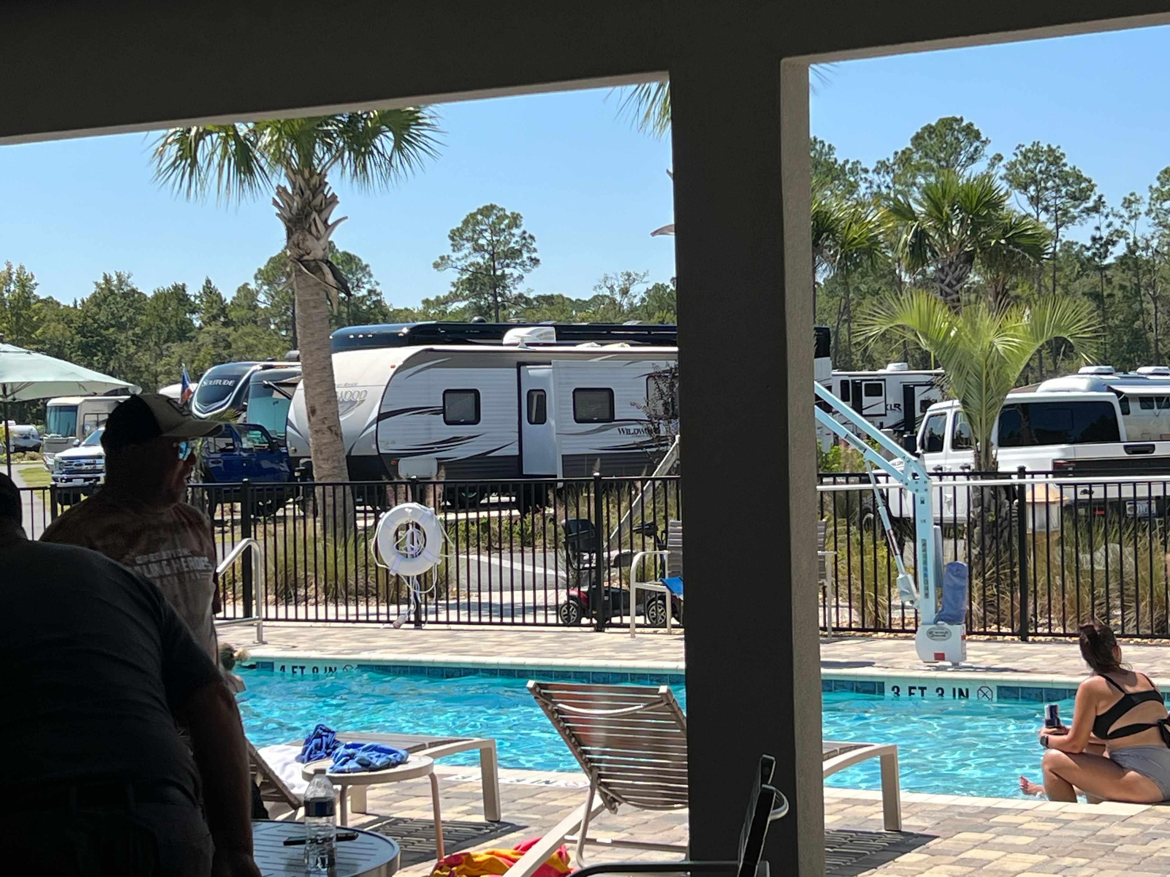 Welcome to Gainesville, Florida's premier RV Resort – the first and only of its kind in the area. Our fairly new park boasts a range of amenities for your comfort and convenience, including a laundry facility, a heated swimming pool, and high-speed wireless internet powered by fiber optics. Rates encompass electricity, fresh city water, and sewage services. Enjoy the privacy of our two-bath houses, each equipped with lockable showers for both women and men. Additionally, a small on-site store caters to your immediate needs. Rest easy with our 24-hour security cameras and the secure gated resort, ensuring a safe and tranquil environment for your stay.We are close to UF, UF Shands Hospital, North Florida Hospital and Gator Nationals. We fill up fast for all Gator home games. You can book 7 nights and pay for 6