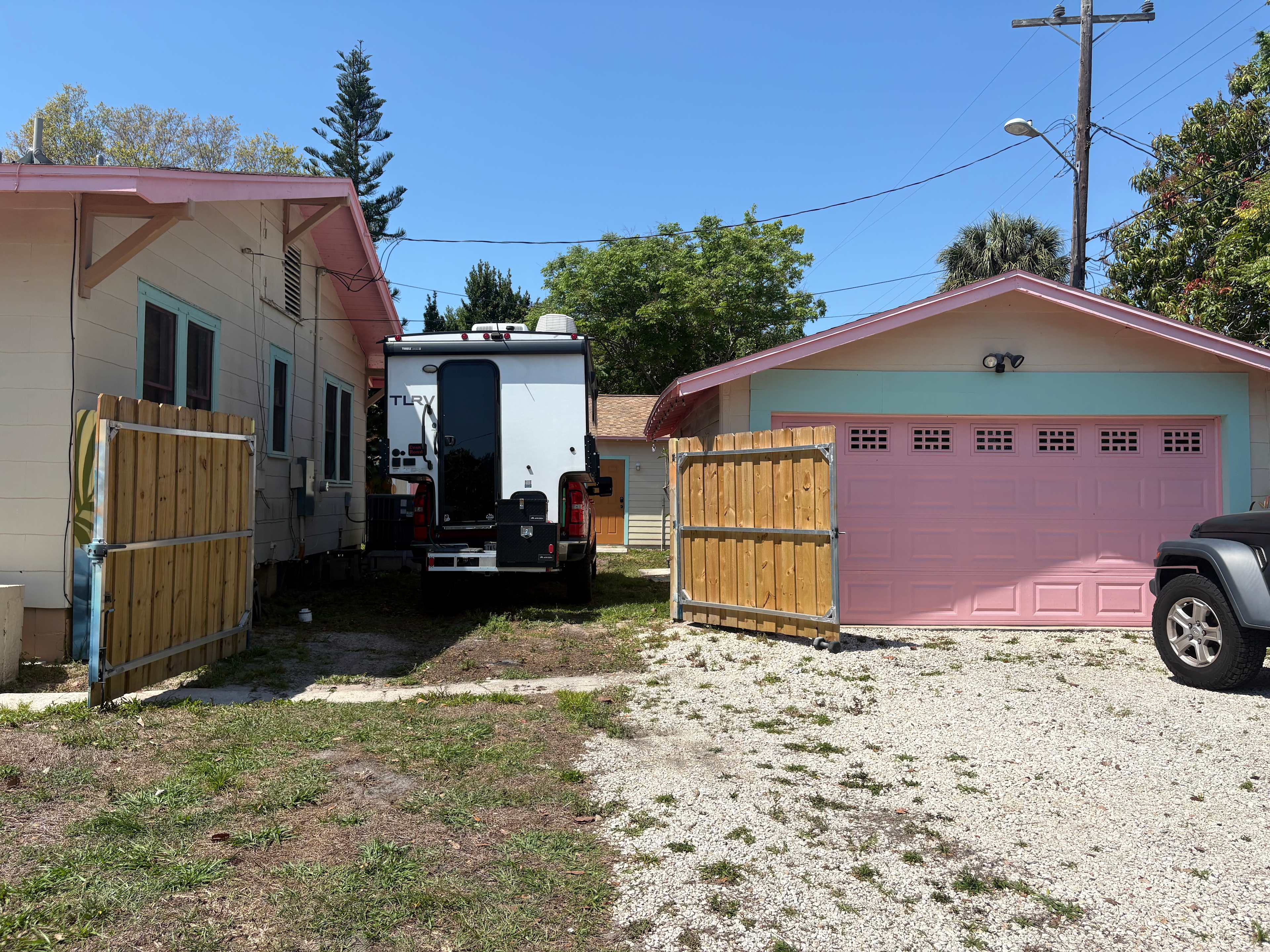Location, location, location -- Welcome to Historic Kenwood! A past recipient of the National "Neighborhood of the Year" award, Historic Kenwood is located adjacent to the vibrant Grand Central District in sunny St. Pete. Our neighborhood is designated as an artist enclave, so please enjoy walking around the neighborhood to check out the historic craftsman homes (ours is 100 years old), murals by local artists, and diverse finials atop the street signs. We are private residence in St. Pete offering FULL hookups (50amp electric, water, sewer). We are located on a corner lot and our RV site is on our side-yard between our house and detached garage. The house is walkable (~20 minutes), or easily bikeable or drivable to restaurants, bars, coffee shops, and stores in the Grand Central district of downtown St. Pete, and a few minutes further from the other downtown districts. We are about a 20 minute drive to St. Pete Beach. Animals: There are two white stray cats that occasionally hang out in our backyard. We have 2 miniature schnauzers, but will discuss first with you before letting them in the yard during your stay. Backyard: The backyard is fully-fenced for privacy. If you are bringing a pet, they are welcome to roam in the yard while supervised. Arrival: Please message me with your expected arrival time no later than the morning of your arrival date. I will greet you and give you a brief tour. I'm happy to make any recommendations of things to do, places to eat. etc. Self-check in is also possible. Please detach toad prior to parking and please park on the street where permitted. Check out time is flexible, depending on calendar. About us: We are a couple in our late 30s, after having traveled the country in our 35' travel trailer for nearly 2 years decided to make St. Pete our permanent home. We love to exchange travel stories!The RV site is a flat patch of grass/dirt about 18 feet wide, right behind our 13' foot gate. Your rig will be nestled between our house and detached garage, and shielded from the street by the fence. The space opens up into our backyard on a double lot so you'll have plenty of space to stretch your legs. You're welcome to use any of our outdoor furniture and the solo stove fire pit during your stay. You'll be parked right behind the pictured fence for maximum privacy from the street. Please disregard "acreage" listed. The 50amp electric, water, and sewer hookups are on the "wrong" side if you back in, so pulling straight in is preferred for ease of parking and hooking up. There is a grade up the yard to to the RV site. If you have low-hanging jacks it will be best to pull forward rather than back up. Hookups: Hookups are on the "wrong" side if backed in, but drivers can pull straight in to be on the correct side for hookups. To park, you will need to drive over the curb, onto the lawn and ideally pull straight in. Feel free to use our backyard furniture and firepit. There is a large black trash can in the alley that you may use for trash.