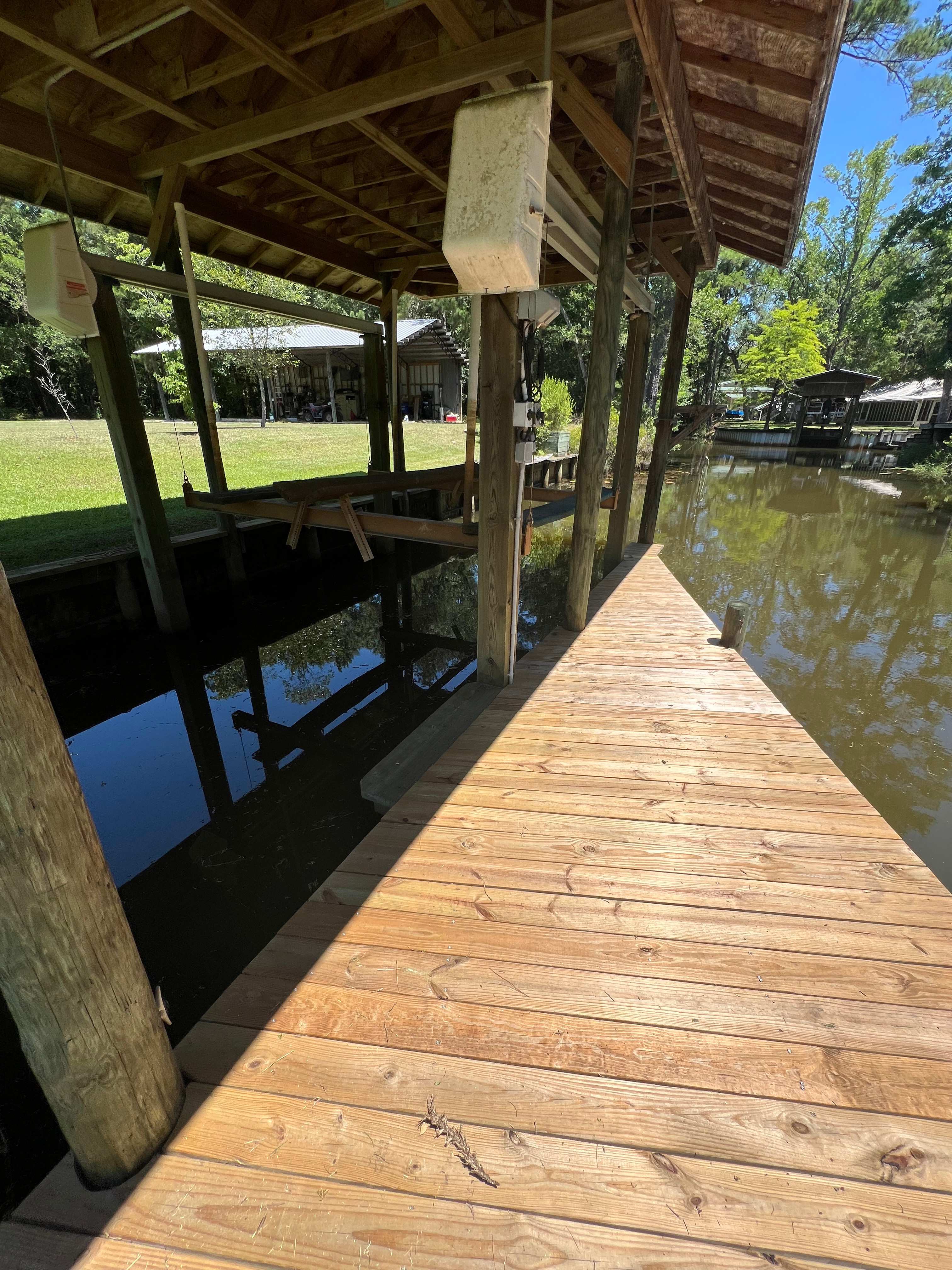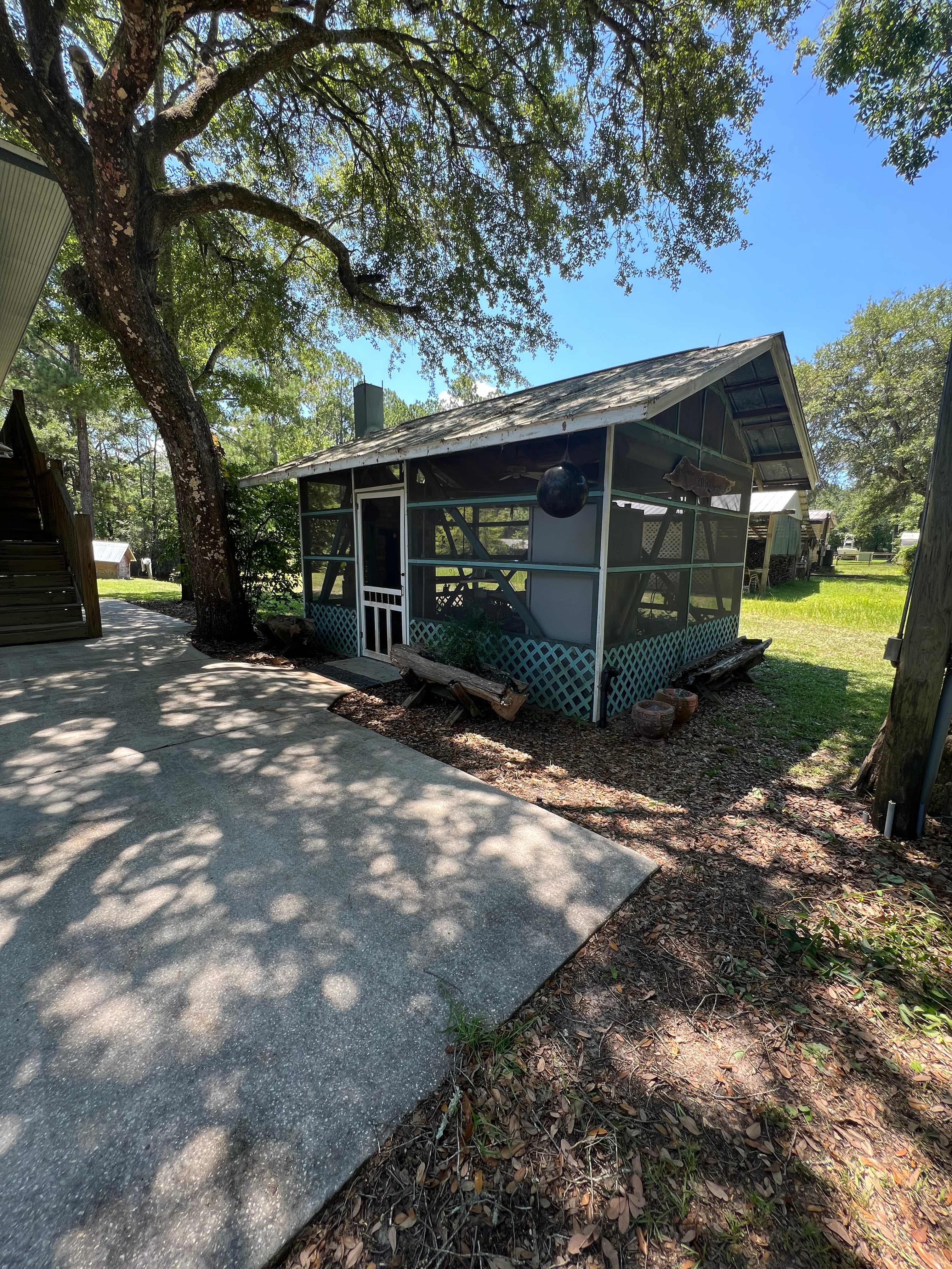 Located on the Choctawhatchee river, The Lazy River home is 1 mile up river from the bay and located just off of the big river. You are able to access the best of both worlds here including Crab Island, the fresh water springs and the big river. Stay in the river and catch bass, bream and catfish or venture into the bay and catch redfish, trout and mullet. The home features a private concrete boat launch, dock, and boat lift in the brackish water canal behind the home for your boat. Enjoy accessing the home for your stay by water or land. Our favorite way to access is by boat- launching at the West Bay bridge in Panama City and running down the intracoastal waterway into the bay. When accessing our property by vehicle, be prepared to drive 17 miles off of highway 79 with a 4 mile portion of that being a dirt road. We can not guarantee the condition of the dirt road portion of your drive for your stay, however the dirt road is graded weekly. Enjoy the seclusion of this area while still being in close proximity to Panama City Beach and 30A. Pier Park in Panama City Beach is where you can find the nearest grocery stores, shopping and restaurants in a 35-40 min drive from the home. Once you are here, its likely you will want to stay and not leave though so bring plenty of good meals to cook and enjoy! The home features a private screened cookhouse with a wood burning grill, satellite TV and plenty of private parking for your vehicle and boat trailer.2bed, 1 bath river home with private boat launch, dock, and lift. Full kitchen, bath, living, and dining space with all necessary items. Balcony off the back of the house overlooking the canal.