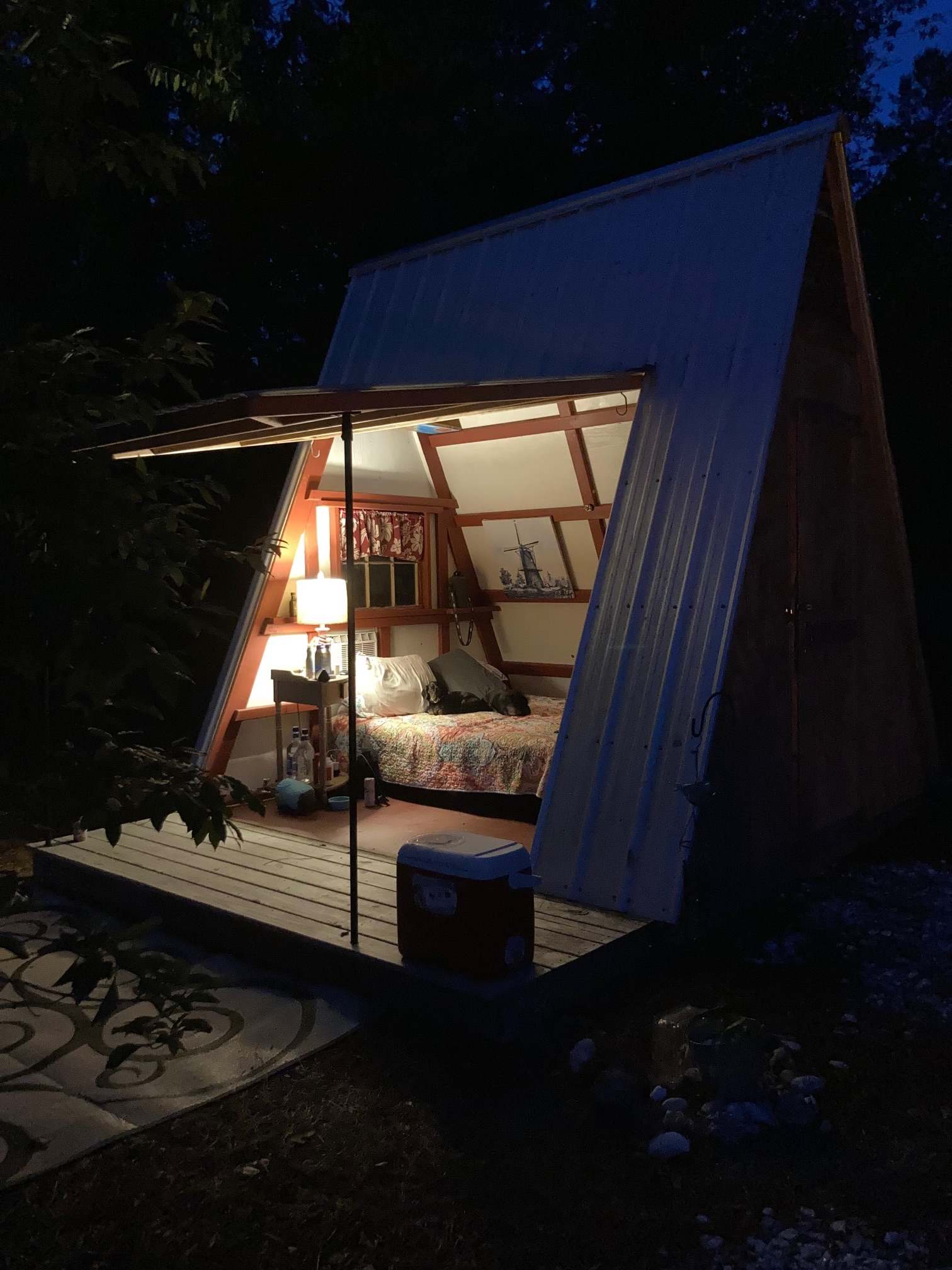 Aframe cabin tent nestled in an 4 acre olive orchard. Beautiful owe of the orchard. Close to Weeki Wachee and Chasahawitzka Rivers, mermaids and manatees. Wi-fi, AC and heat, Queen bed and private bathroom. Bedroom is separate with a door and there is a pullout sofa with full size bed in the living area.Rescue dogs, chickens and ducks roam the property. Fresh eggs and oil. Fire wood available for purchase. Farm store open o. weekends. Fresh Country Air! On the Sun Coast Bike Path.
