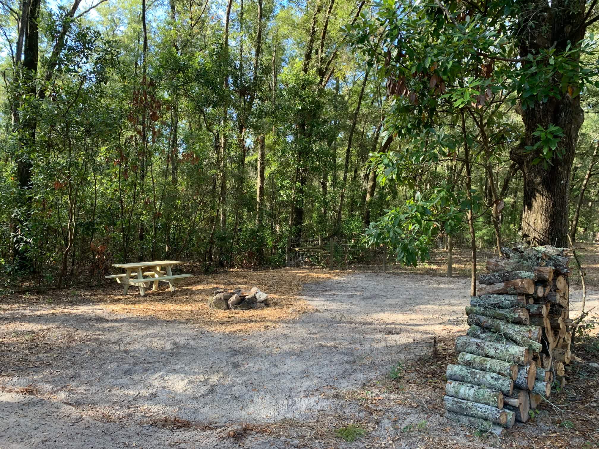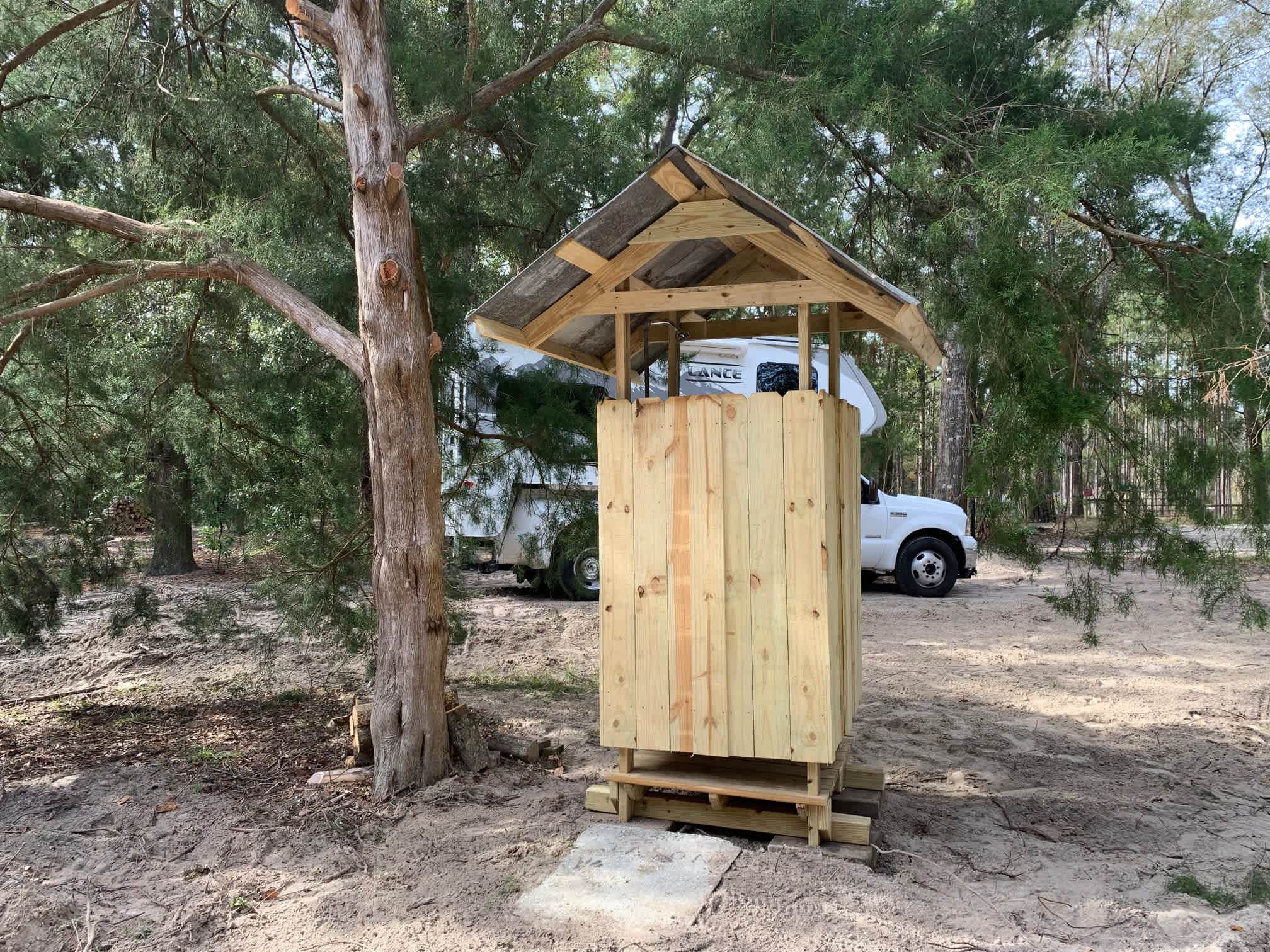 This is our only group site. There is a picnic table, and fire ring. It is right next to the outdoor shower and right by the entrance so you don't have to maneuver around too many trees.