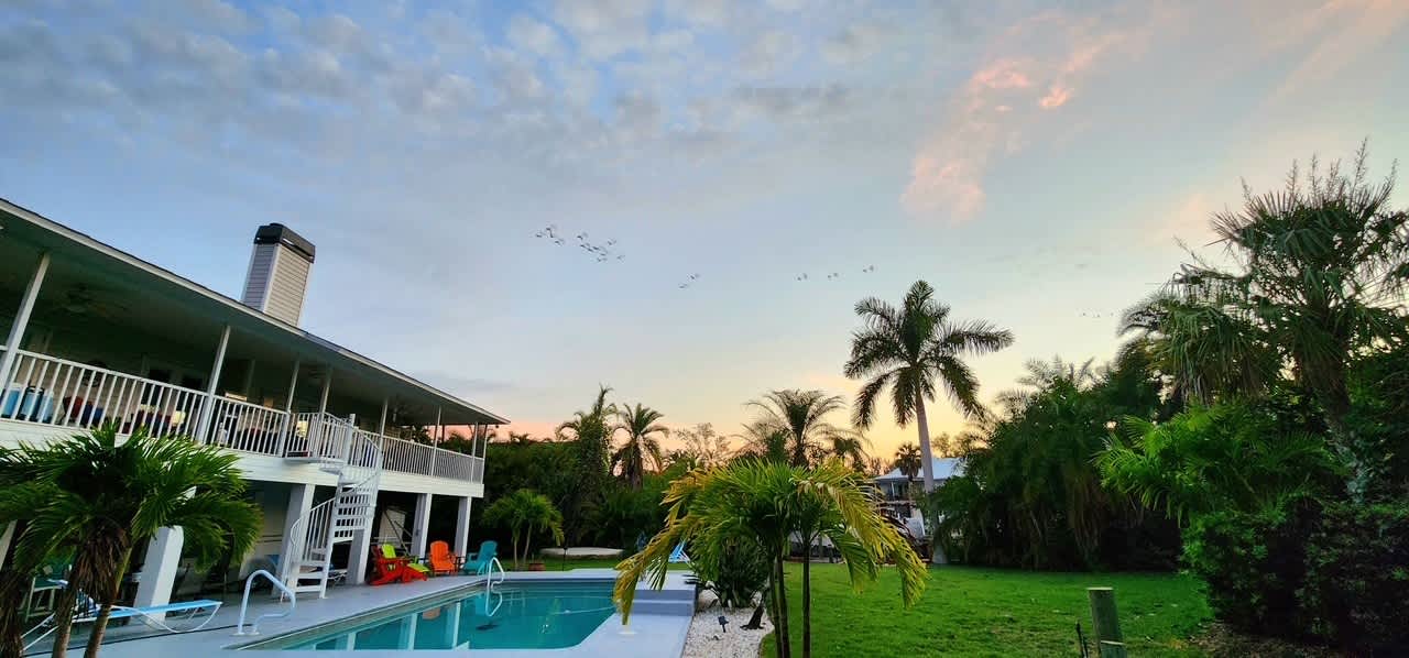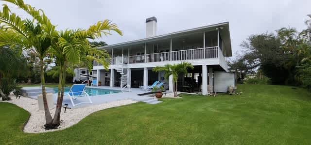Pristine, private, and peaceful Gulf-access RV spot located on our private property. We offer one spacious site that accommodates large RVs and is equipped with 30/50-amp service, water, and sewage. This Gulf-access property features a dock for fishing and an available canoe for guests to enjoy. Relax in our 14' x 28' saltwater in-ground pool, or bring your fishing gear, kayaks, and bicycles for more outdoor fun. The property is conveniently located near Fort Myers Beach, Sanibel, and Captiva Islands. Nearby attractions include Lakes Park, golf courses, biking trails, shopping, and great restaurants. Escape the dreary gray winters, snow, and ice—and come enjoy the sunshine and palm trees!Pristine, private and peaceful Gulf Access RV Spot located on our private property. There is one spot available that will accommodate large RV's, set up with 30/50 amp service, water and sewage. This is a gulf access property with an available canoe and dock for fishing. Enjoy our 14 x 28 salt water in ground pool. Bring your fishing gear, kayaks and bicycles .The property is located close to Fort Myers Beach, Sanibel and Captiva Islands. Nearby activities incudes Lakes Park, golf, biking, shopping, restaurants. Enjoy our private salt water in ground pool. Pool deck, covered lanai and picnic tables, back yard and boat dock. Come escape the dreary gray winters, snow and ice and enjoy the sunshine and palm trees!